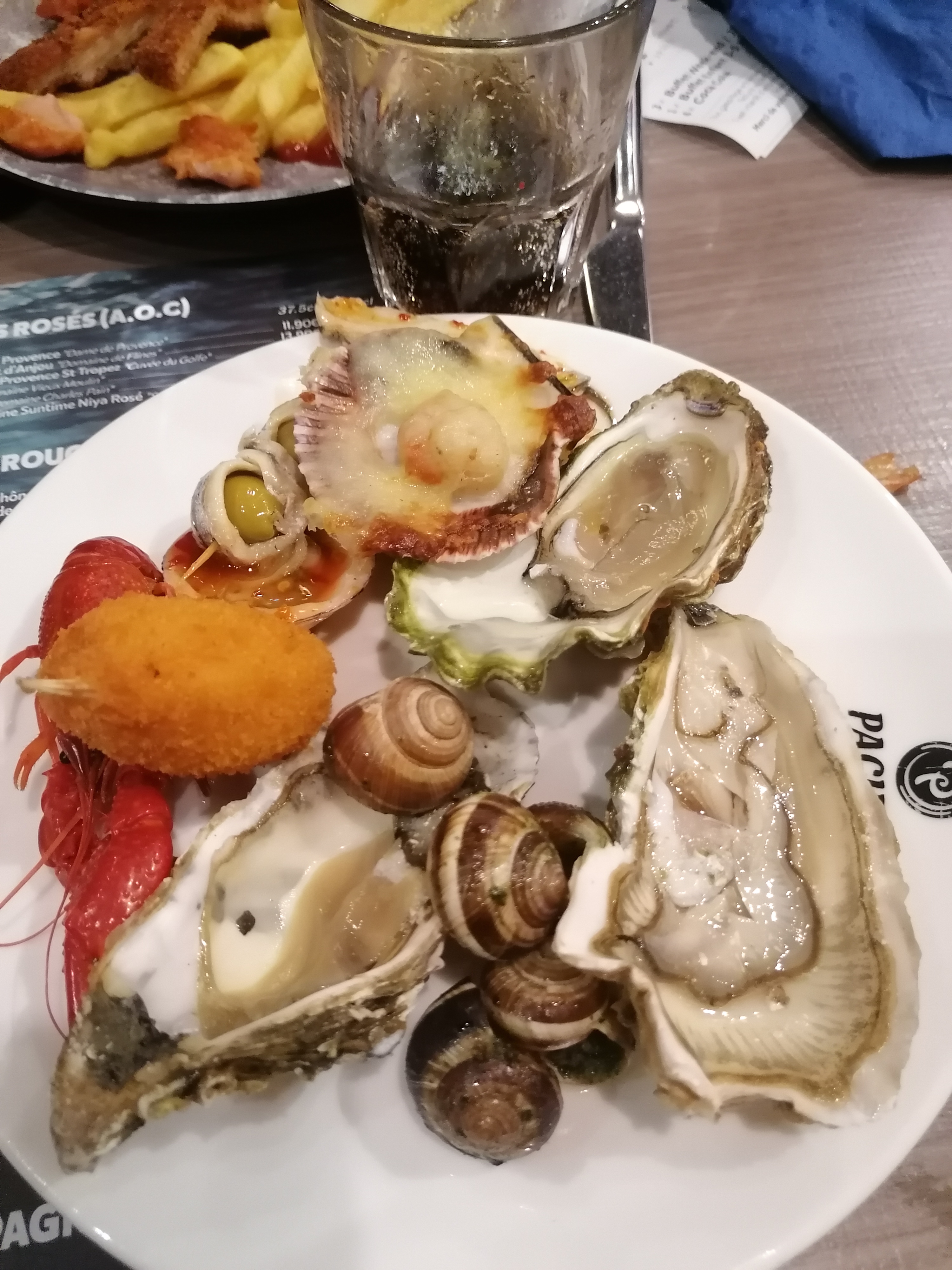 En voyant du monde sans cesse nous avons décidé d'y aller . Ça sera la dernière fois . C'était tout simplement pas bon . Les fruits de mer ont aucuns goûts . La salle est bruyante, le serveur qu'on a eu parlé à peine et travailler sans goût
