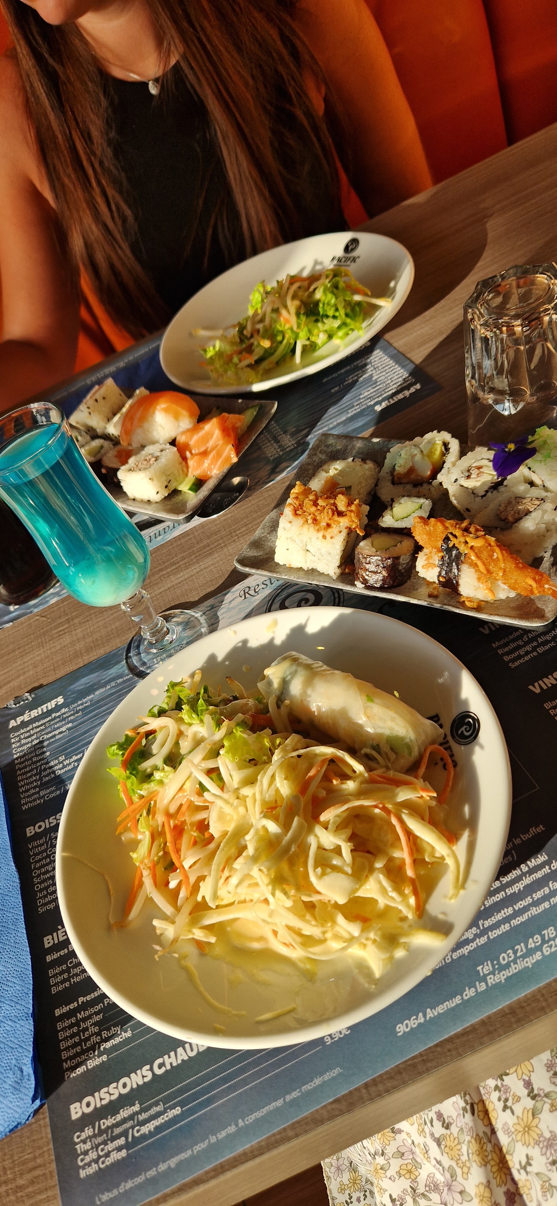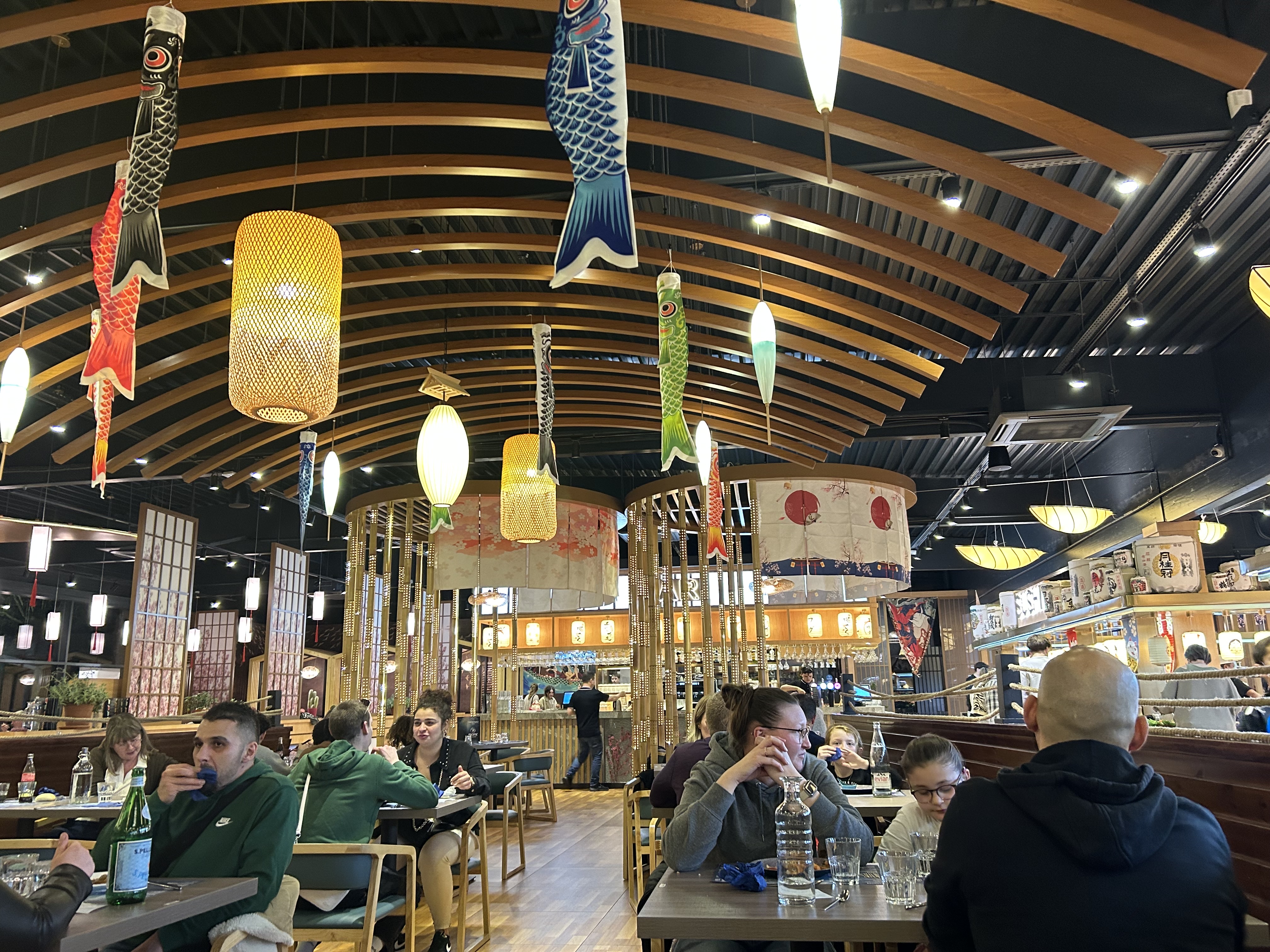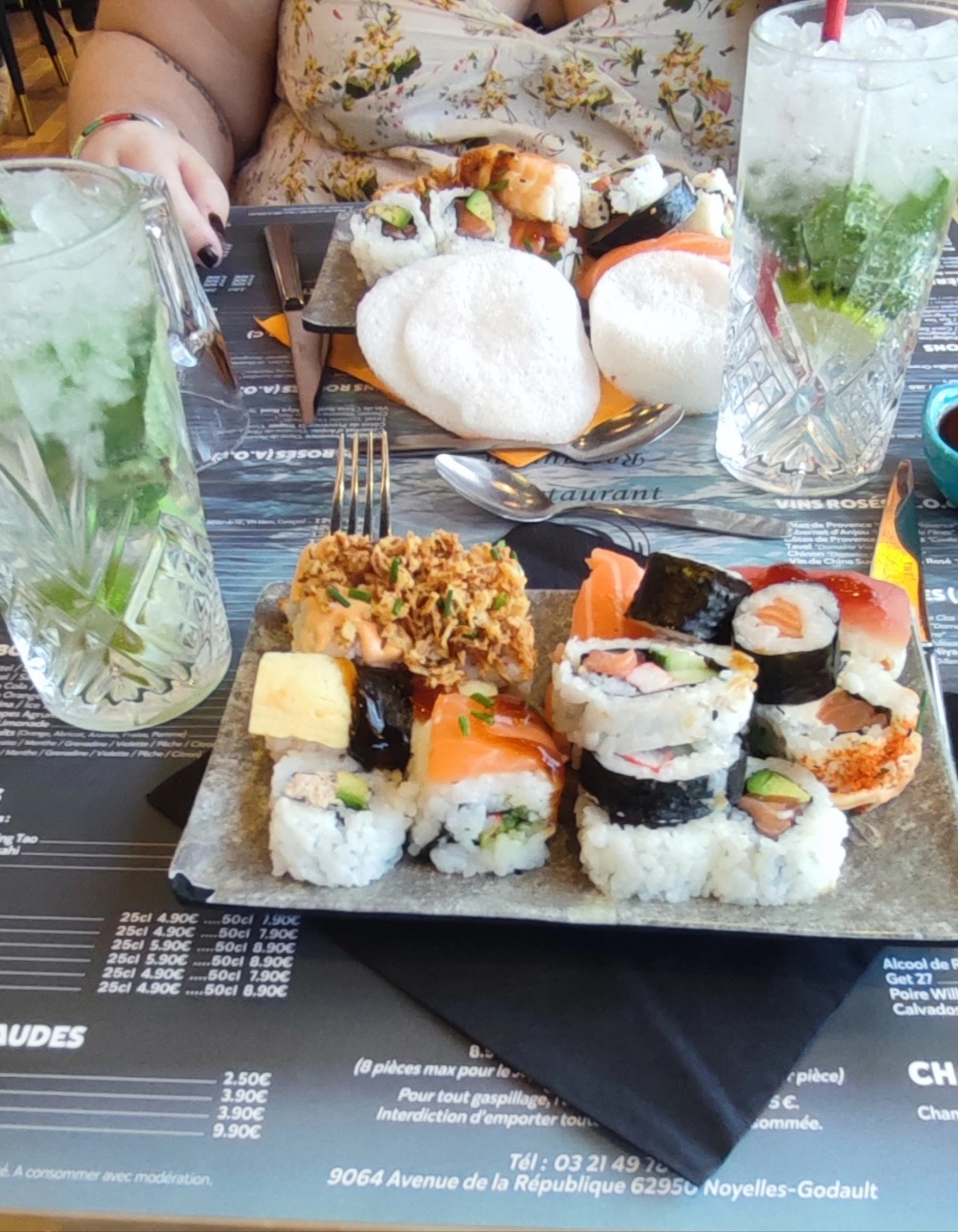 Très beau restaurant avec un large choix de plats , sushis en tout genre , une bonne gamme de dessert et sans oublier un bon Mojito! Un peu bruyant mais vu le monde c'est normal , le personnels et l'agent de sécurité sont très gentil. Concernant le prix c'est raisonnable 47€ pour 2 buffets a volonté et 2 mojitos. Les gens ce bouscule un peu il faudrait peut être instauré un sens de circulation pour éviter les bousculades. Je recommande ce restaurant !