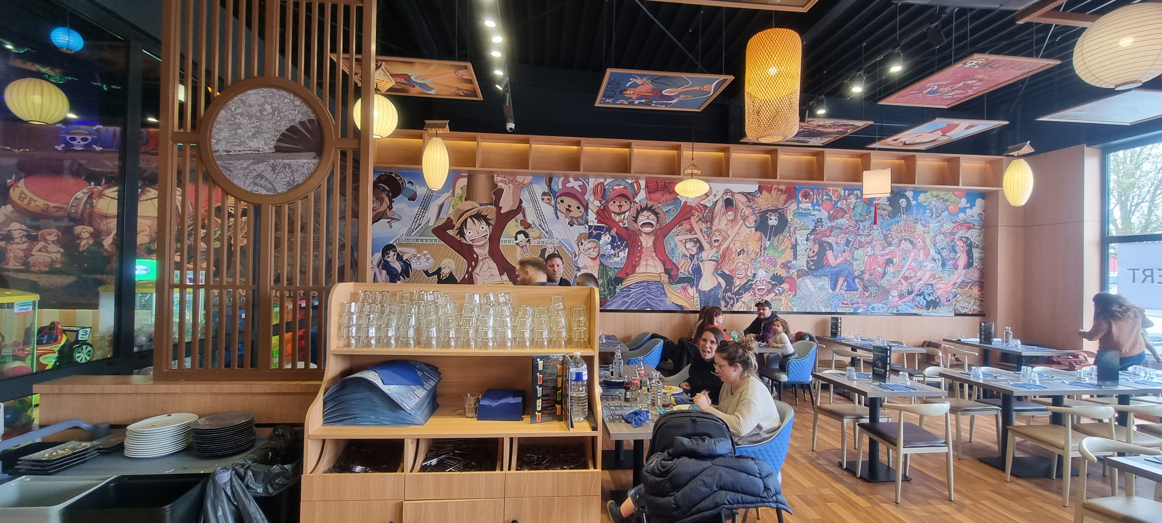 Restaurant asiatique à volonté sur le thème one piece. Un peu différent car des produits indien y sont proposés. C'était bon et très variés (un des plus variés que j'ai pu faire). En dehors de l'accueil et des cuistos, on se débrouille seul, mais les tables sont vite débarrassées.