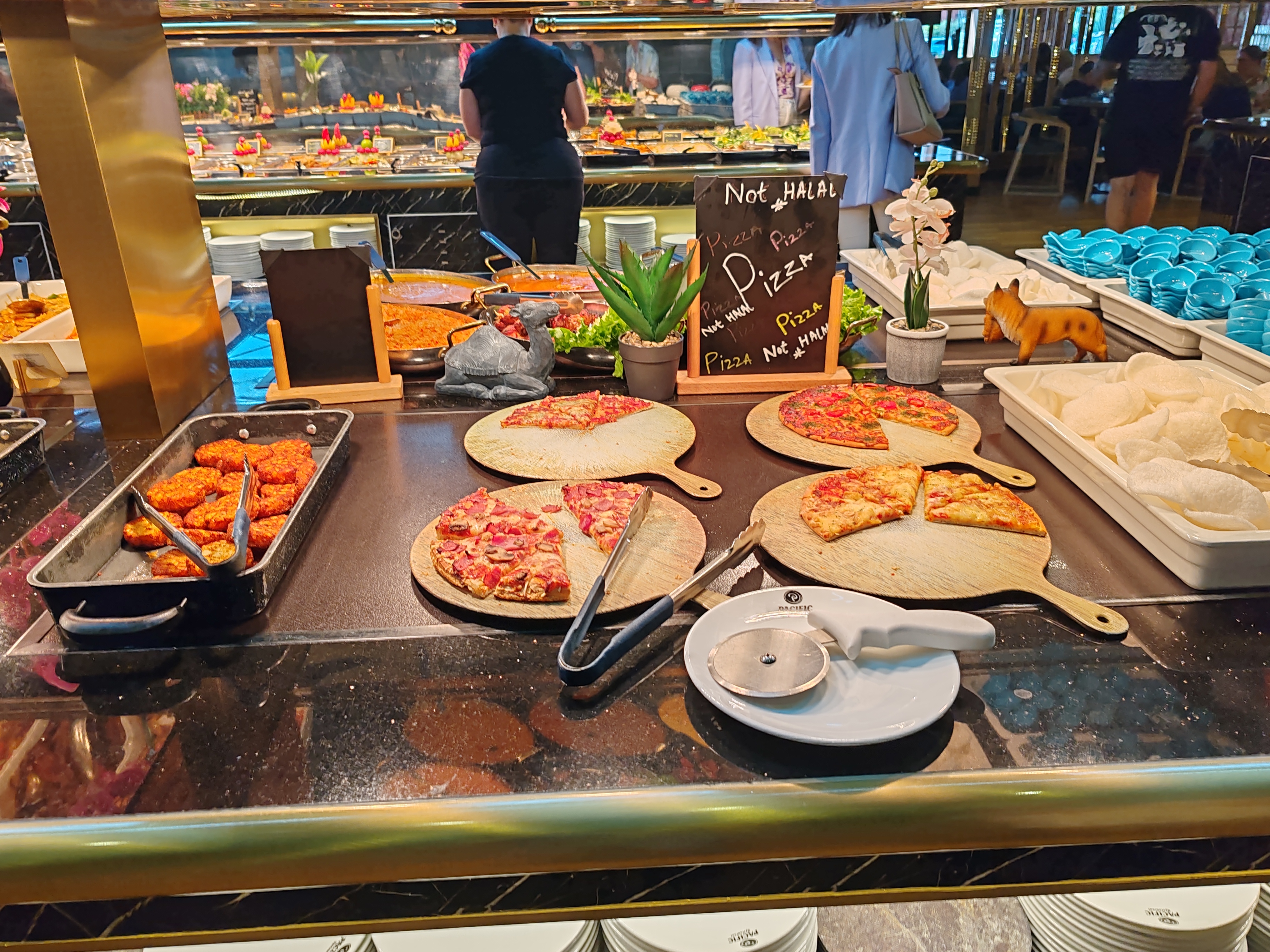 Superbe en couleur et décor, les buffets sont fastueux et bons, les différentes cuisines et mets sont bien séparés, il y a tellement de choix qu'il est difficile de tout voir en une fois, de plus tout est halal ,, les sushis sont confectionnés devant vous.. un bar vient compléter le tout... le tout à un prix défiant toute concurrence .... Une zone de jeux pour les enfants...seul bémol..le bruit.. vu le monde il y a un bruit de cantine... Il faut dire que ce restaurant est immense ..pas de réservation possible à ce jour ..venir tôt car une queue à l'attente....