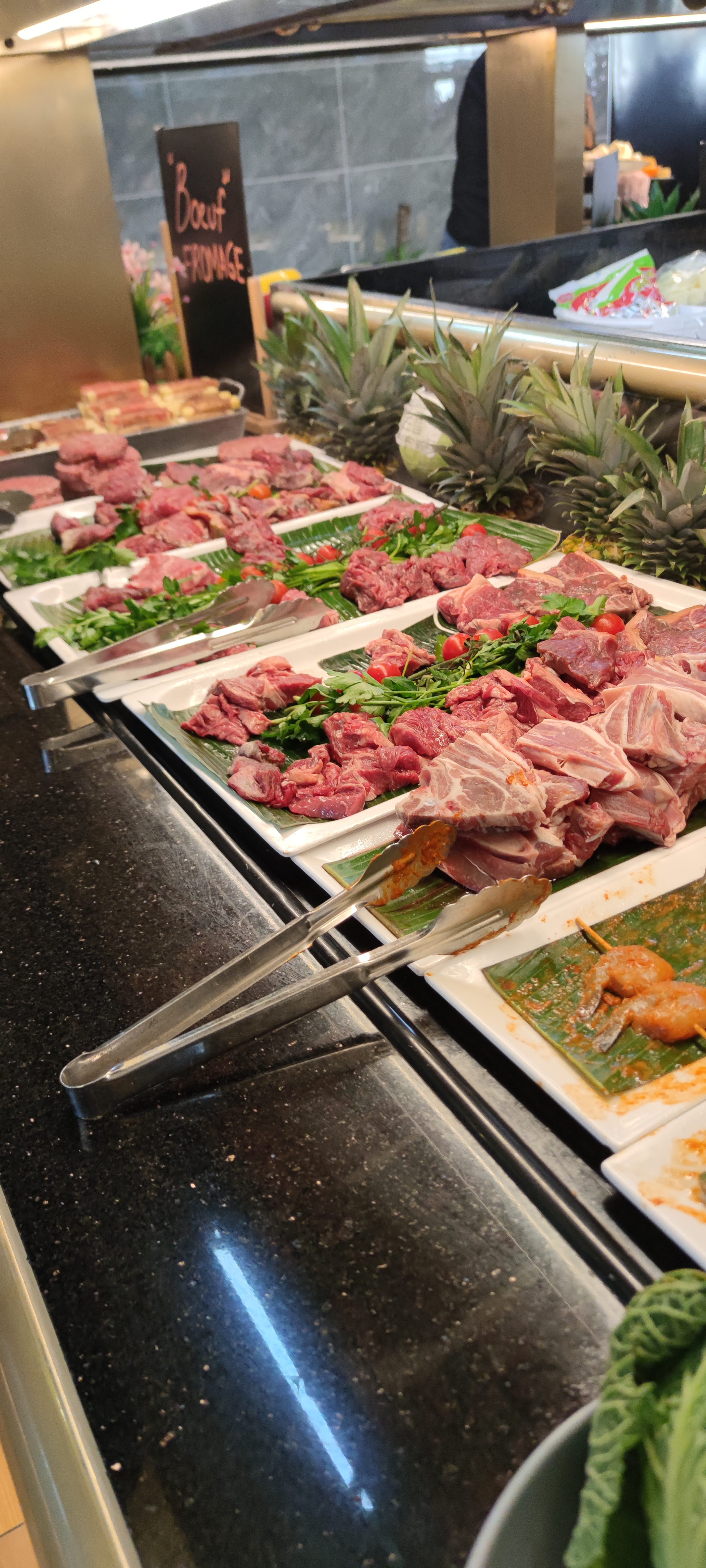 Je suis tombé sur ce restaurant car il pleuvait trop fort. Et je ne regrette pas. C'est un buffet bien décoré, jeune et dynamique. Les fruits et viandes sont fraîches. Les serveurs sont toujours là pour ramasser les assiettes. Ils sont des nouveautés qui n'existe pas parmi tous les buffets que j'ai testé en France.