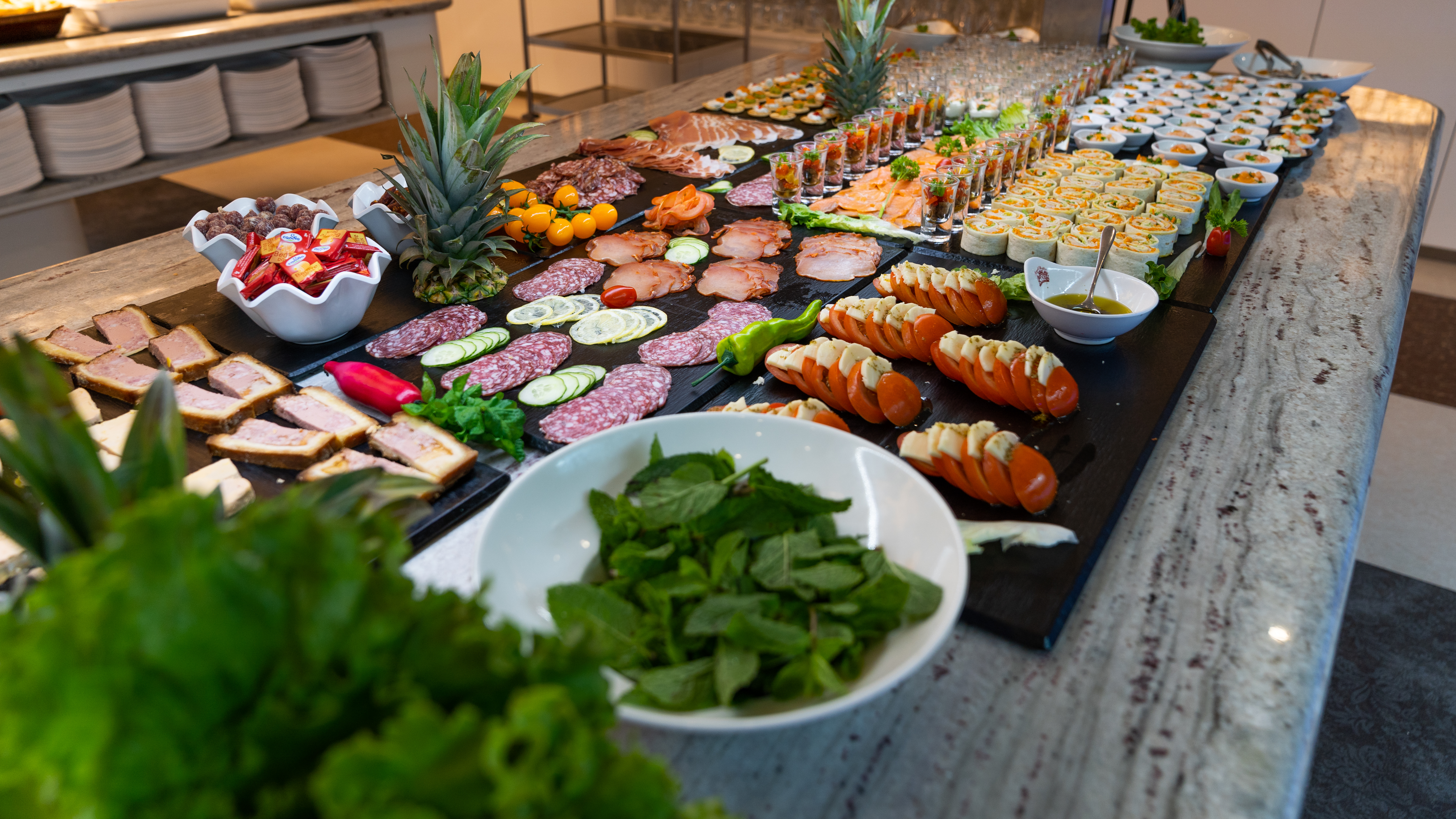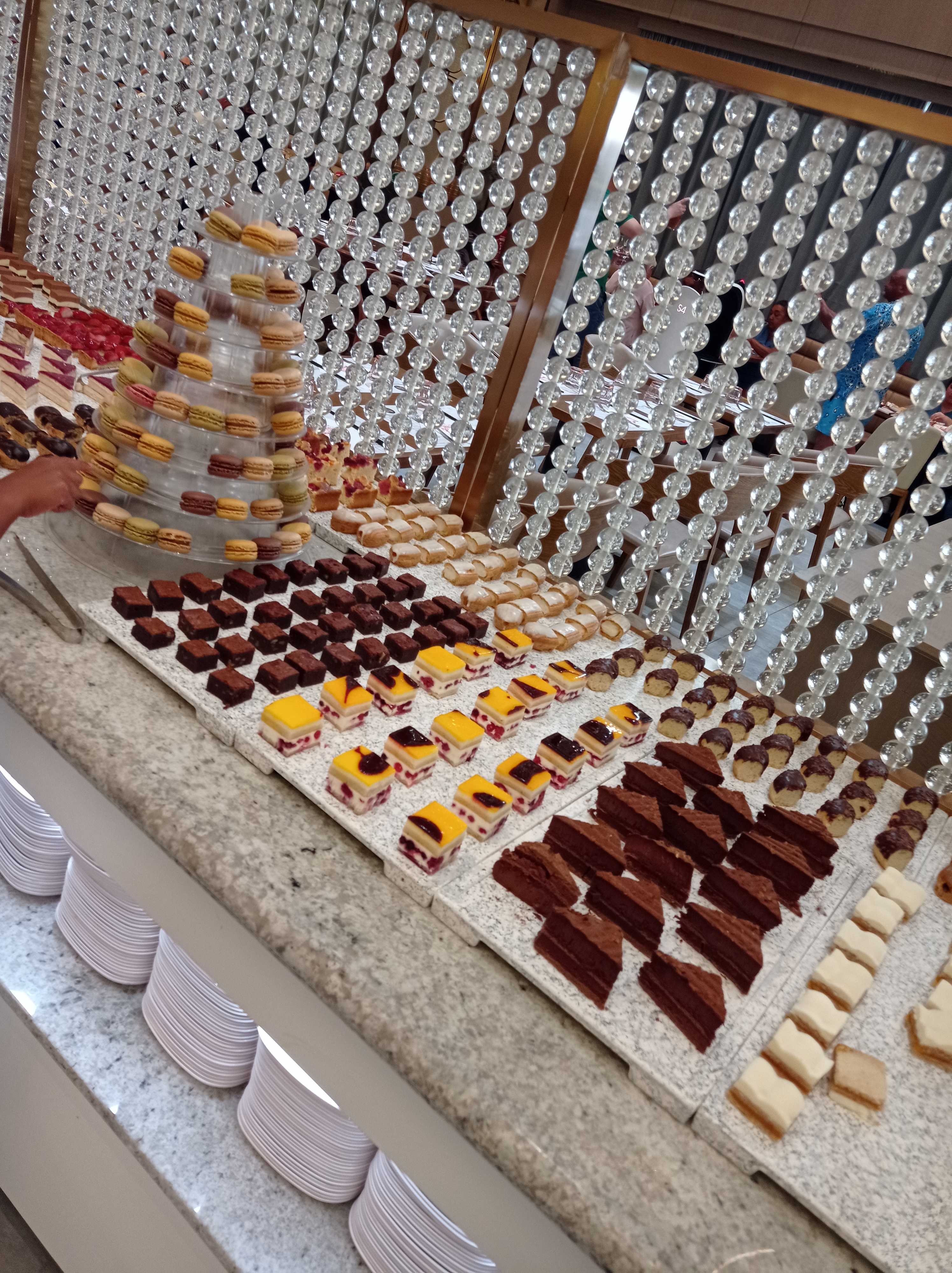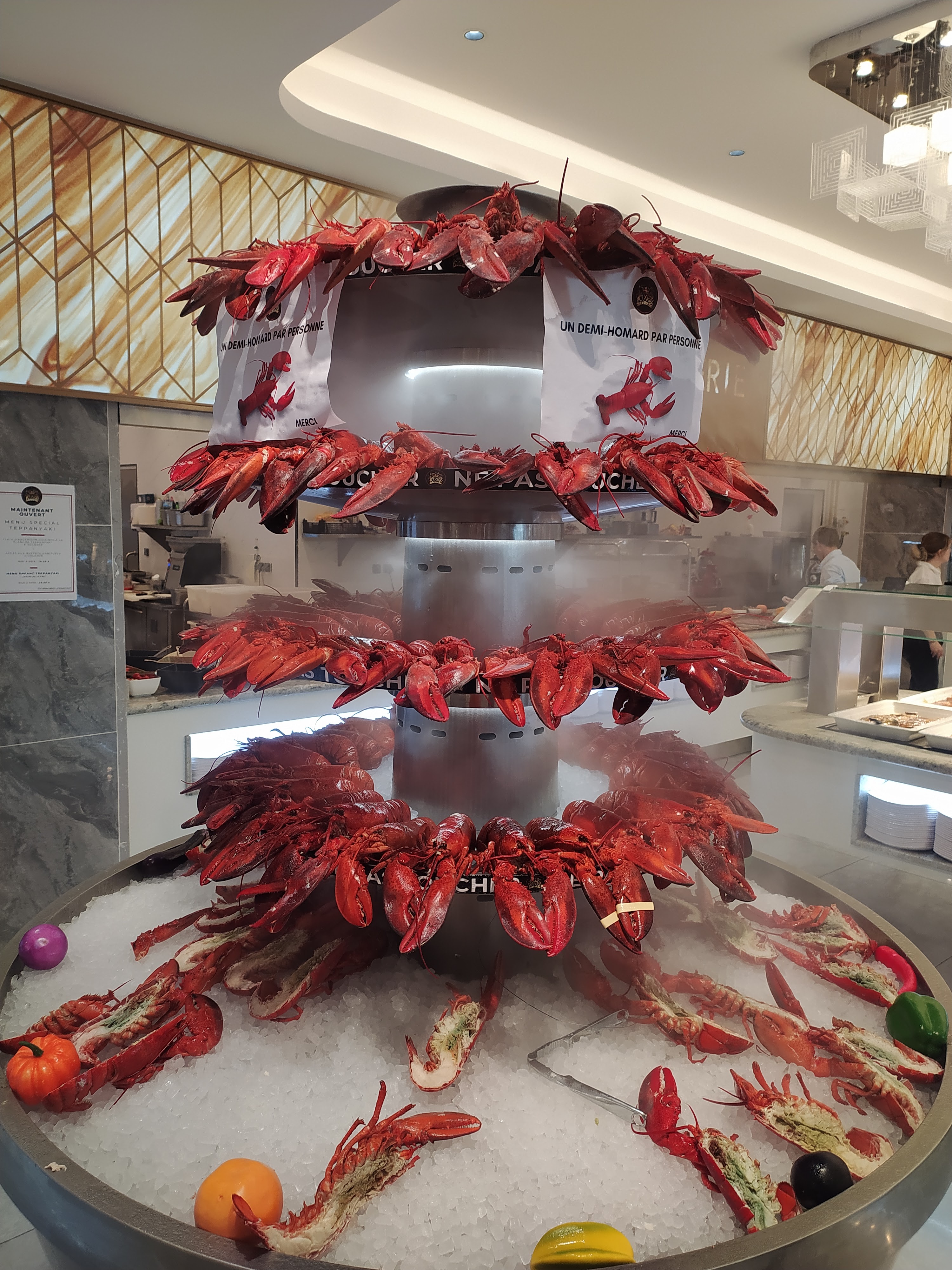 La qualité de la nourriture est bonne, quelque produit n’étais pas bon, comme les fruits et le homard. Mais pourquoi est-ce que les gens sont autant collés les uns aux autres lorsque la salle est vide? Manque d’amabilité au niveau du personnel.