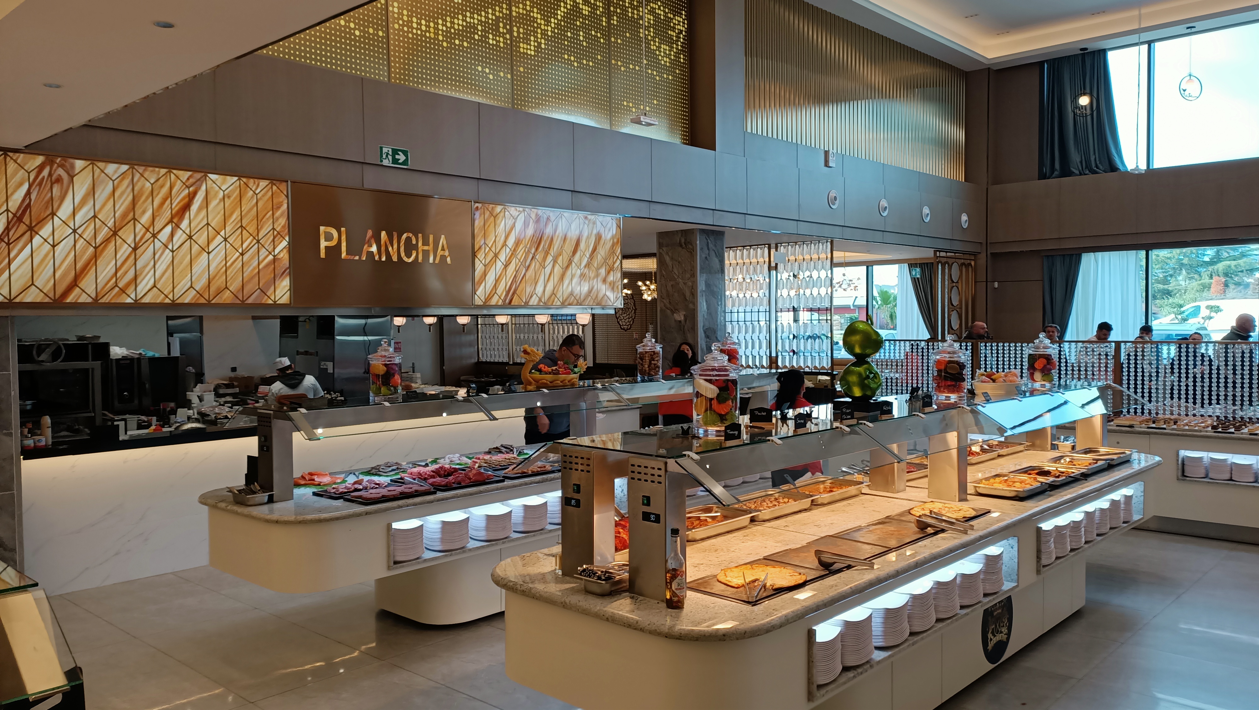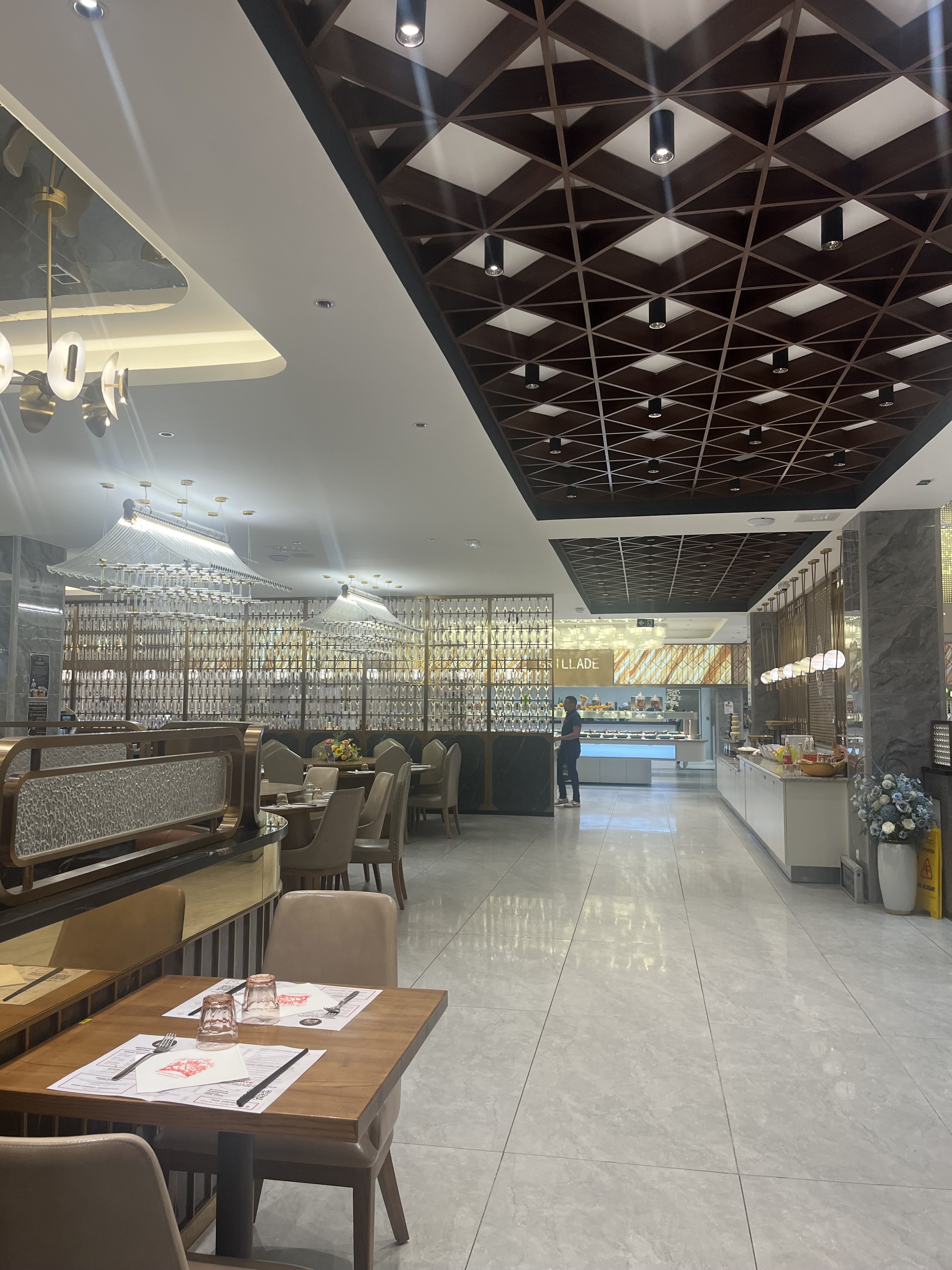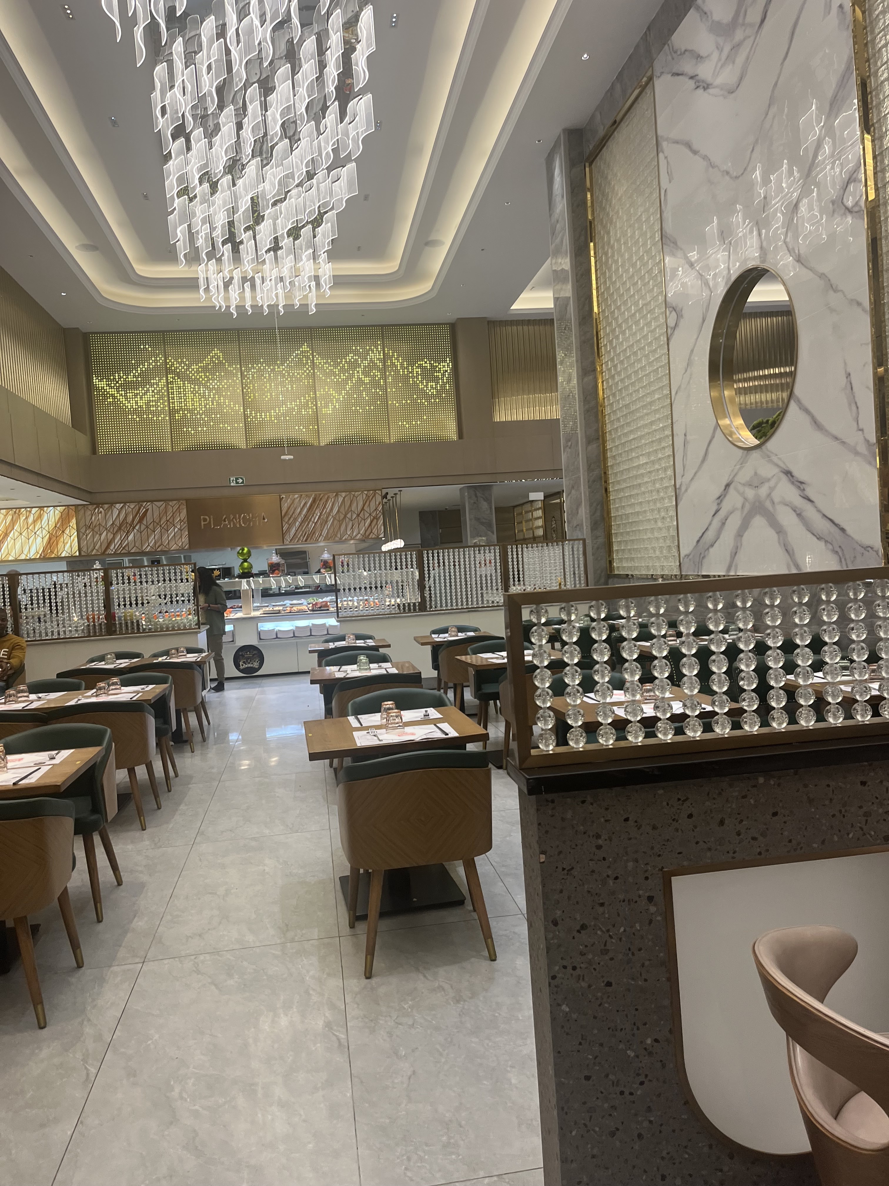 Très grand et joli restaurant bien décoré tout est vraiment royal . Propre accès facile vous avez de la place entre les tables. La circulation d’un buffet à un autre est assez large 😉🤜😛😋🤩 je recommande 👍 Toutes les photos ont été prises lors d’un repas en semaine à midi en février 2023. Bon appétit à vous !