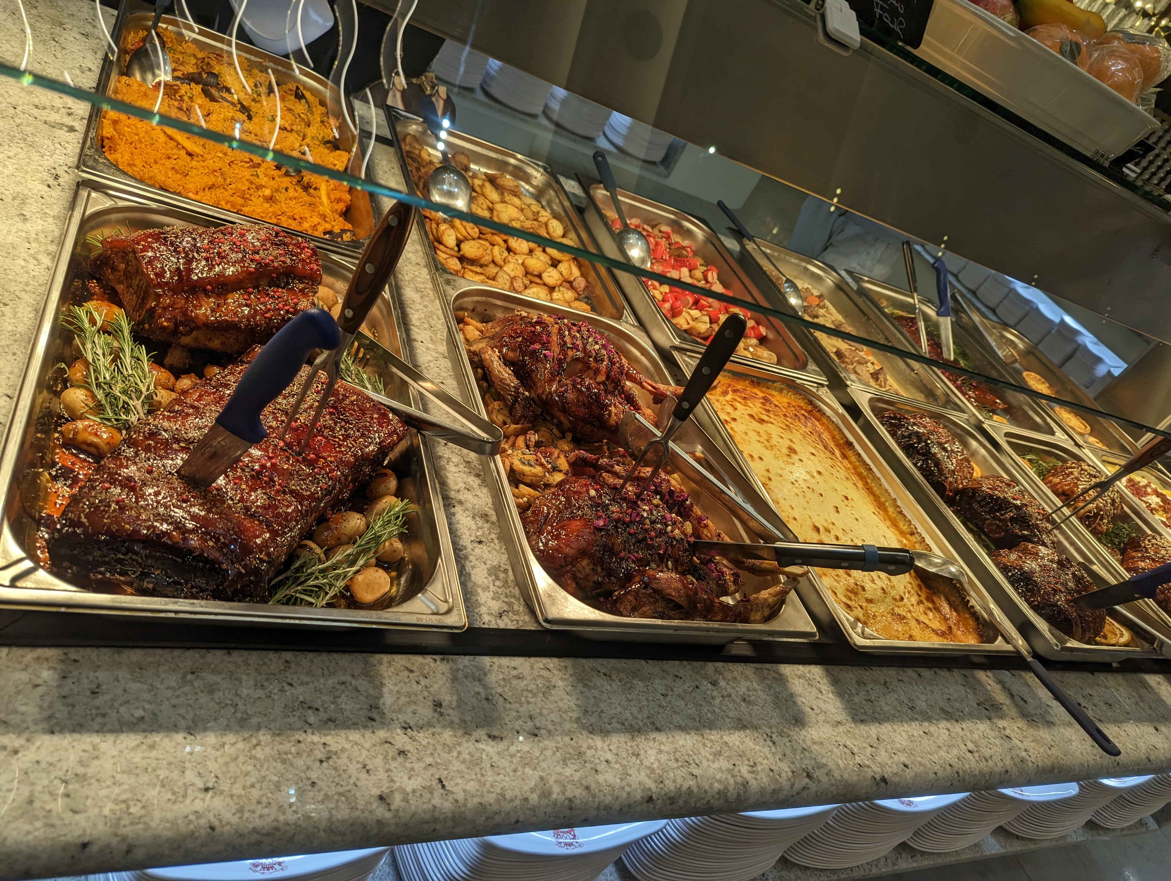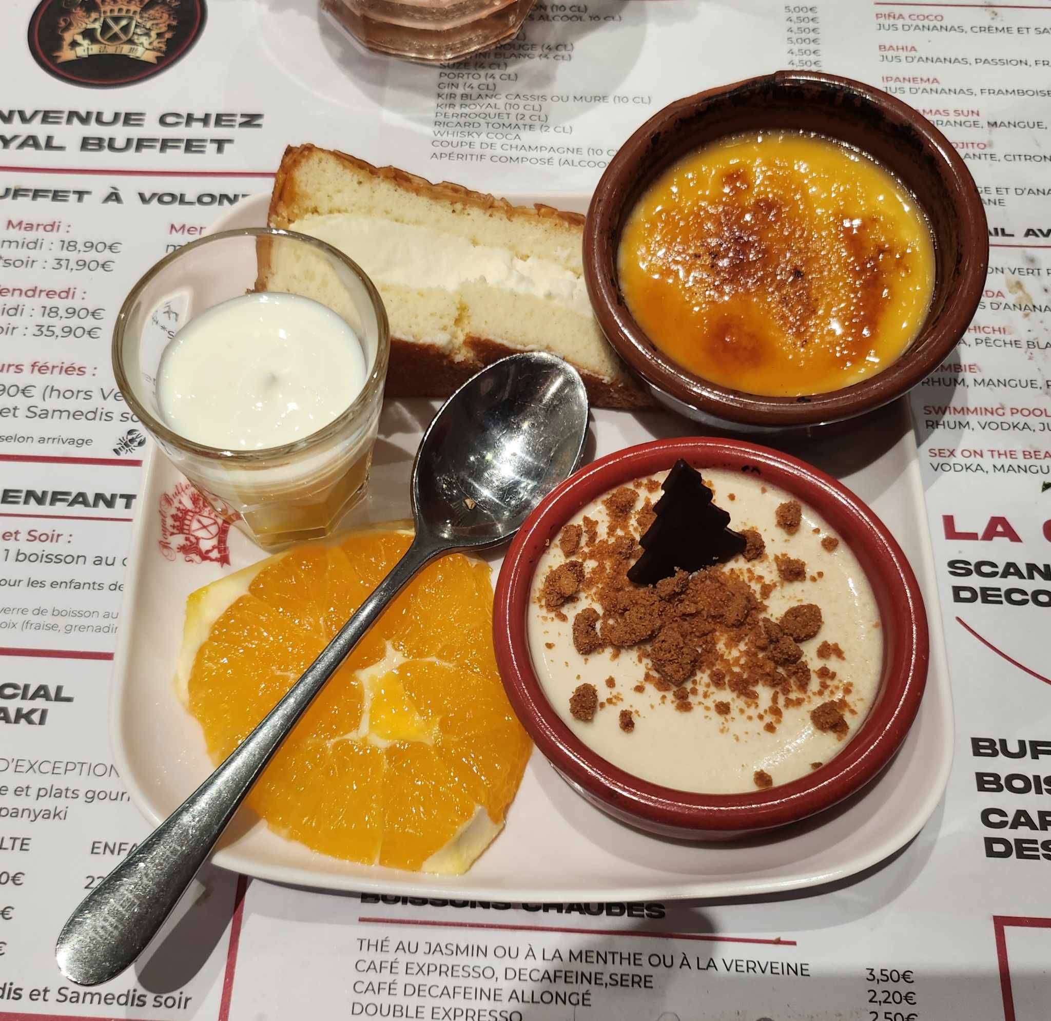 Gargantuesque de part le choix des aliments proposés et de la diversité. Tout est à volonté donc un conseil essayé de venir l'estomac vide vous aurez de quoi vous rassasier sans aucunes difficultés. Des entrées aux desserts la qualité est au rendez-vous. Nous prévoyons de revenir avec plaisir.