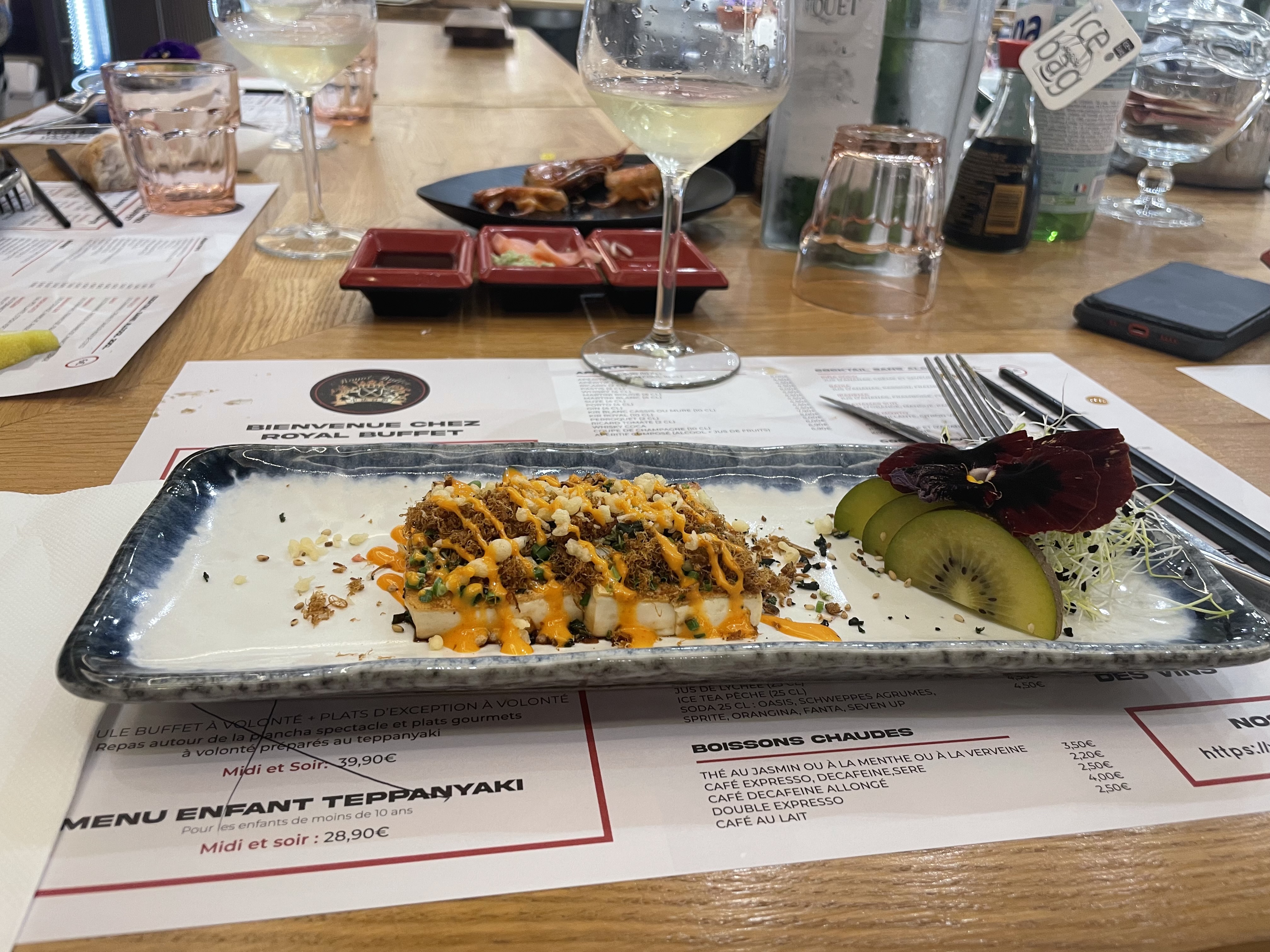 Bonjour, Toute l'équipe du Royal Buffet vous remercie pour votre retour d'expérience concernant le Menu Teppanyaki. En effet notre Chef est Exceptionnel et unique à Toulouse. C'est un honneur de recevoir votre recommandation. À bientôt parmi nous. Royal Buffet Toulouse Route d'Espagne à votre service.