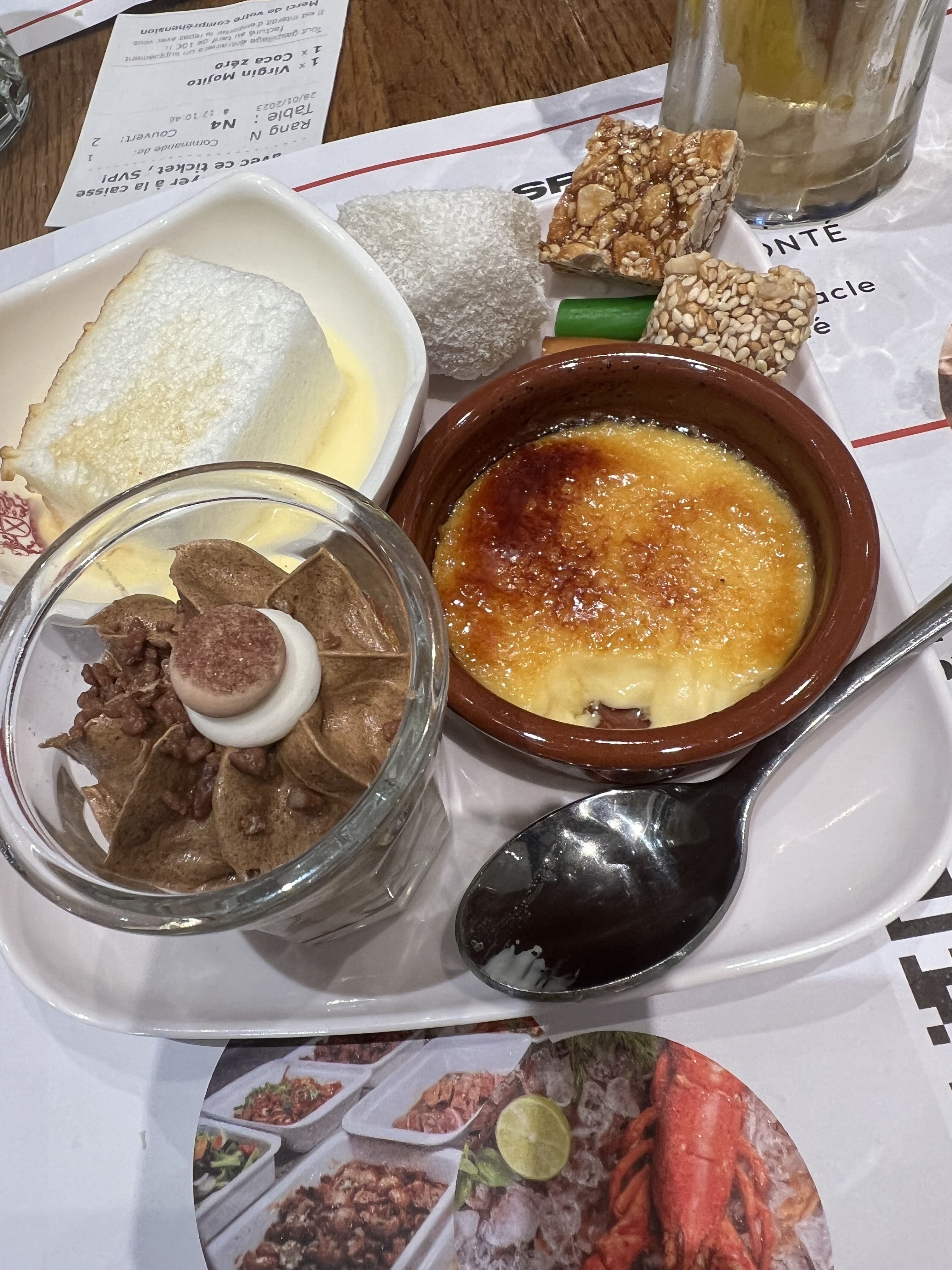 Beaucoup de monde à l'heure de midi, nous avons été gentiment placés près des buffets car je marche avec des béquilles ( très attentifs ) un repas copieux, de l'entrée sushis, fruits de Mer, plat principal , il n'y avait presque plus rien pour le dessert mais tellement copieux que ce n'était pas grave, je recommande vivement 👍👍