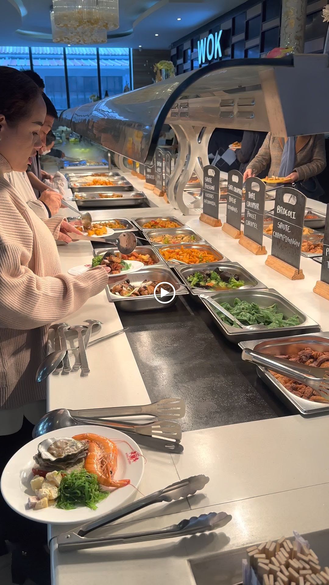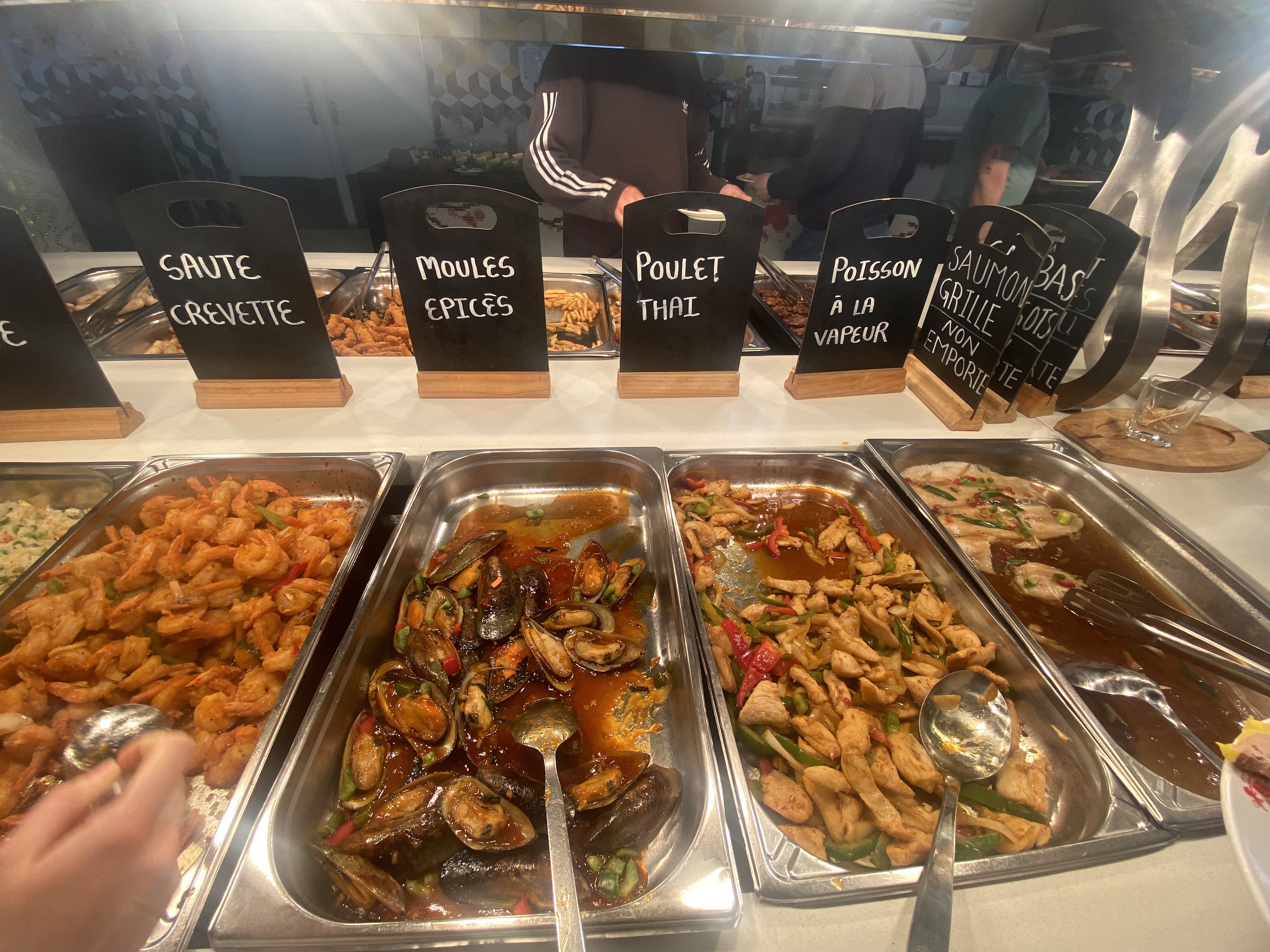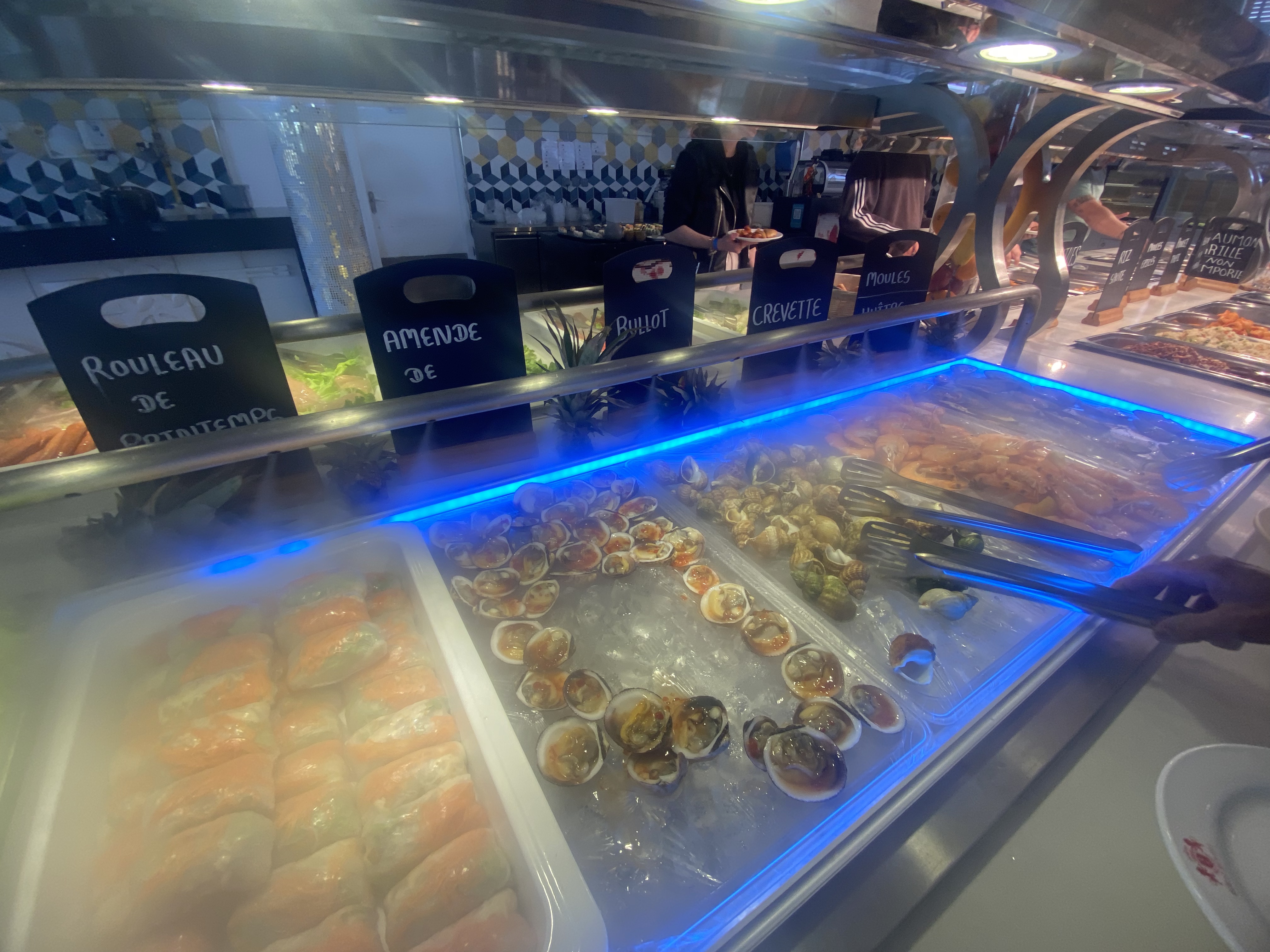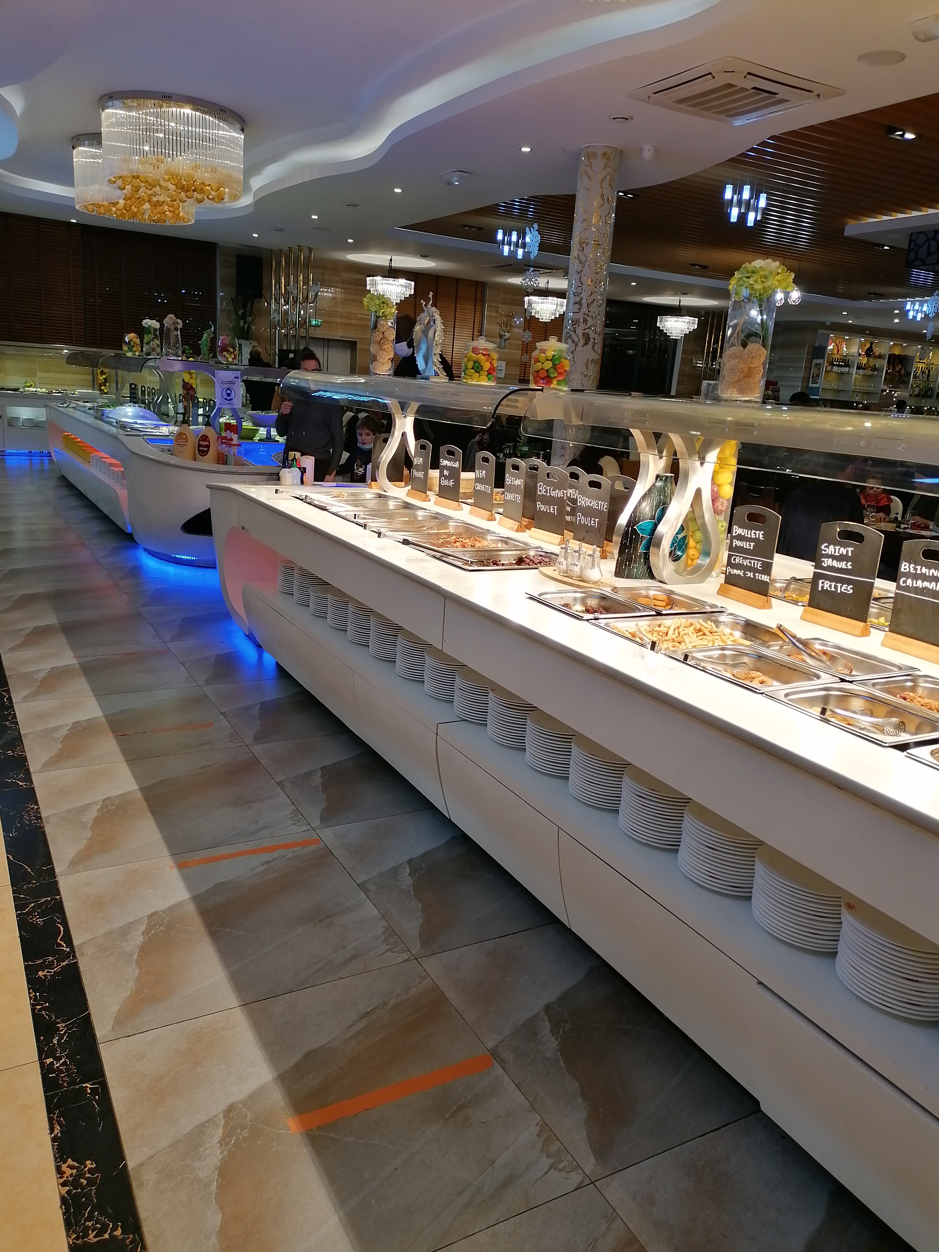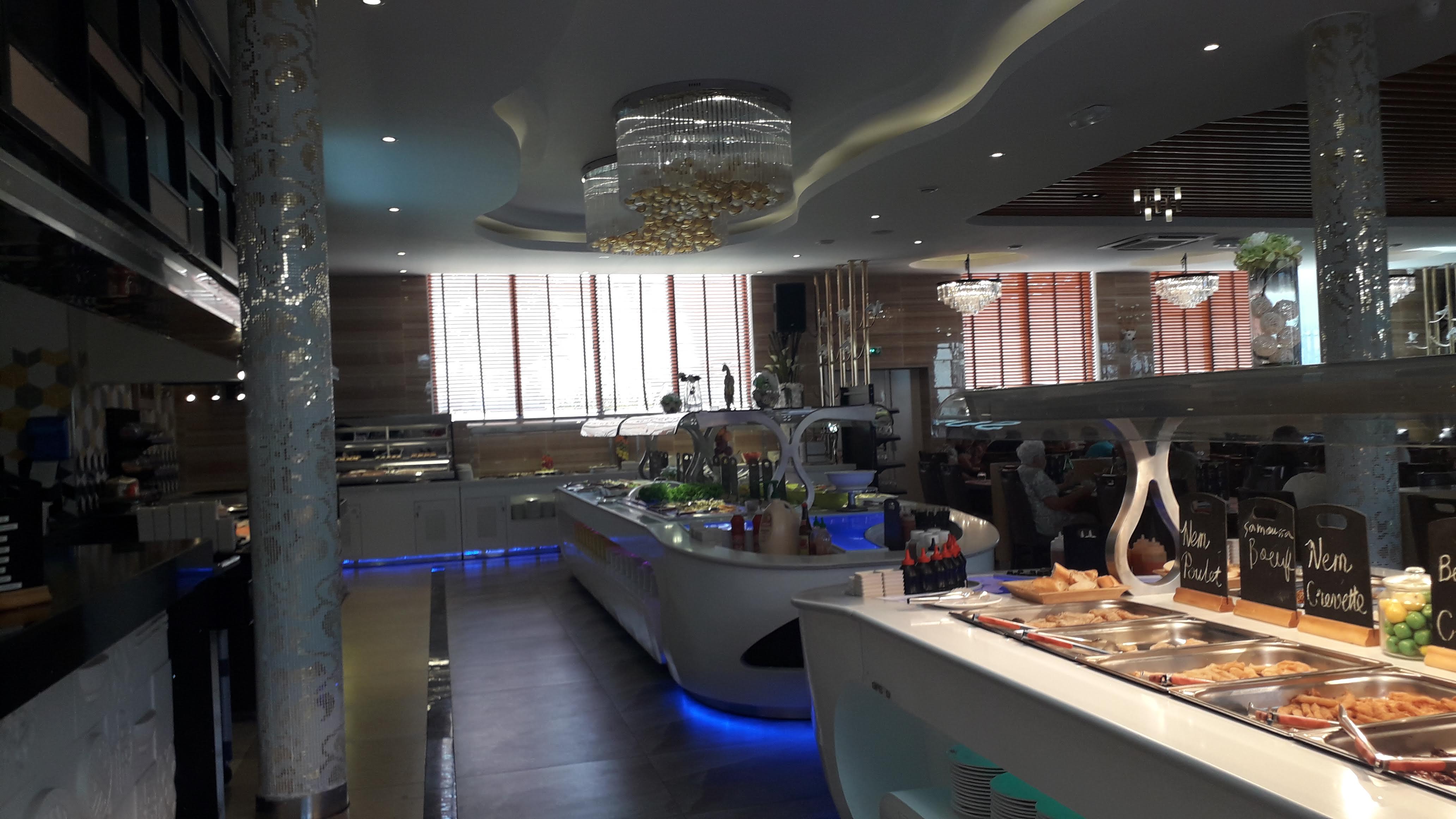 Le lieu est plutôt beau et bien aménagé. Un bel effort sur la décoration. Concernant la nourriture, il y a un large choix d'entrées, de friture, le wok est vraiment bien garni, et la partie sushi également intéressante avec des sushis originaux comme celui au matcha. Le tout étant plutôt bon. Seule déception et choses à améliorer pour les 5 étoiles, il manque un vrai buffet de dessert. Certes il y a du choix mais toutes les pâtisseries sont décongelées, plutôt sèches, et globalement pas bonnes du tout. autre petit axe d'amélioration enfin, il est compliqué du fait de l'organisation de circuler autour des buffets et entre les tables. Peut-être revoir les dispositions globale de tout ça.