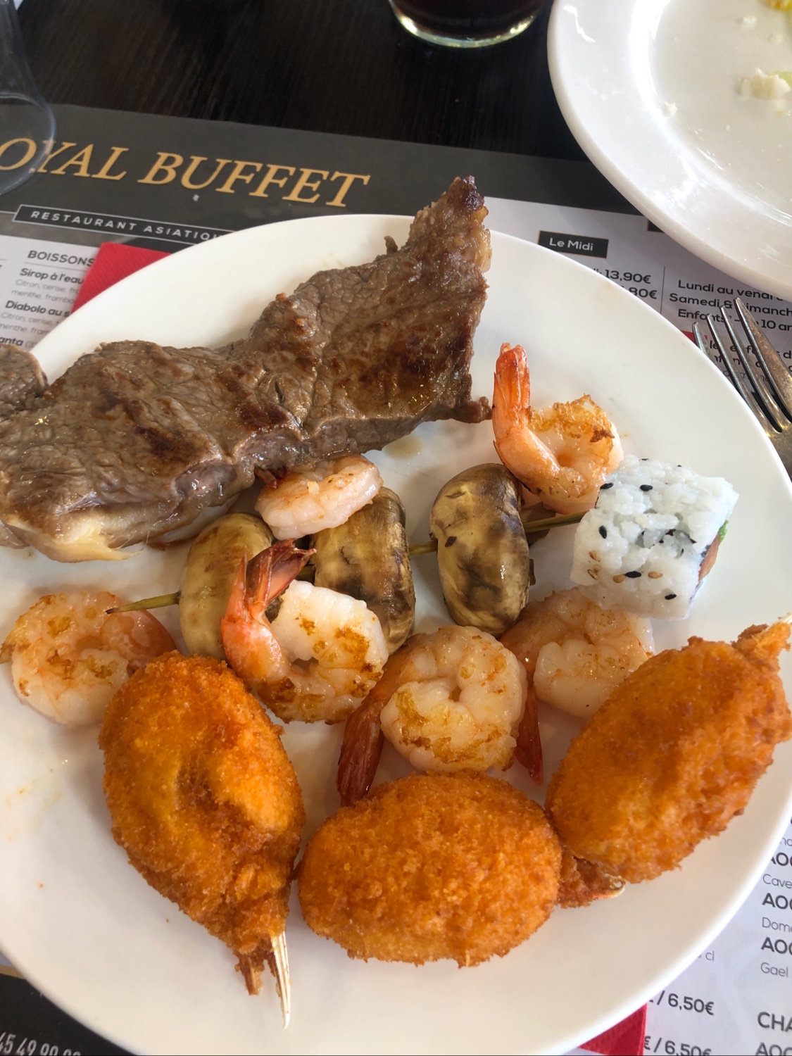 Très bonne expérience De bons repas savoureux. Un large choix d'entrées, de salades, de plats , de poissons, sushis, grillades. Il n'y a que l'embarras du choix. Et des desserts très variés pour tous les goûts, petits et grand à moins de 20euros. Je recommande fortement pour tous les amoureux de la cuisine asiatique.