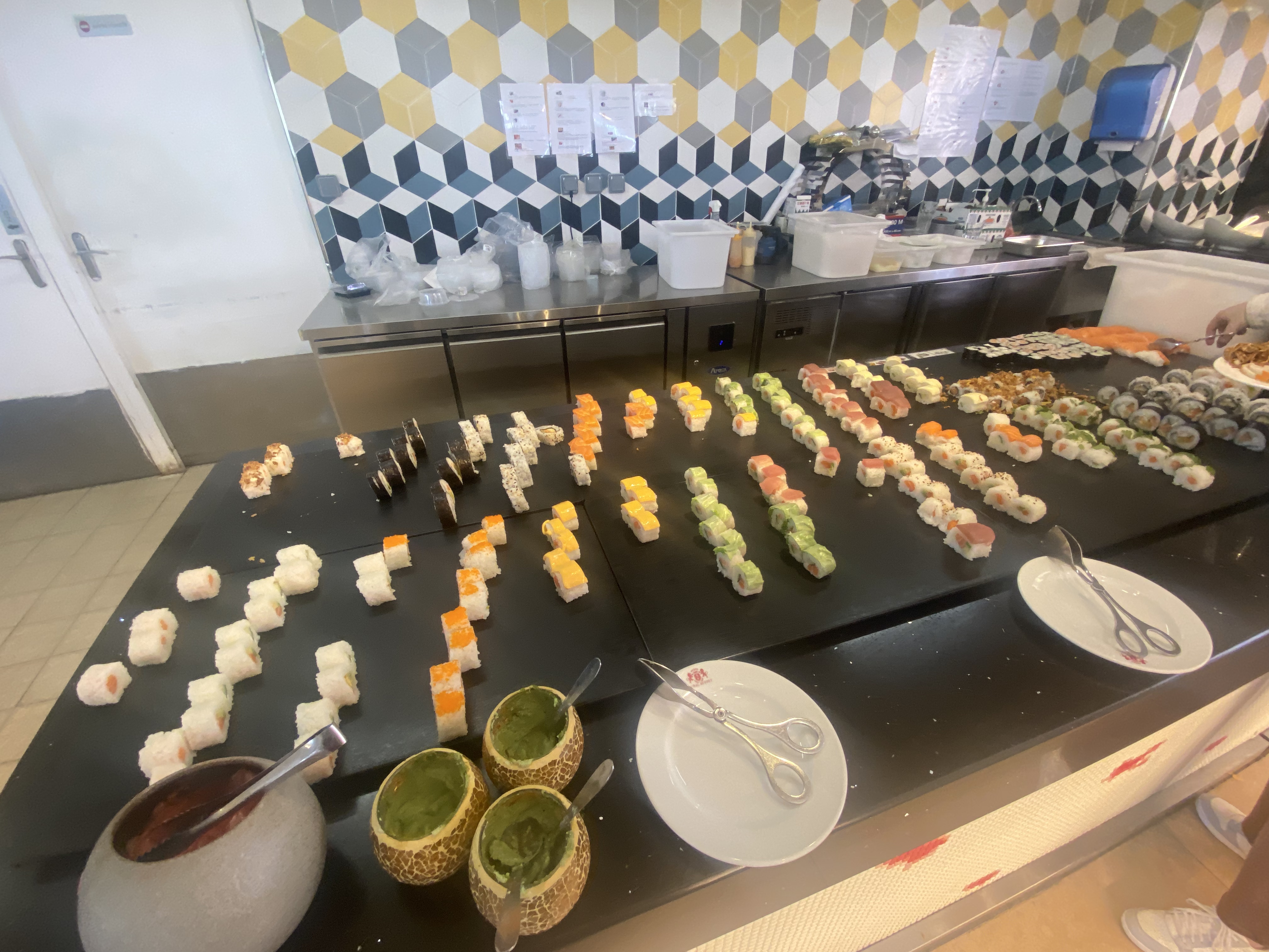 Se méfier des commentaires 4 ou 5 étoiles mis en avant . Pour ma part j’ai choisi plat à emporté ( service sur le buffet ) , Maki et california sans goût à part celui du riz pâteux . Rien d’exceptionnel dans la confection le saumon ou autre tombé déjà du maki. Nems très peu fourni . J’ai opté pour un petit plat sushi et petit chaud total de 15 euros du coup très chère pour la qualité médiocre des plats . Vue sur le buffet d’ensemble qui ne donne guère plus d’envie . Rien a redire sur le service personnel agréable et professionnel .