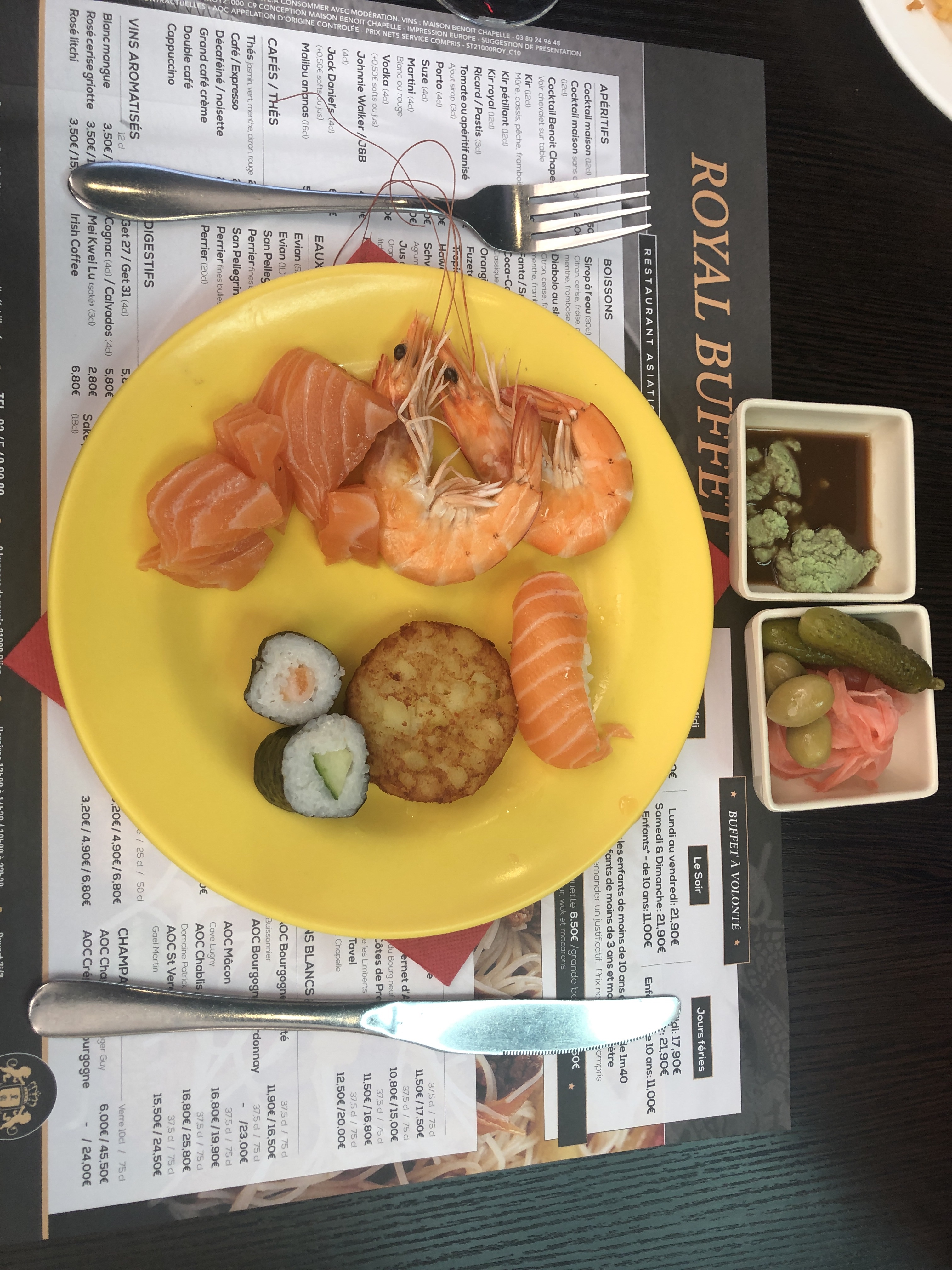 Le service et bien le restaurant et propre les employés sont bien ça aucun soucis mais la nourriture et d'une qualité médiocre le wok et dégoûtant spongieux et imbibé d'eau le buffet et fade sans aucun goût sauf les beignets de crabe les tempura sont mou les nems dur les sushi sont dépassés fais a la va vite vraiment la nourriture et exécrable le pire buffet a volonté de Dijon rien a voir avec le sushi feist a Foch gare ou les sushi sont fais sur commande et le reste de la carte et bon je déconseille le Royal buffet