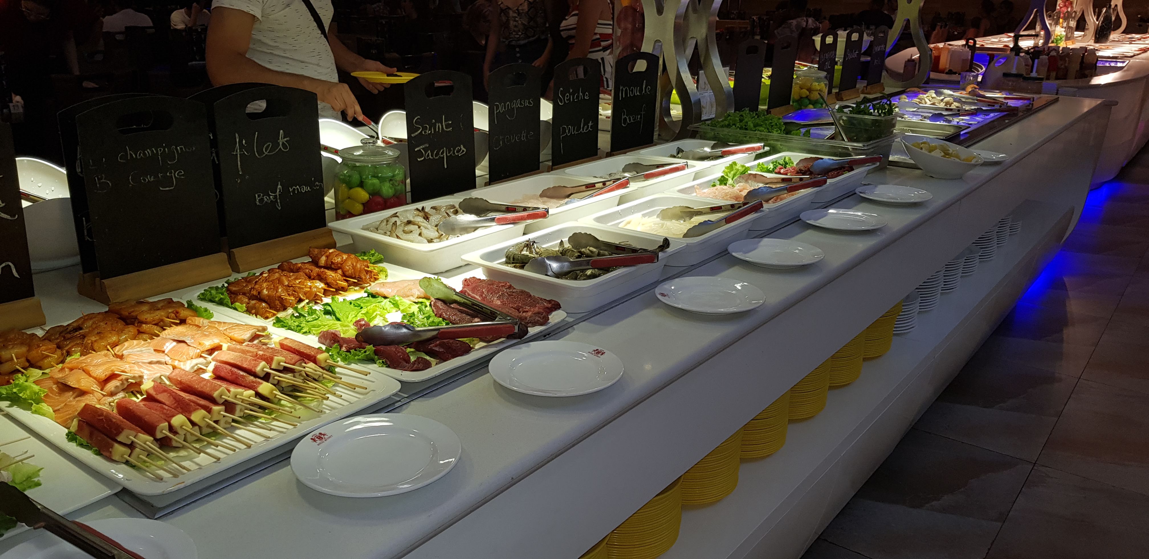 Beaucoup de choix rien a redire là dessus malheureusement pas de première fraîcheur, les viandes sont sèches, les nems et autre fritures on sûrement dû être rechaussé. Les serveurs donnent l'impression de pas avoir envie d'être ici, pas de sourire. Hygiène a revoir