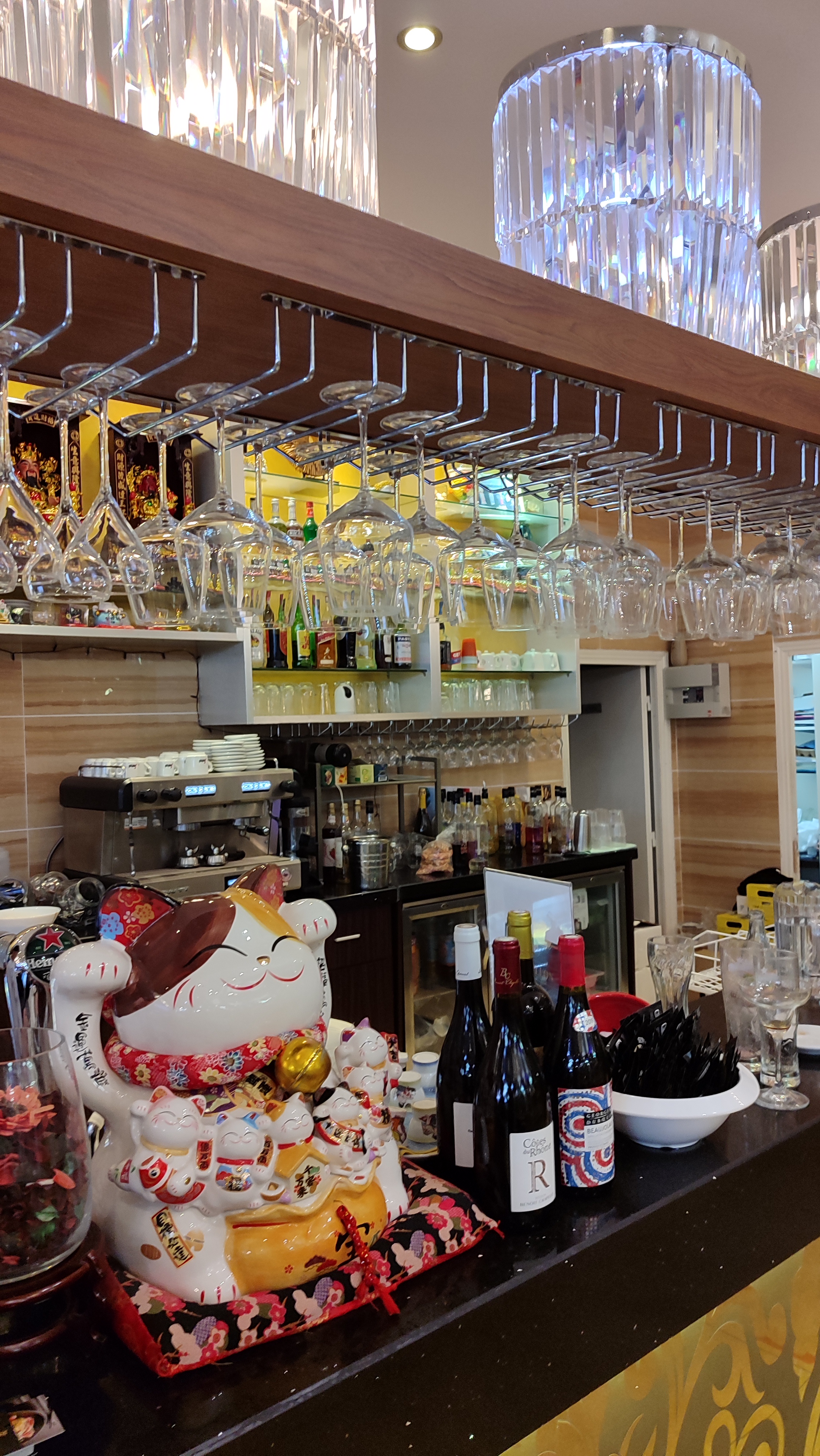 Pas mal pas mal. La décoration est très moderne et à la fois traditionnelle. Gros + Dommage pour les serveurs pas trop souriants. - La nourriture sans le caché y'a peut-être 40% maison et 60% Industriel, ça on le sait ! Ceci dit les sushis sont très bons ++ Les buffets sont assez garnis (attention aux plats parfois trop salée ), le WOK est correct mais sans plus, attention à bien décongeler vos calamars, la viande pas terrible, il manque aussi les nouilles de riz qui sont pour moi primordial pour un WOK. Niveau dessert, que de l'industriel, La rangée de bonbons alignées donnent vraiment envie par contre +