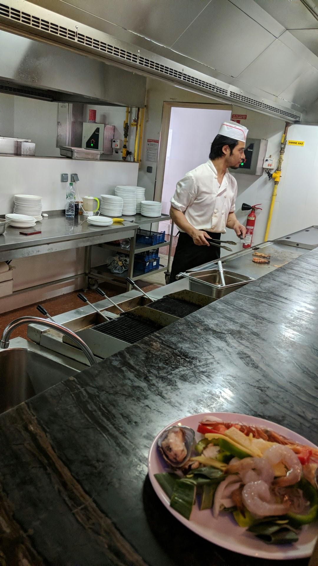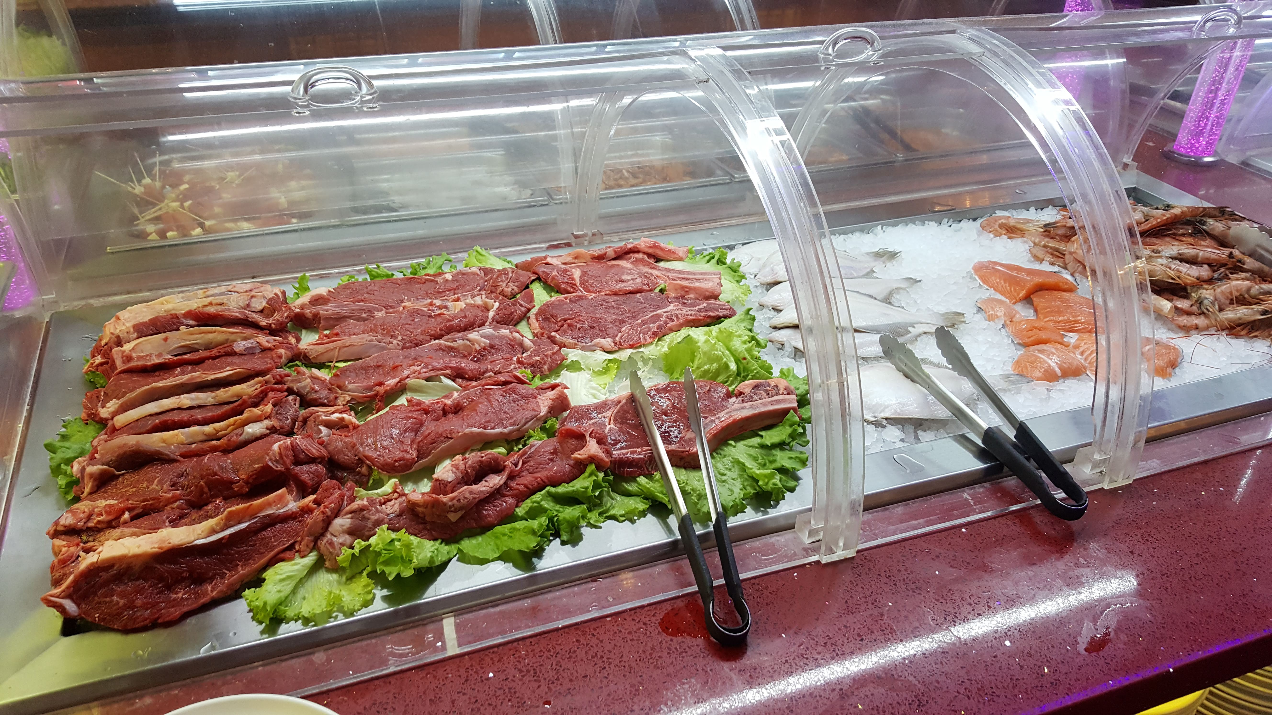 Bon restaurant, du choix. Seul bémol les gens qui ne savent pas refermer les couvercles pour les viandes et les poissons pour garder la fraîcheur et éviter que ses produits tournent. C est dommage que les fruits de mers et les viandes soit cuites sur la même plaque à grill. Bon vin chinois. Et les prix restent correct. L accueil et le service personnels était super agréable souriant 😃 aimables.