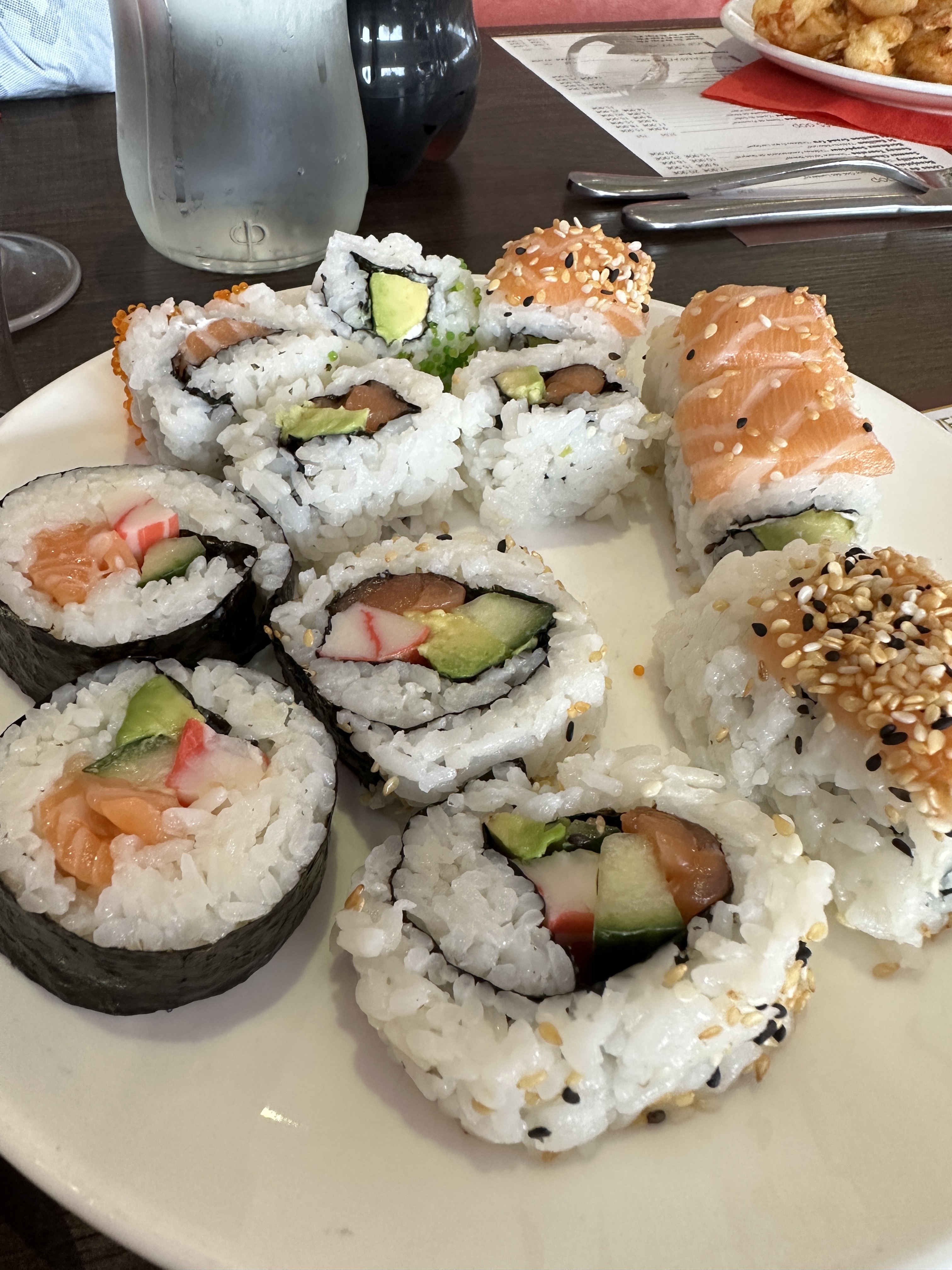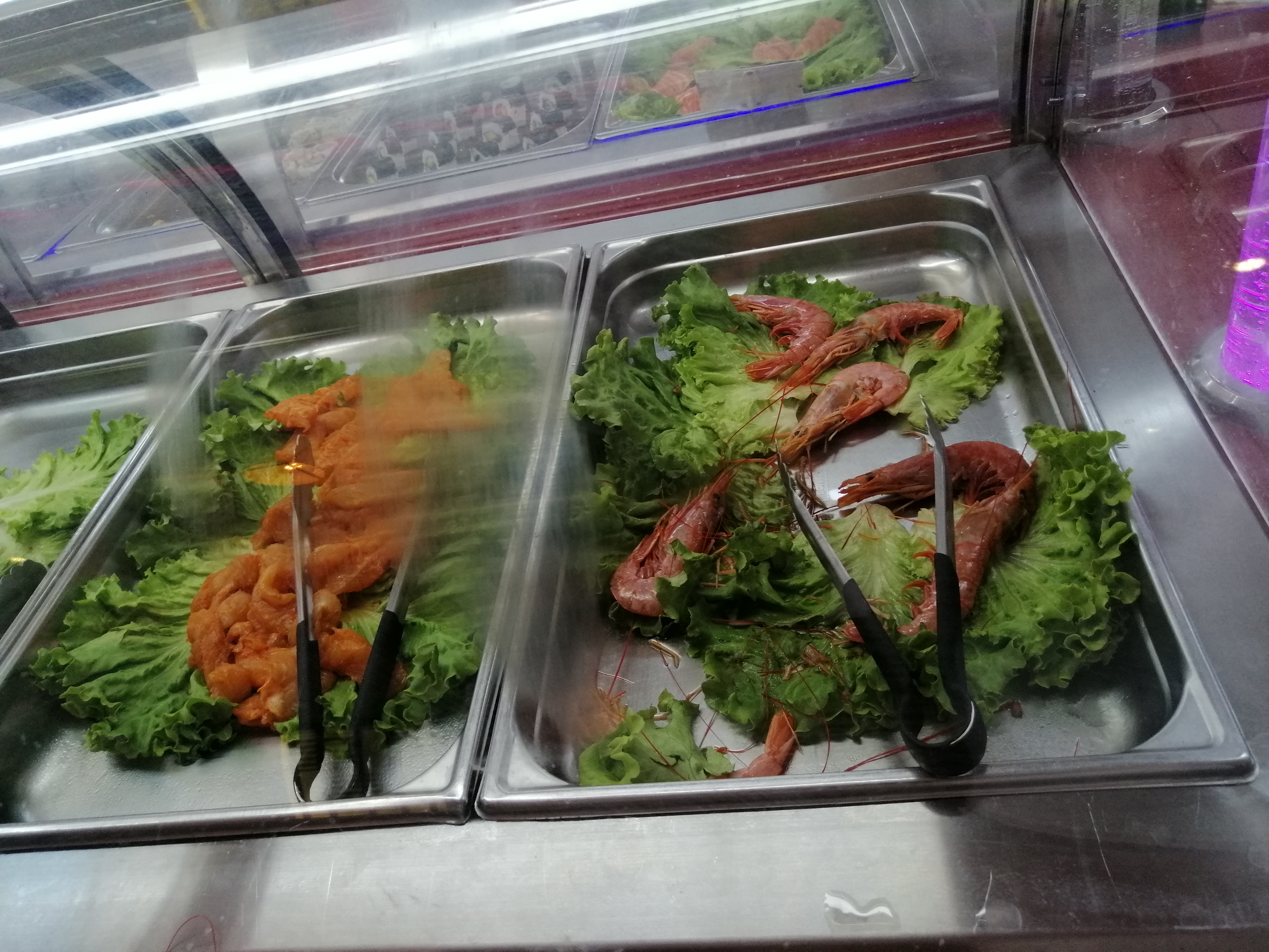 Le restaurant est très grand, peut convenir à plusieurs types d'événements (anniversaire etc..) Une bonne variété de produits, le wok semble frais, mais les sushi ne sont agréables, le riz est plutôt compact et très lourd dans la bouche.