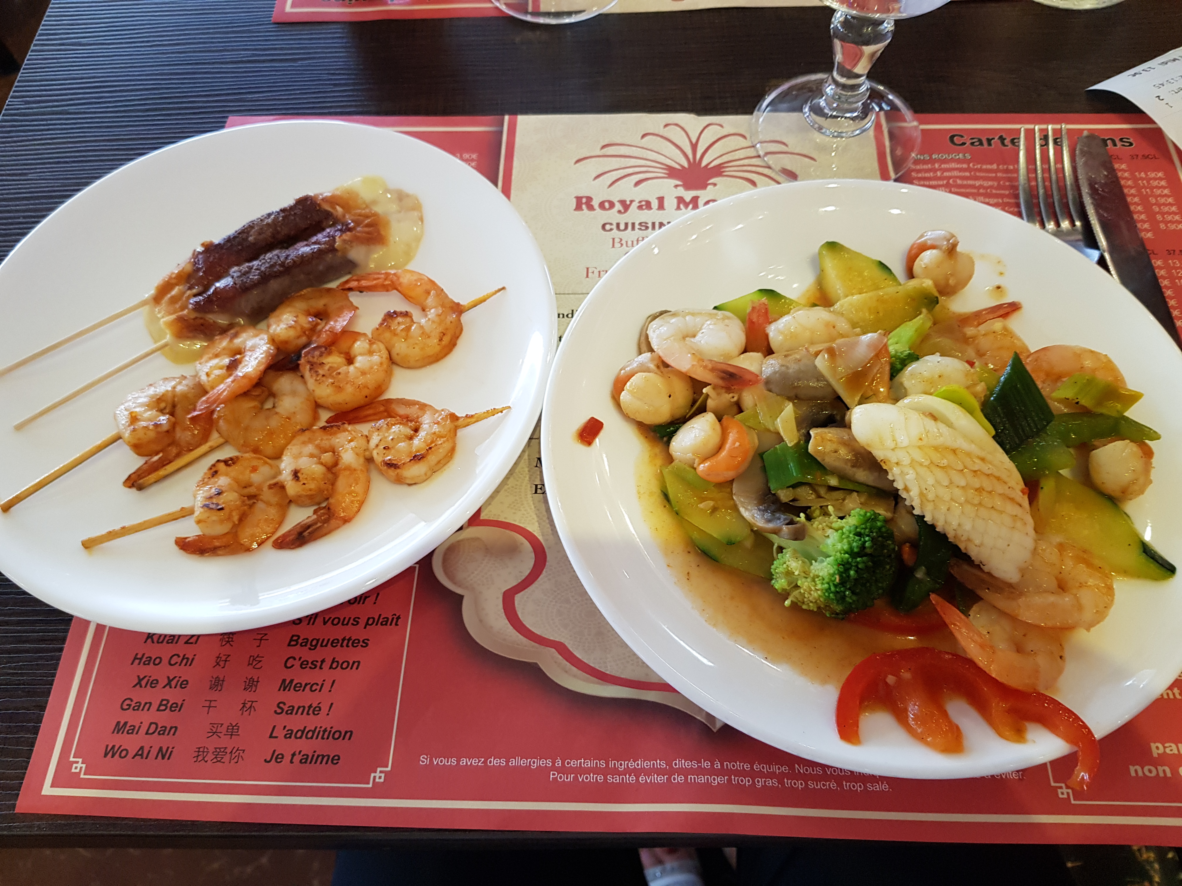 Crevettes, langoustines, huîtres à volonté Wok très bien garni On a très bien mangé pour 20,90 euros en soirée