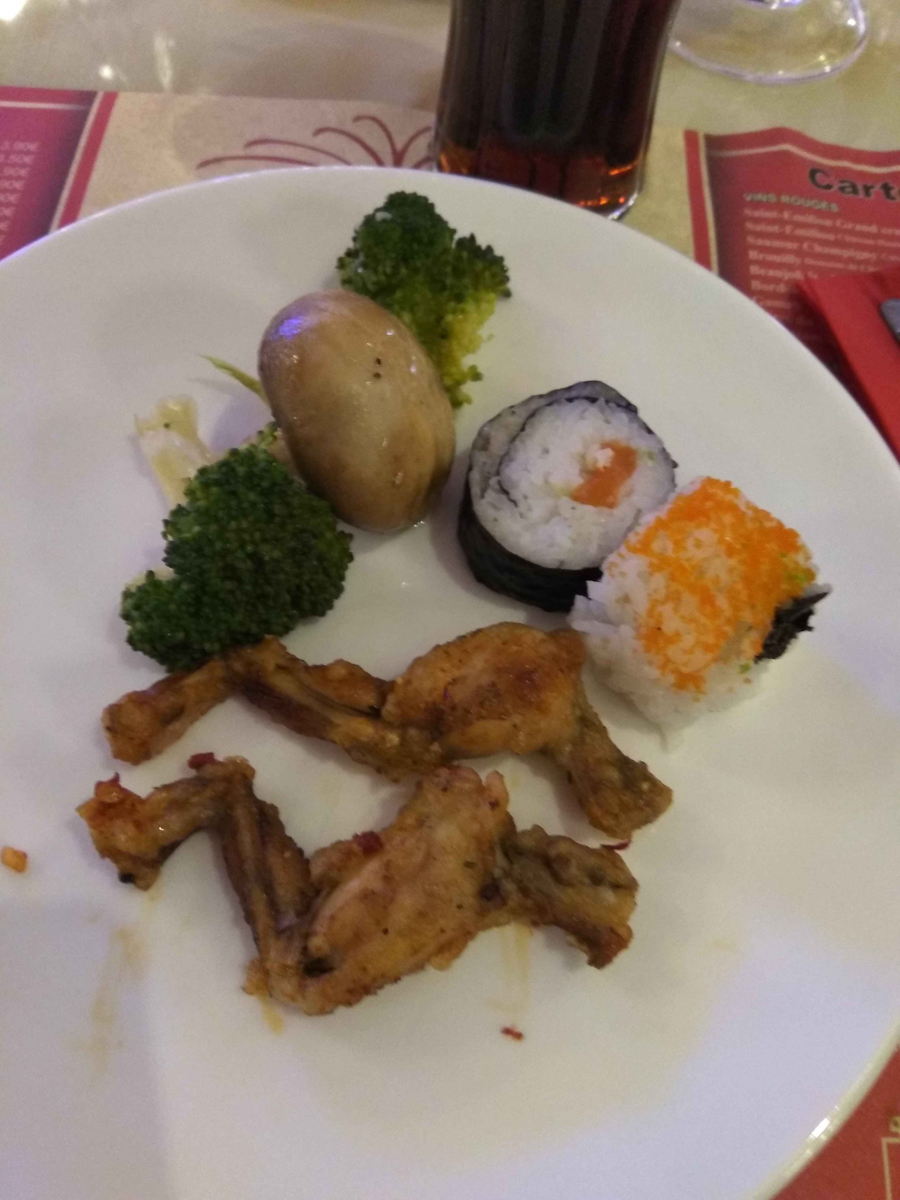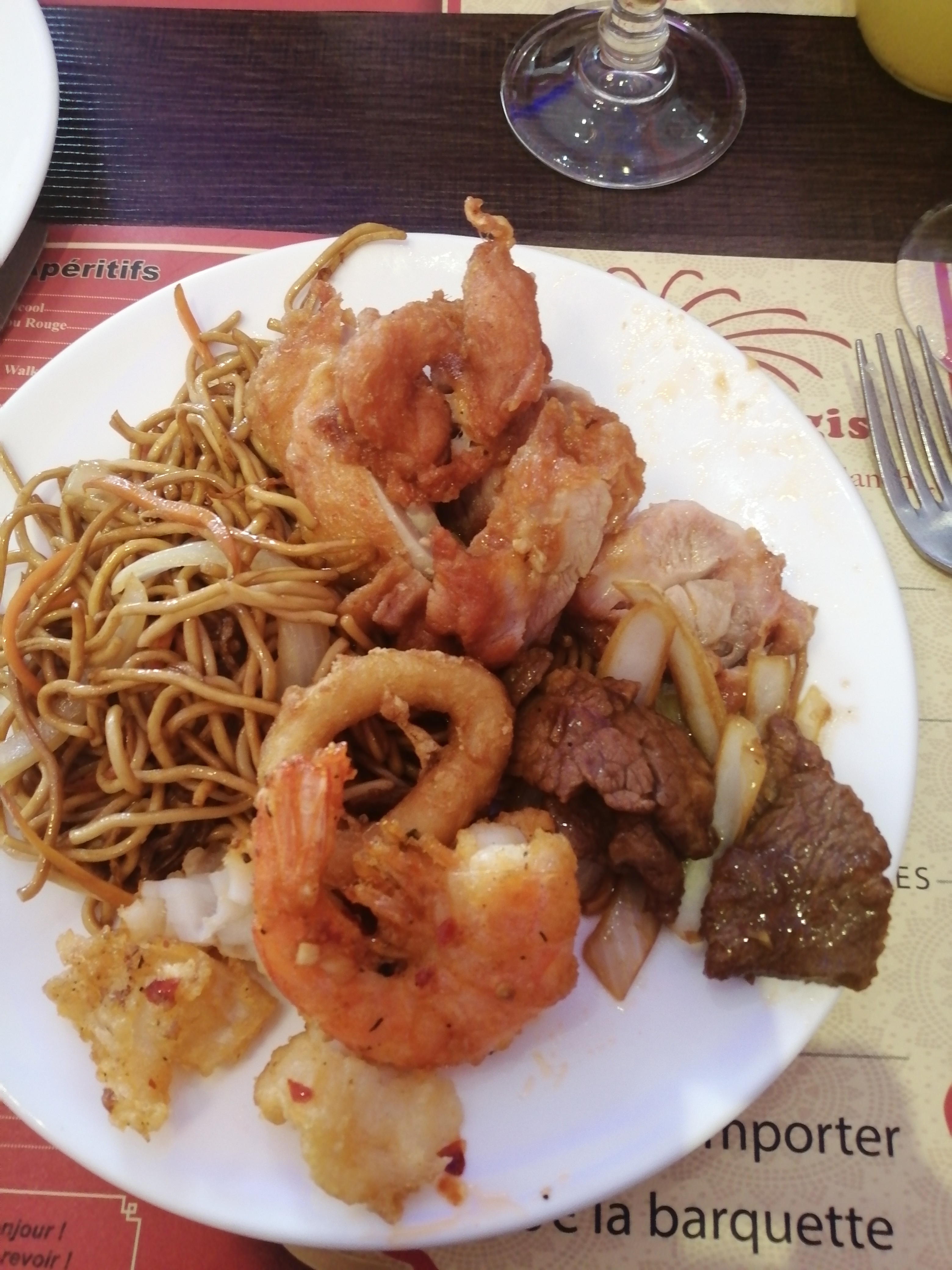 Beaucoup de choix . non ! Énormément de choix . Prix raisonnable. (12€90 le buffet le midi 3€50 le coca ) Qualité de certains aliments moyenne . Comme les boulettes de poulet ou de boeuf un peu sèches. Bon buffet de dessert .