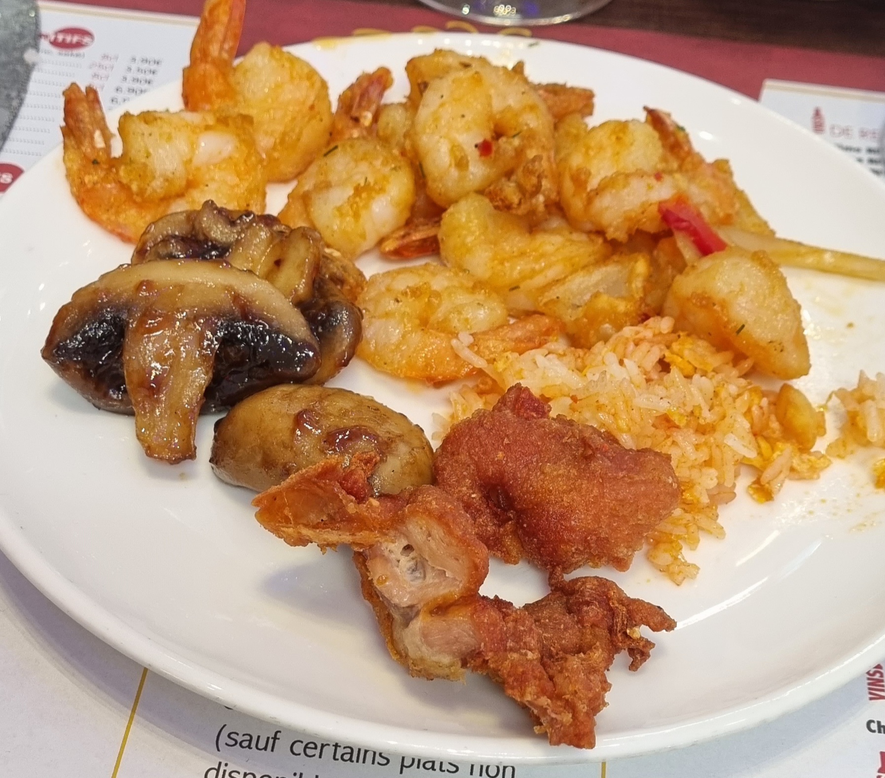 Large choix de plats asiatiques, quelques fruits de mer et grillades En buffet à volonté Très correct quoique sucré