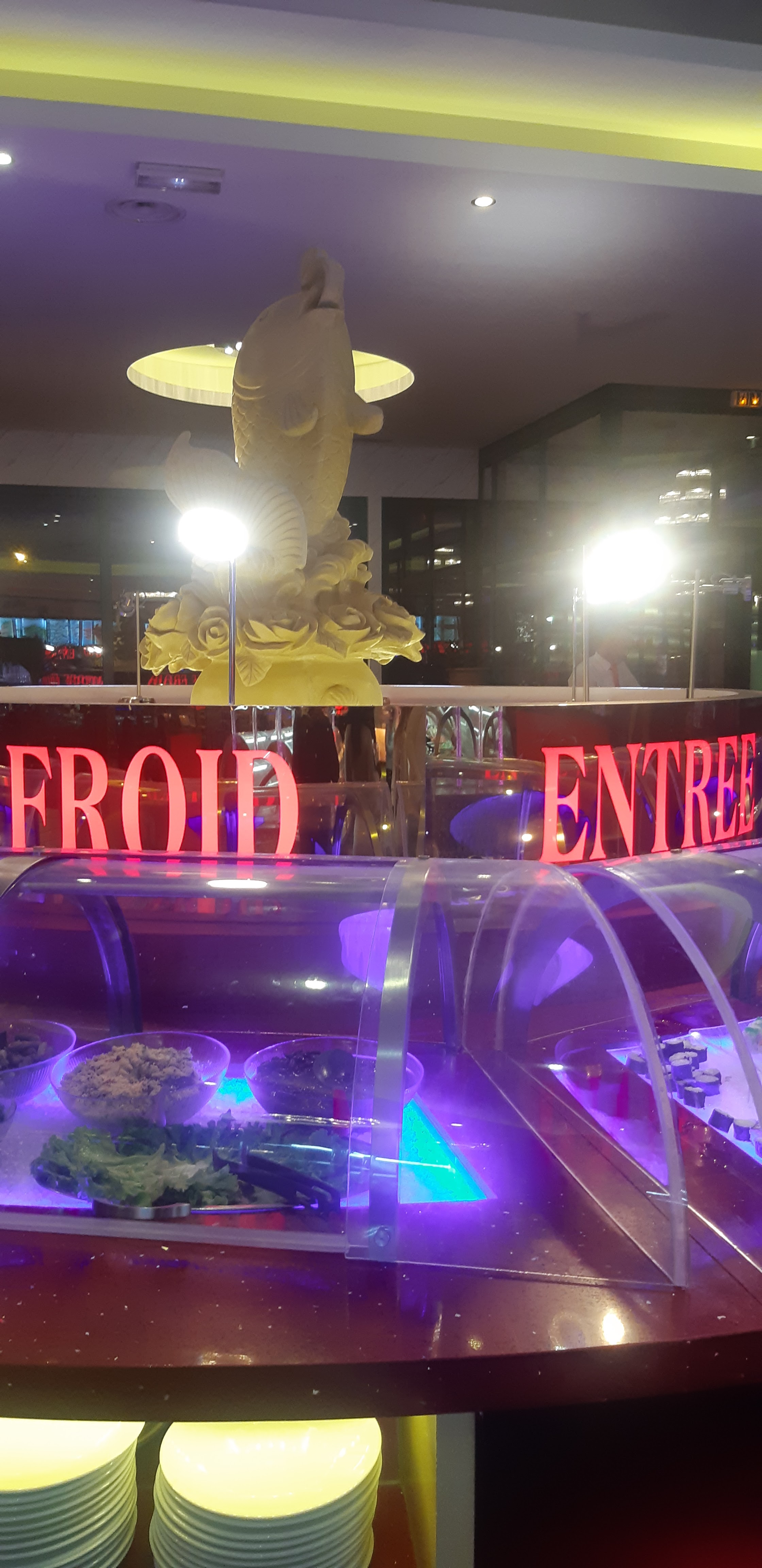 C'est un bon restaurant à volonté et bien spacieux. Les aliments sont présentés de façons bien distinctes. De plus, il y'a énormément de choix que ça soit en plat chaud, fruit de mer ou dessert. Je recommande