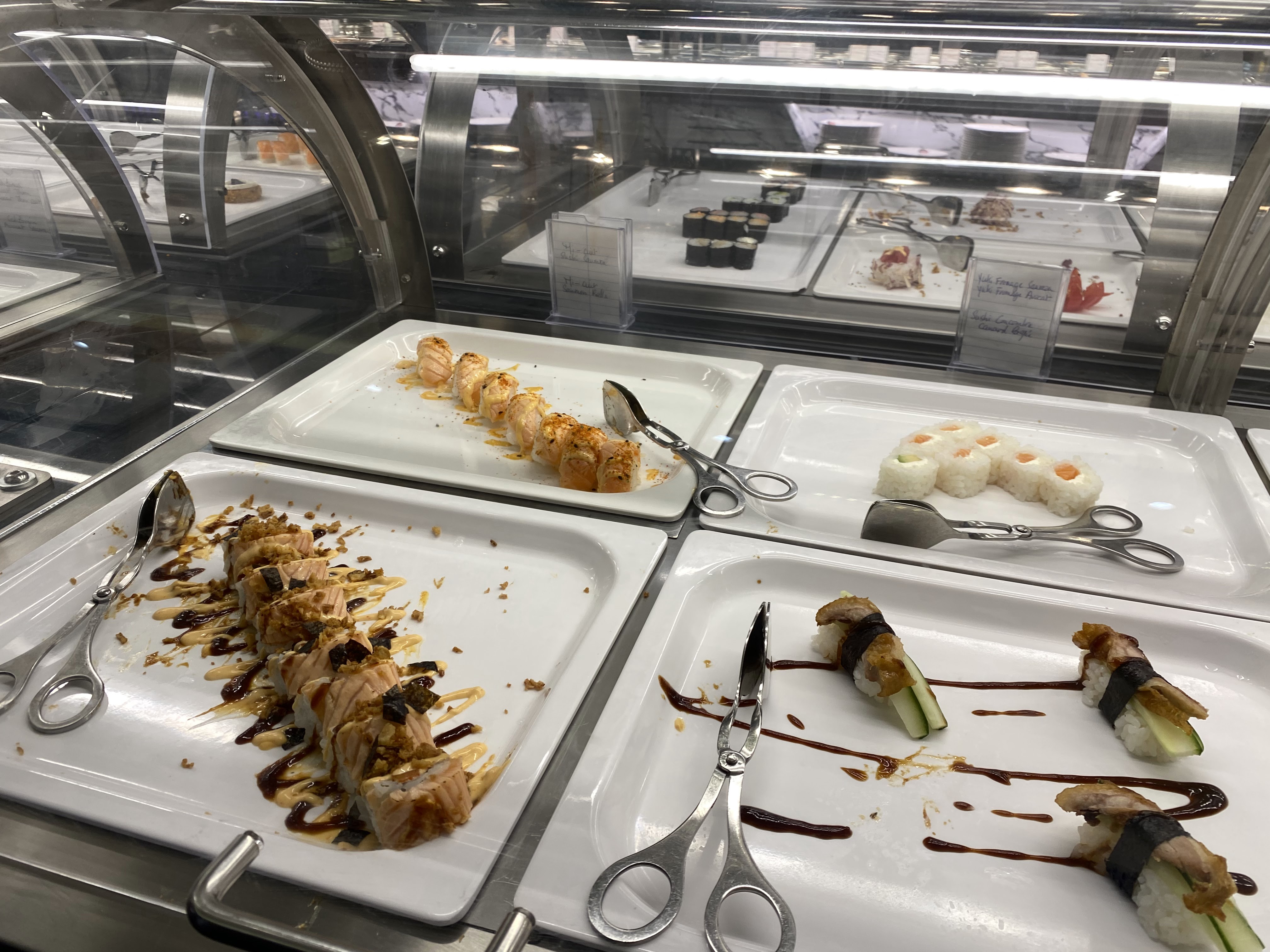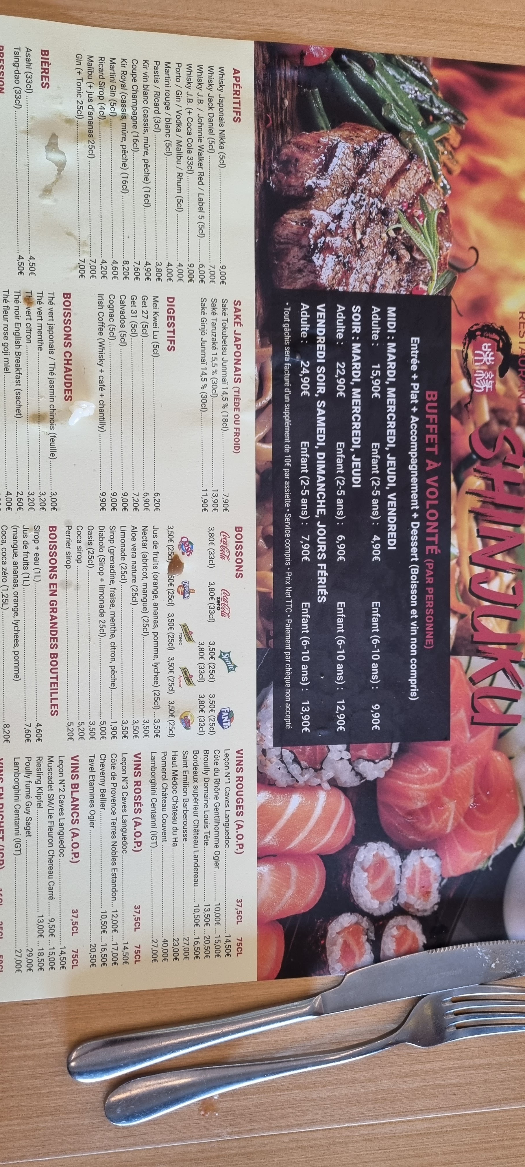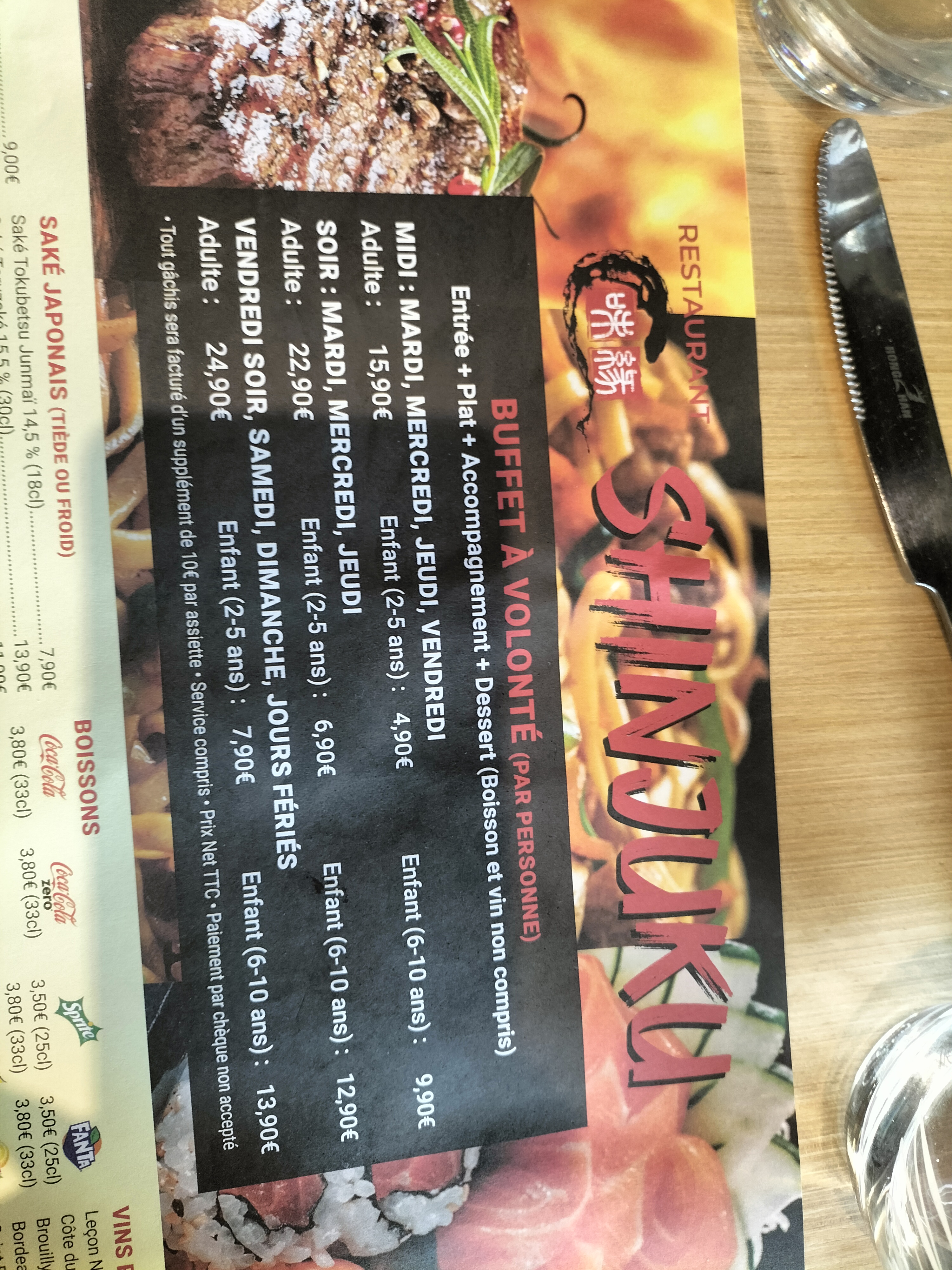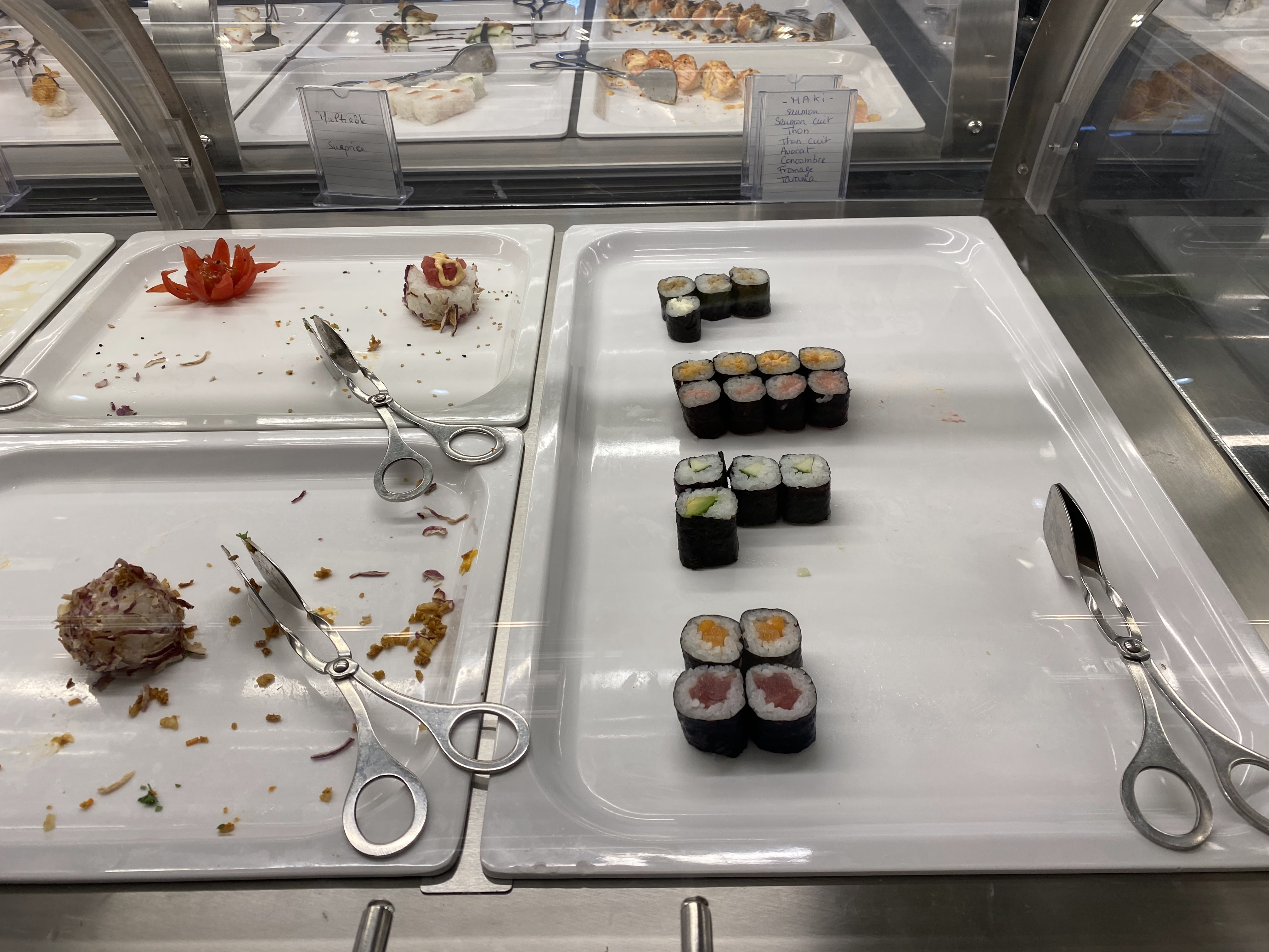 Ne pas y aller, les plats sont sec et il y’a très peu de choix. Tout est dur, les basiques (tempura,nouille,bœuf fromage ) rien n’y étais ! A la fin j’ai demandé poliment un petit geste de leur part ( ou moi même je suis auto-entrepreneuse je l’aurais fait ) je me suis fait envoyer bouler très fortement et reste bloqué dans leur conviction que arrive à 20;40 c’est normal. Quel honte ! Il y a des milliards d’autre buffet à volonté large meilleure et surtout plus agréable et plus commercial !
