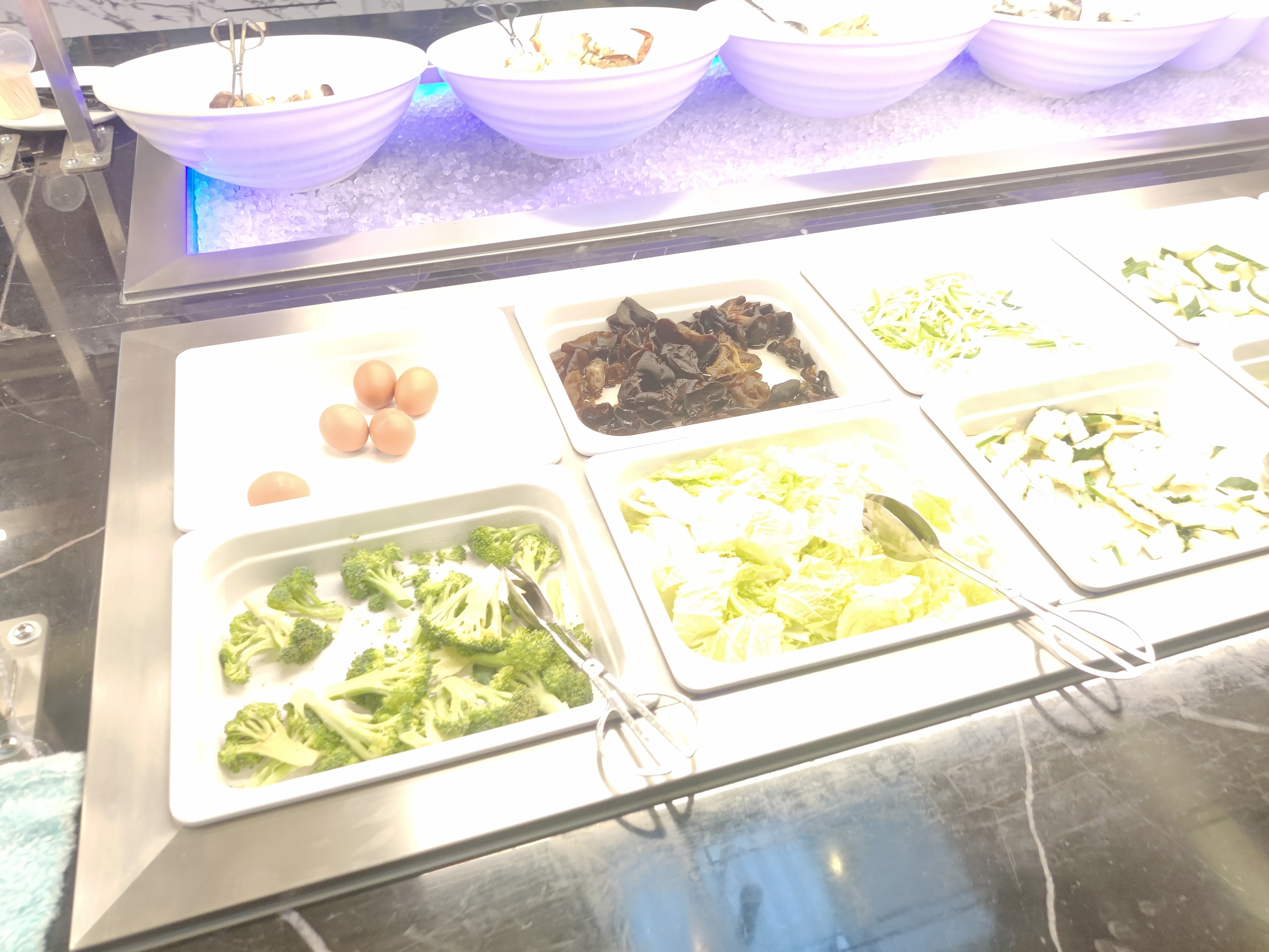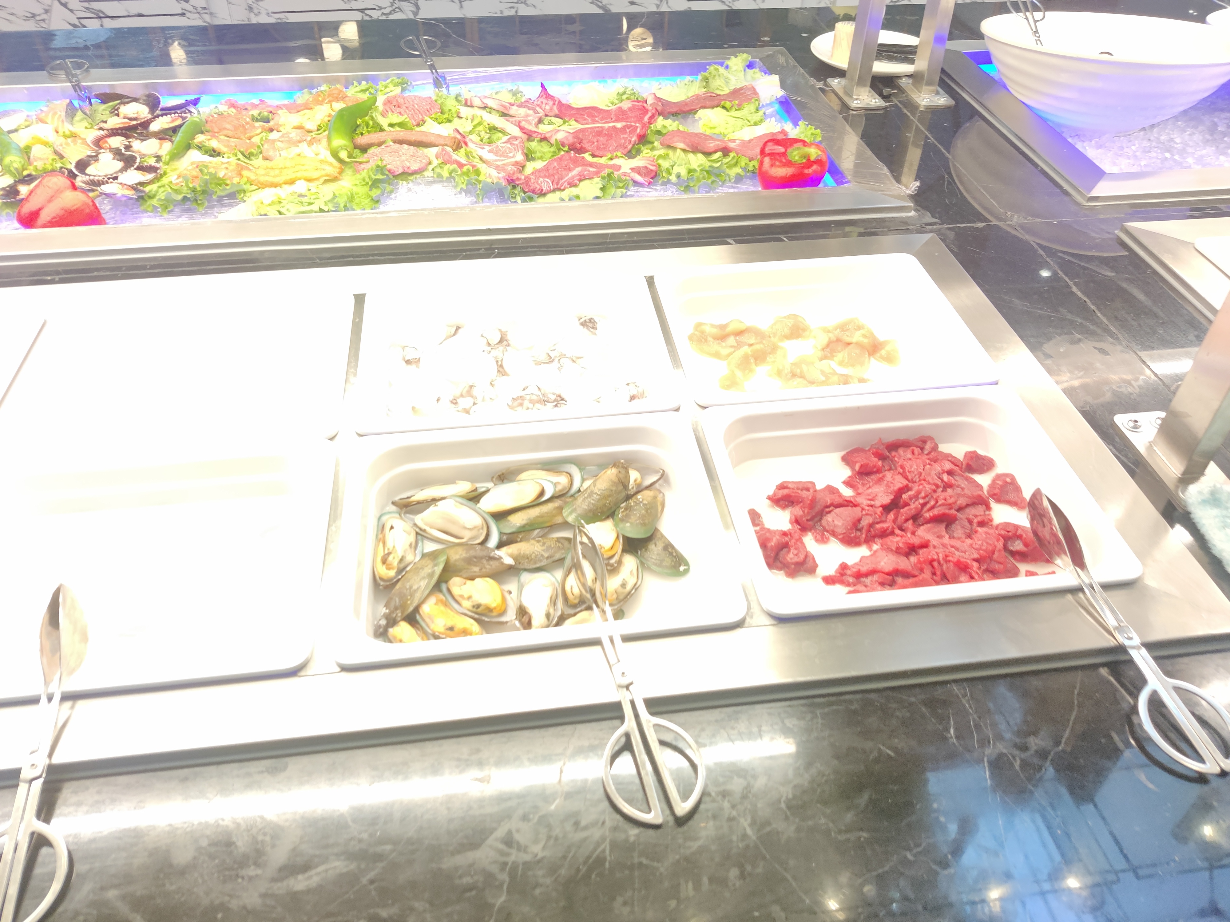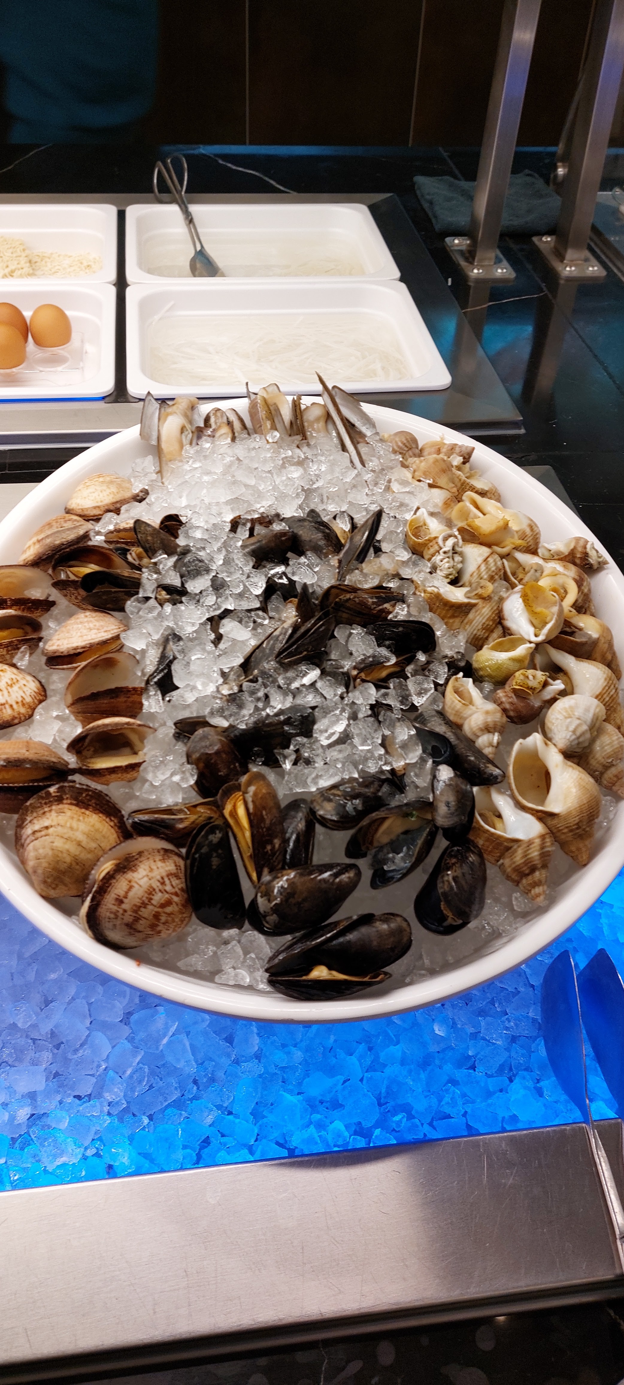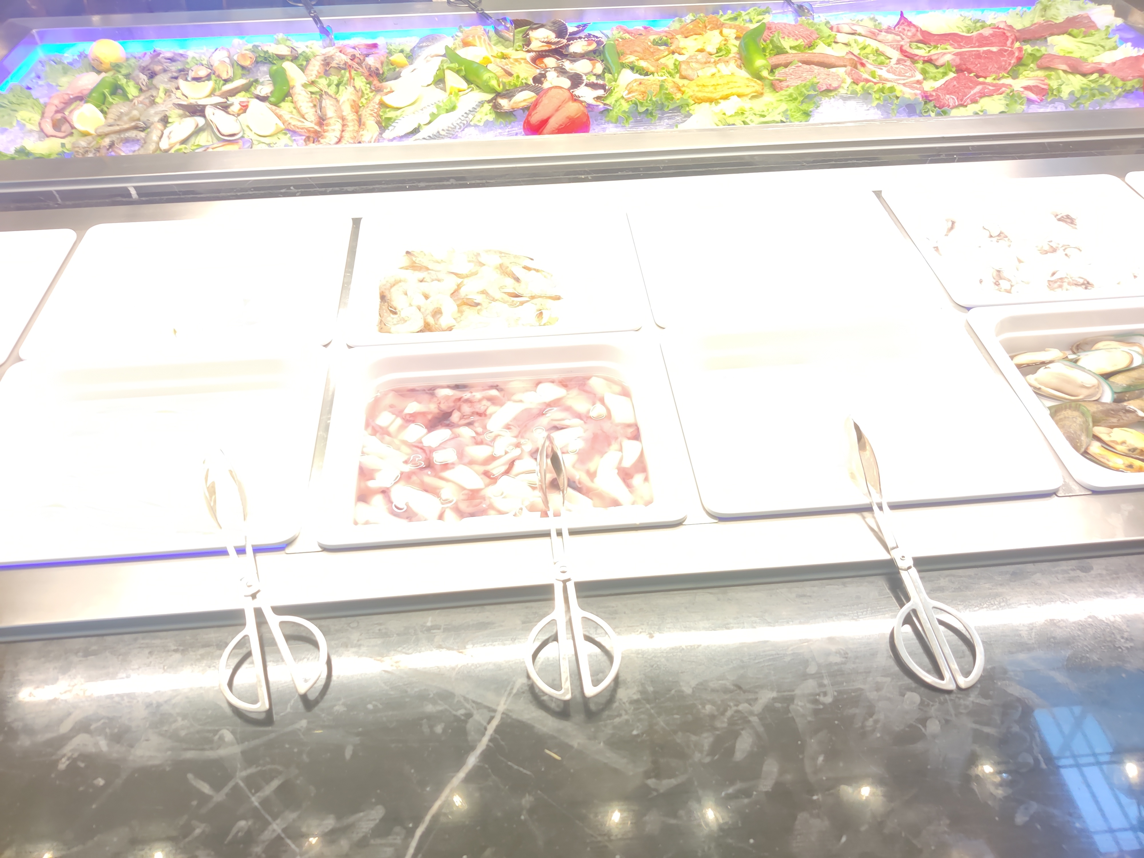 Dans l'ensemble, les choix sont nombreux. J'adore les huîtres et les coquillages servis frais sur un lit de glace. La décoration est magnifique, style 1930. Le restaurant est propre. Cependant, soyons réalistes, quelle est la fraîcheur réelle de tant de plats ? Je pense qu'ils font un excellent travail pour fournir de la fraîcheur et de l'originalité, mais la question se pose toujours : quelle est la part de ce qui est congelé et réchauffé ? Et d'où viennent-ils ? Honnêtement, lorsque plusieurs personnes manipulent les poignées de service, comment peut-on éviter la contamination croisée ? Ma principale préoccupation concerne les plats ouverts contenant des sauces, par exemple la mayonnaise, la sauce au piment et d'autres sauces, qui sont placées dans des plats ouverts et exposées aux microbes des autres convives qui toussent, éternuent, etc. Pourquoi ne pas utiliser le système de pompe ?