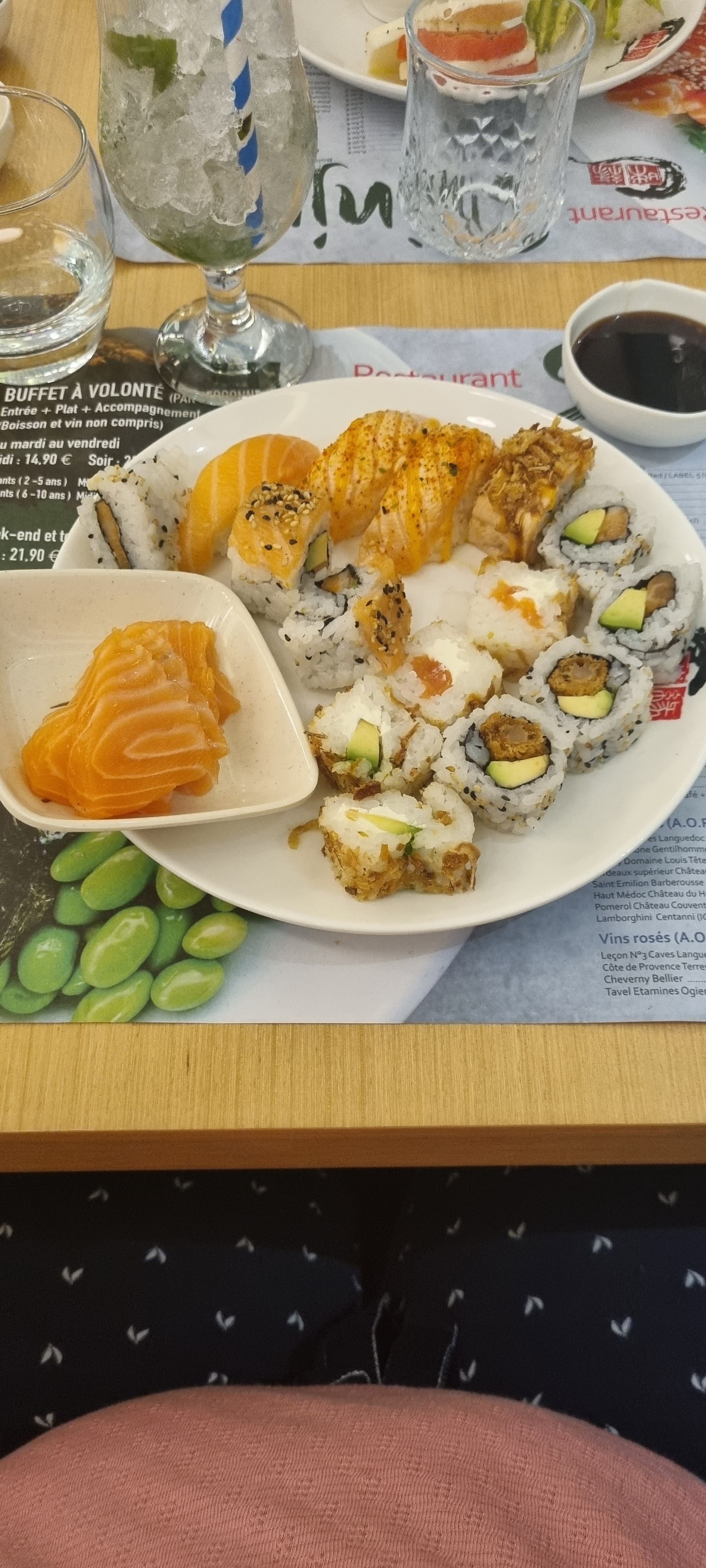 WOUAWWWWWW Très très agréablement surpris, on ne s'attend pas à pareille qualité sur un buffet à volonté !!! Le restaurant est propre, les chaises sont de très bonnes qualités avec une très bonne assise, le personnel est gentil et discret. La partie buffet est juste incroyable : les produits sont variés, frais et vraiment hyper bons. Ca ne déborde pas de nourriture et ca fait que tout reste bien présenté et frais, tout est très bien cuisiné. La partie maki sushi propose un agréable choix avec des propositions variées et pas simplement sushi saumon ou thon et maki saumon ou thon. Vraiment un régal, prix hyper abordable pour la qualité du buffet, je recommande à 100%, vous pouvez y aller les yeux fermés.