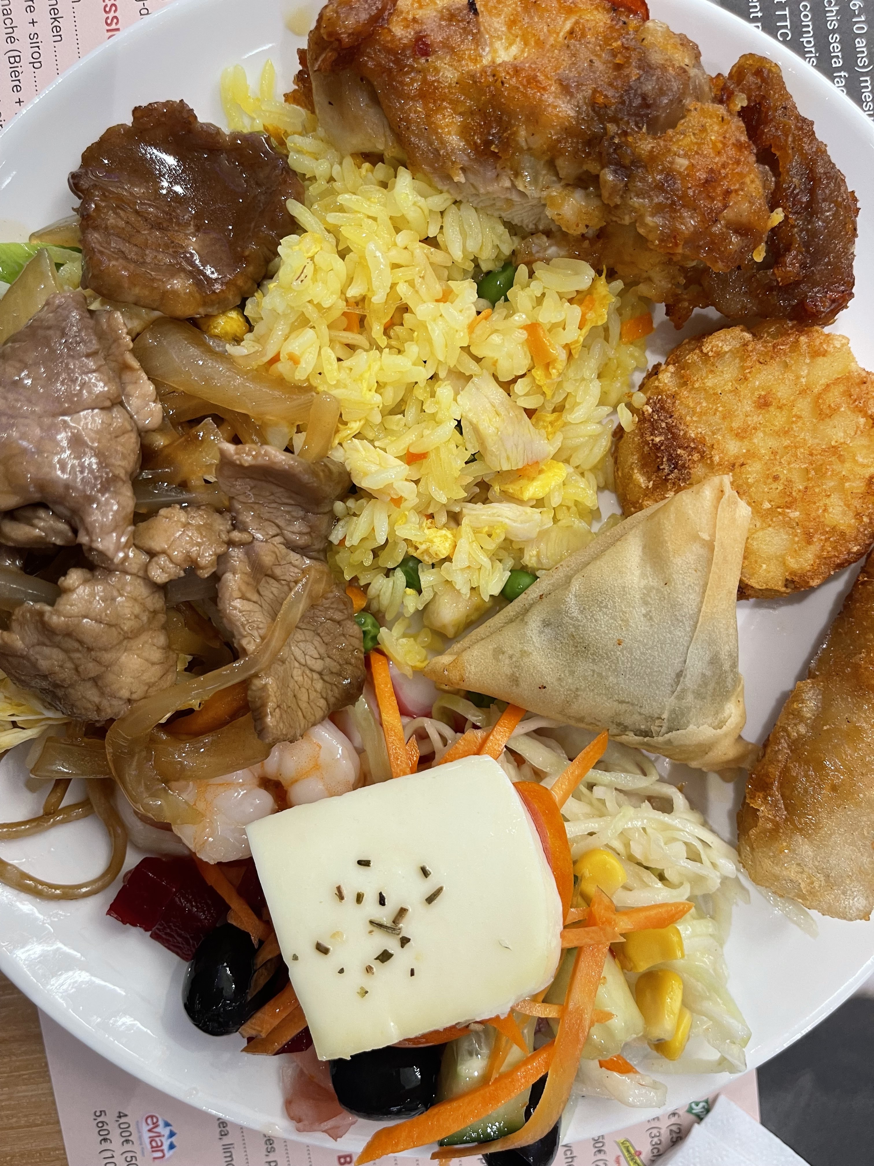 Lieu sympathique Ambiance agréable et spacieuse Buffet à volonté avec bcp de choix. Il y en a pour tous les goûts : japonais, chinois et même français. Beaucoup de variétés en entrée, Plats et desserts. Propre, personnel aimable.