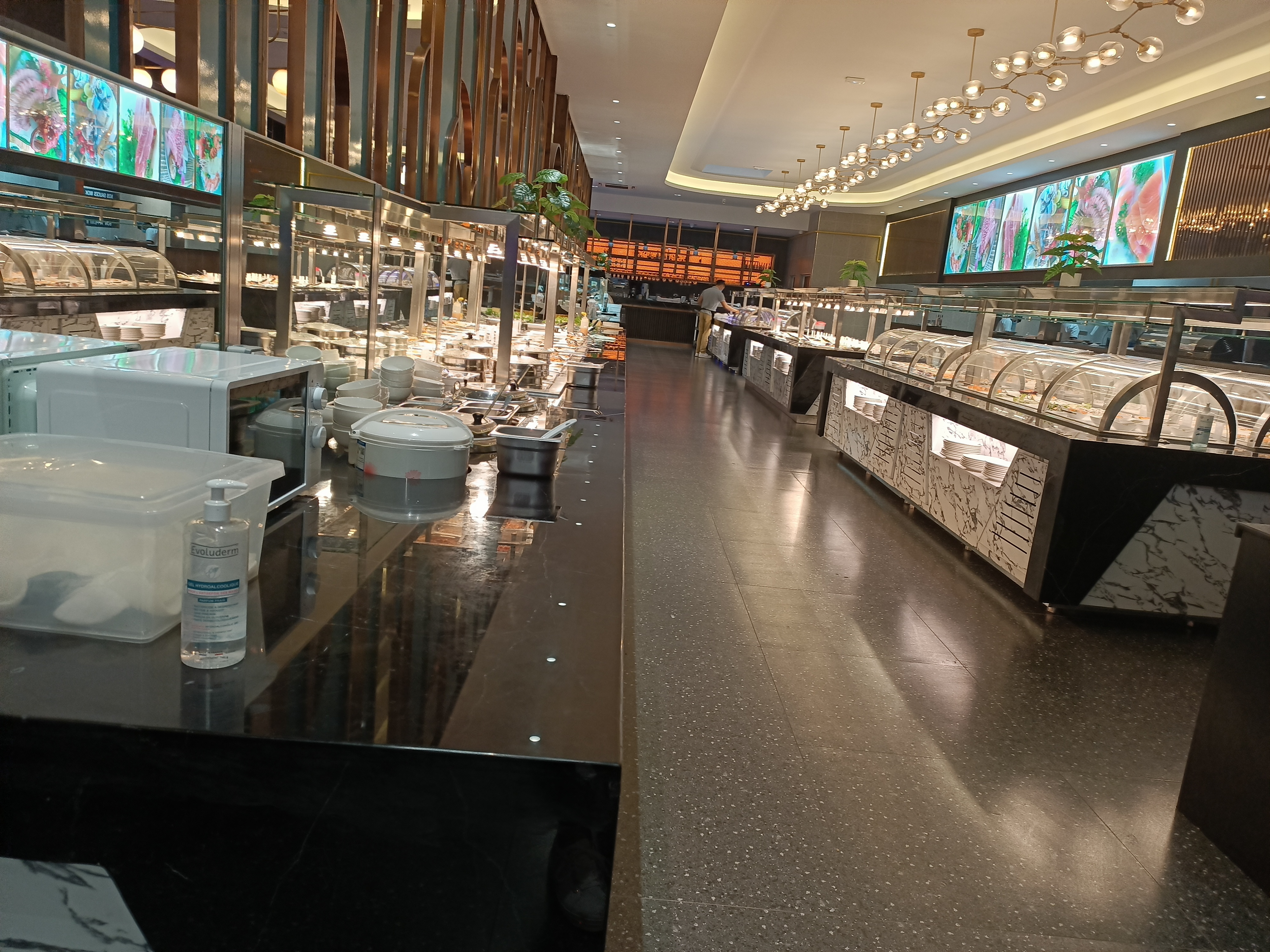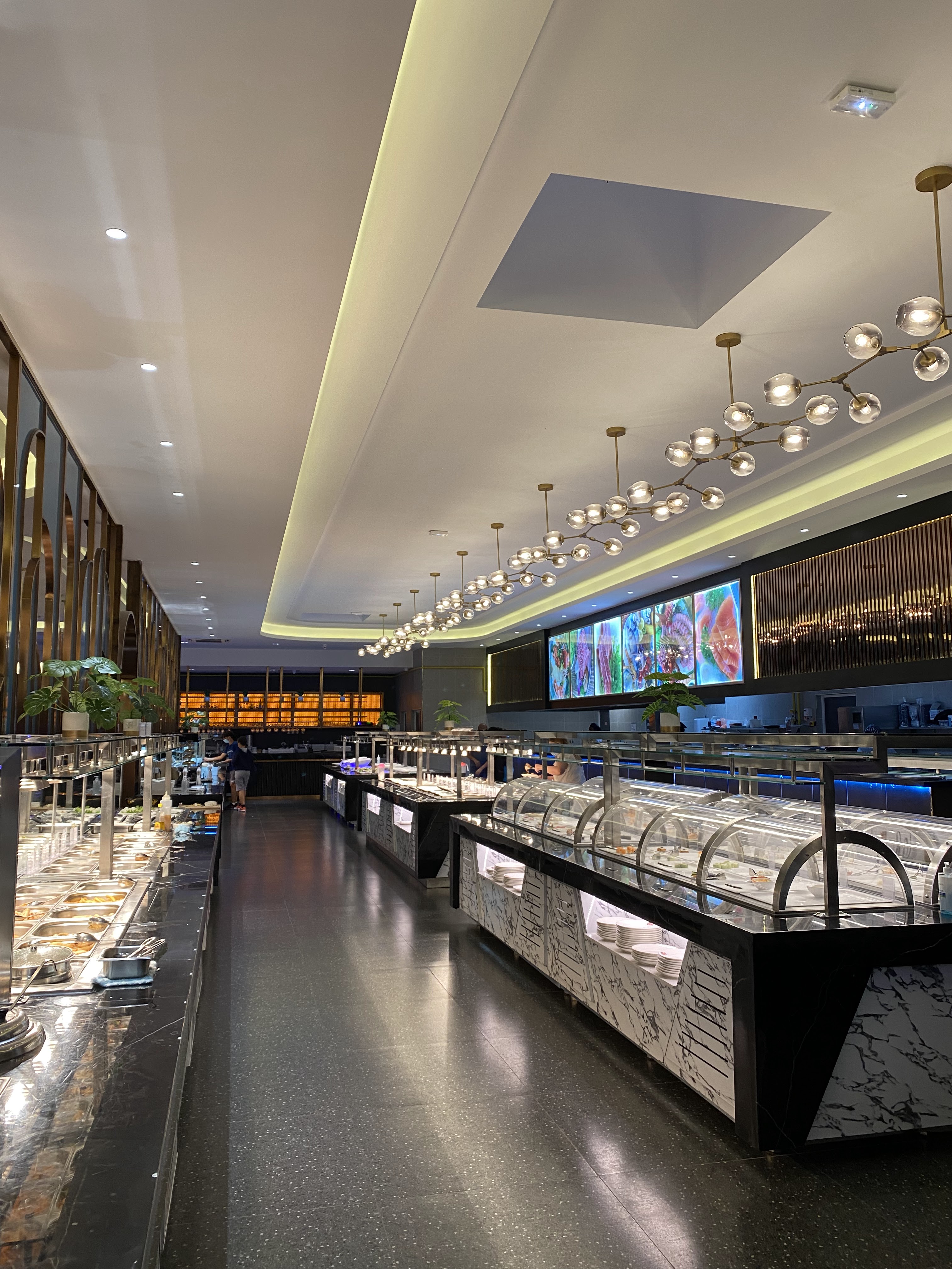 Cuisine bien soignée (le meilleur resto buffet qui fait les meilleurs sushis que j'ai déjà goûté). Hygiène respectée. Resto ouvert depuis 2 mois mais en haut gamme (bcp de choix). Sans doute je vais revenir