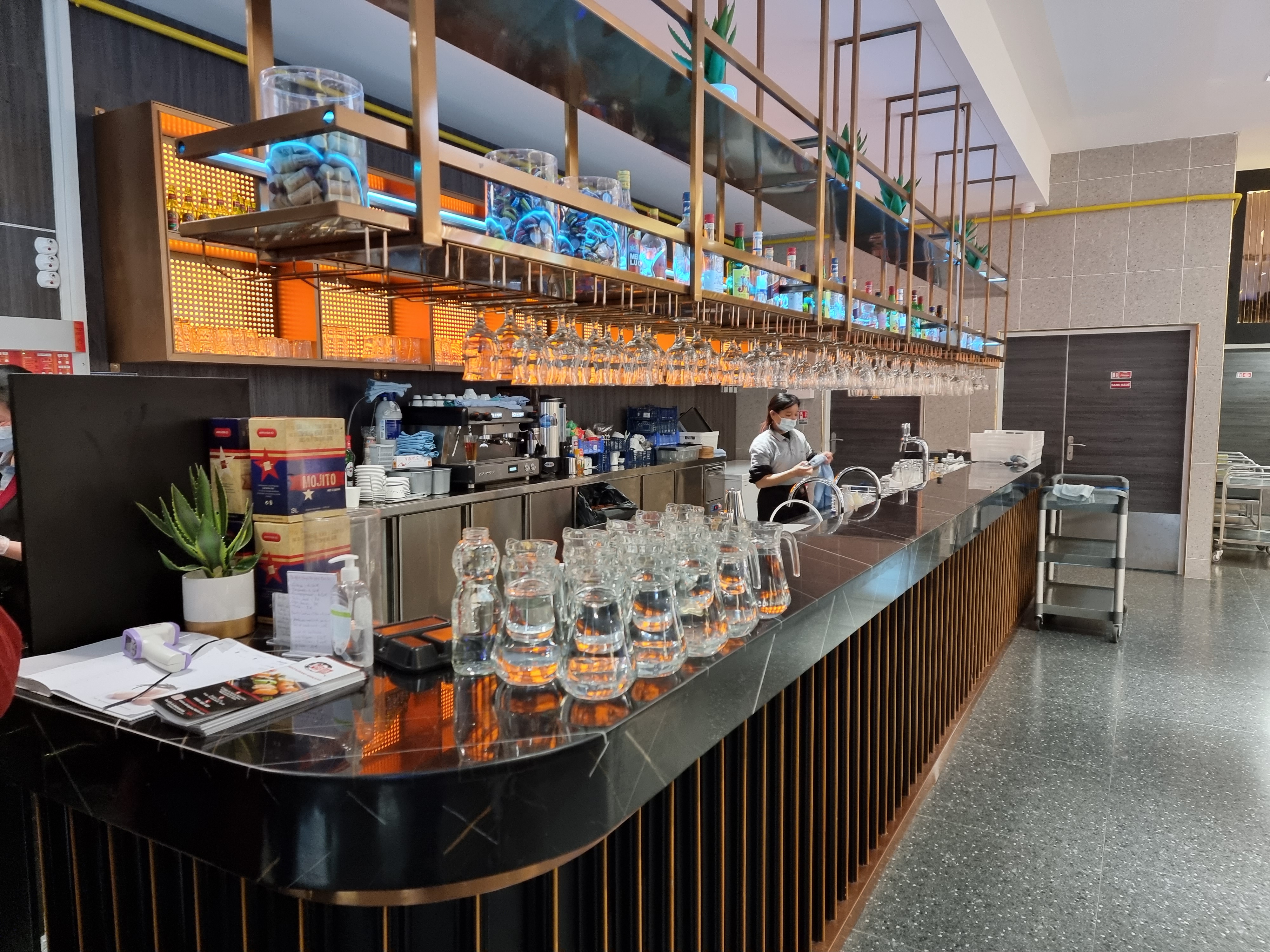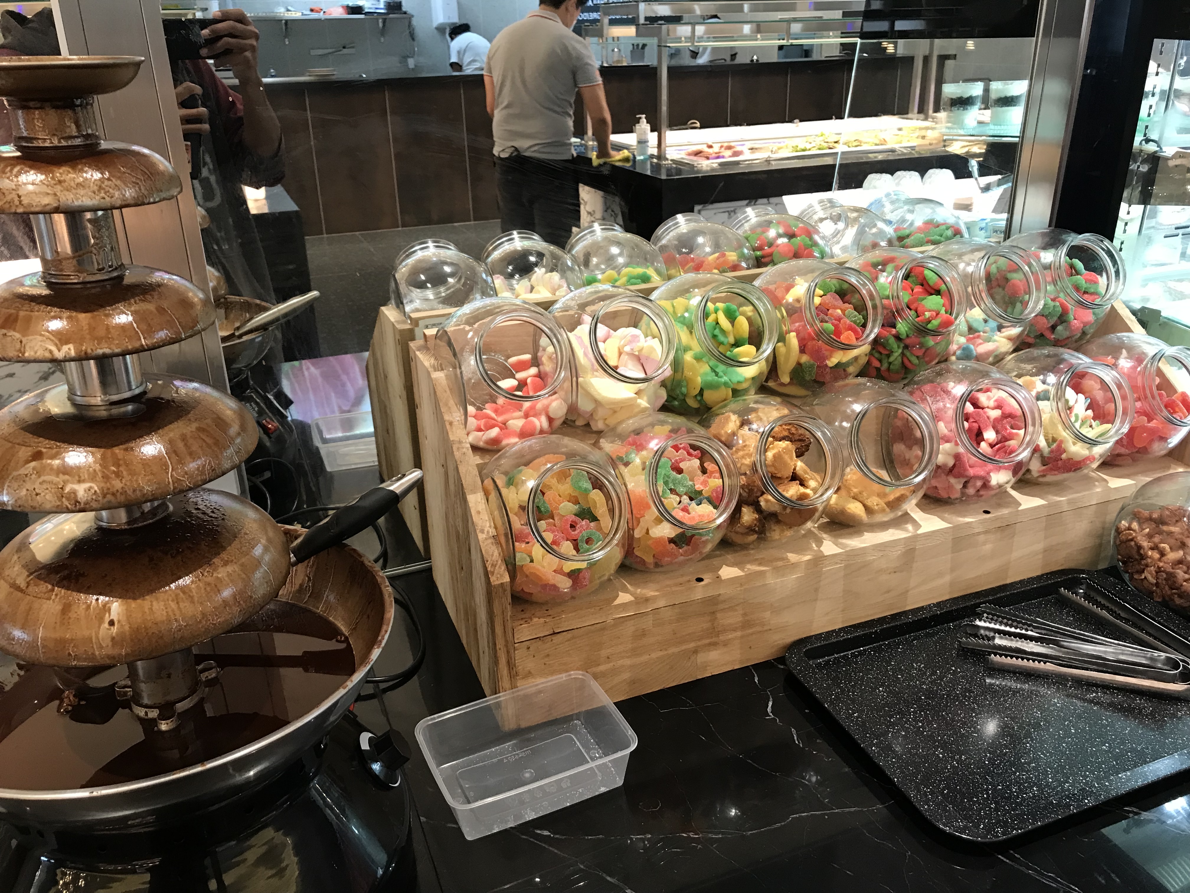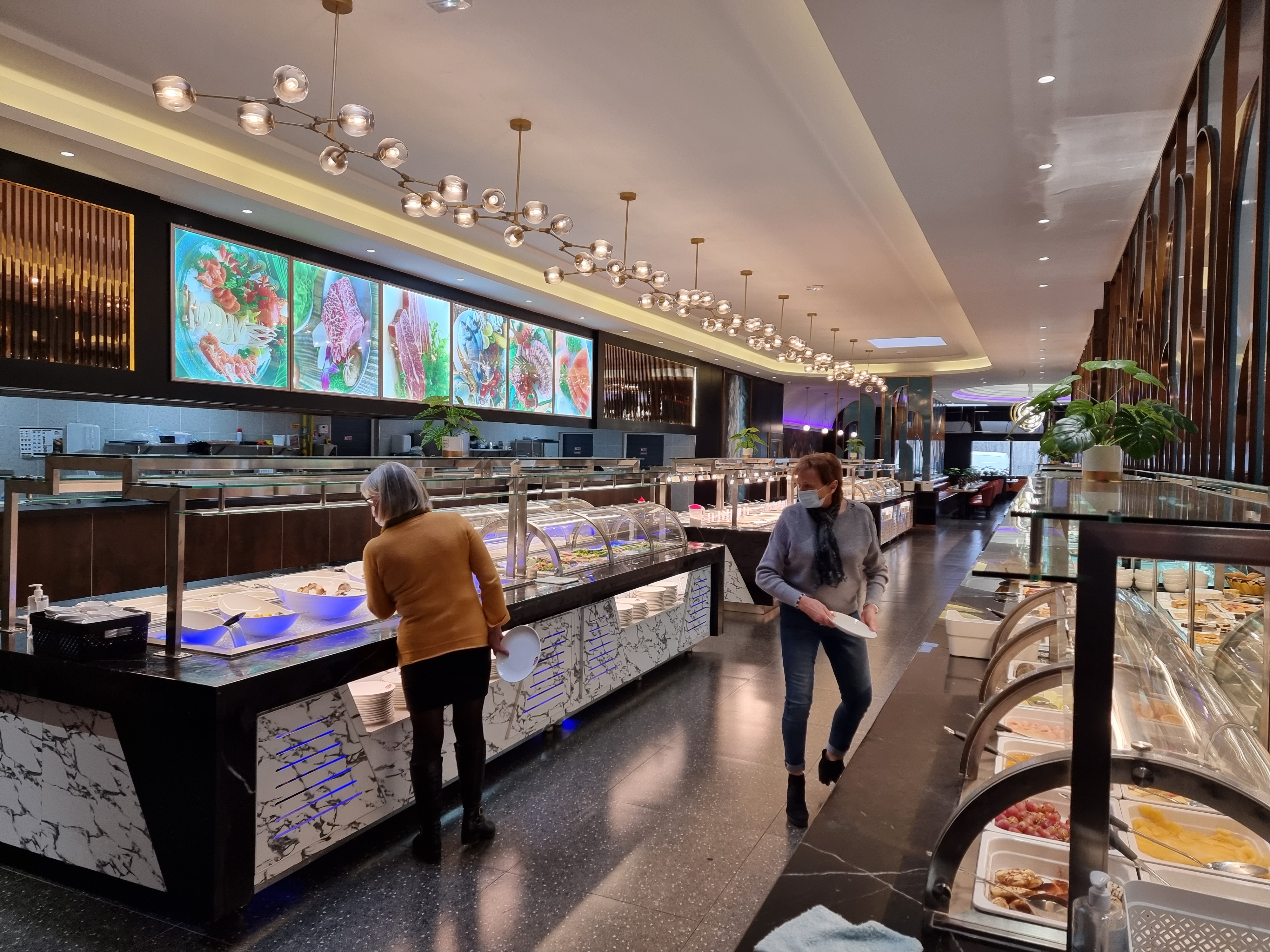 Lieu très sympa. Les contrôles a l'entrée sont très rassurants. La salle est très grande mais ce n'est pas bruyant. Les buffets sont bien pourvus. Il y a aussi le wok. Je recommande.