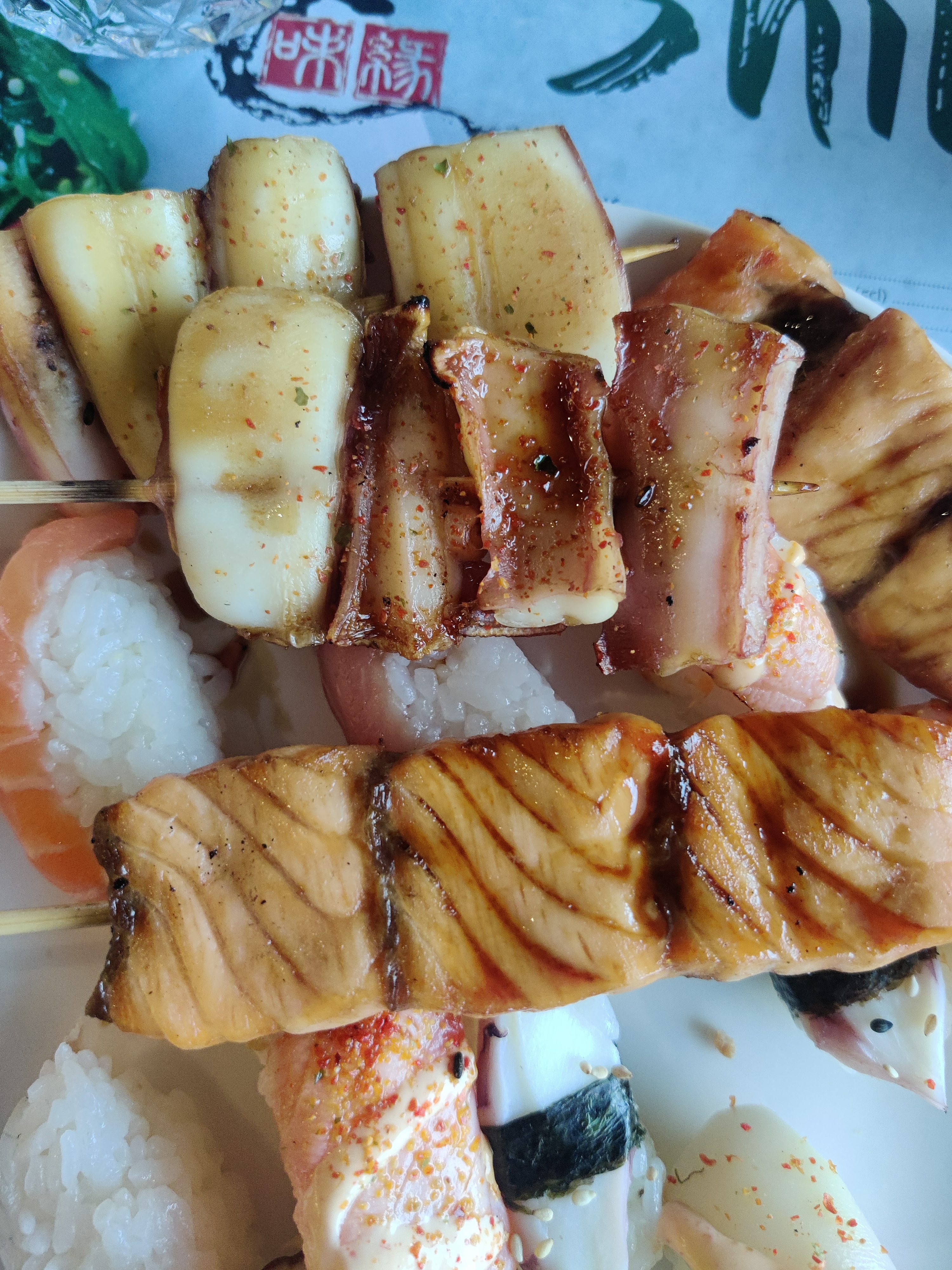 Buffet à volonté plutôt spécialisé japonais. Du choix en brochettes, maki, du wok avec du poulpe sauté, ce qui n est pas très courant pour ce genre de resto. Déco sympa, correcte dans l ensemble.