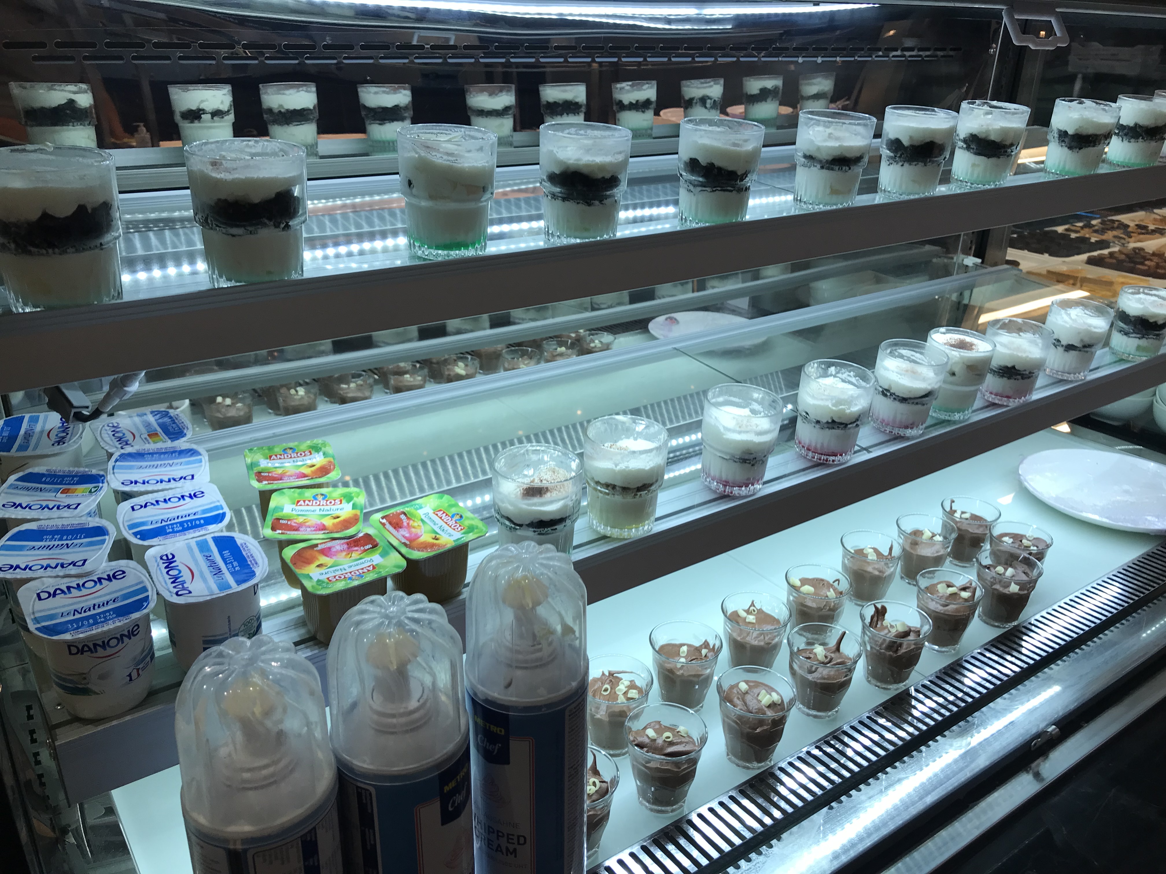 Très bien. Personnel sympathique et attentionné. Beaucoup de choix et très bon. Bonnes chaises. Mais je trouve la salle trop froide. Ça manque peut-être un peu d'indications ou d'étiquettes pour choisir et trouver. Je trouve bizarre que le fromage reste aussi longtemps sans être au frais.