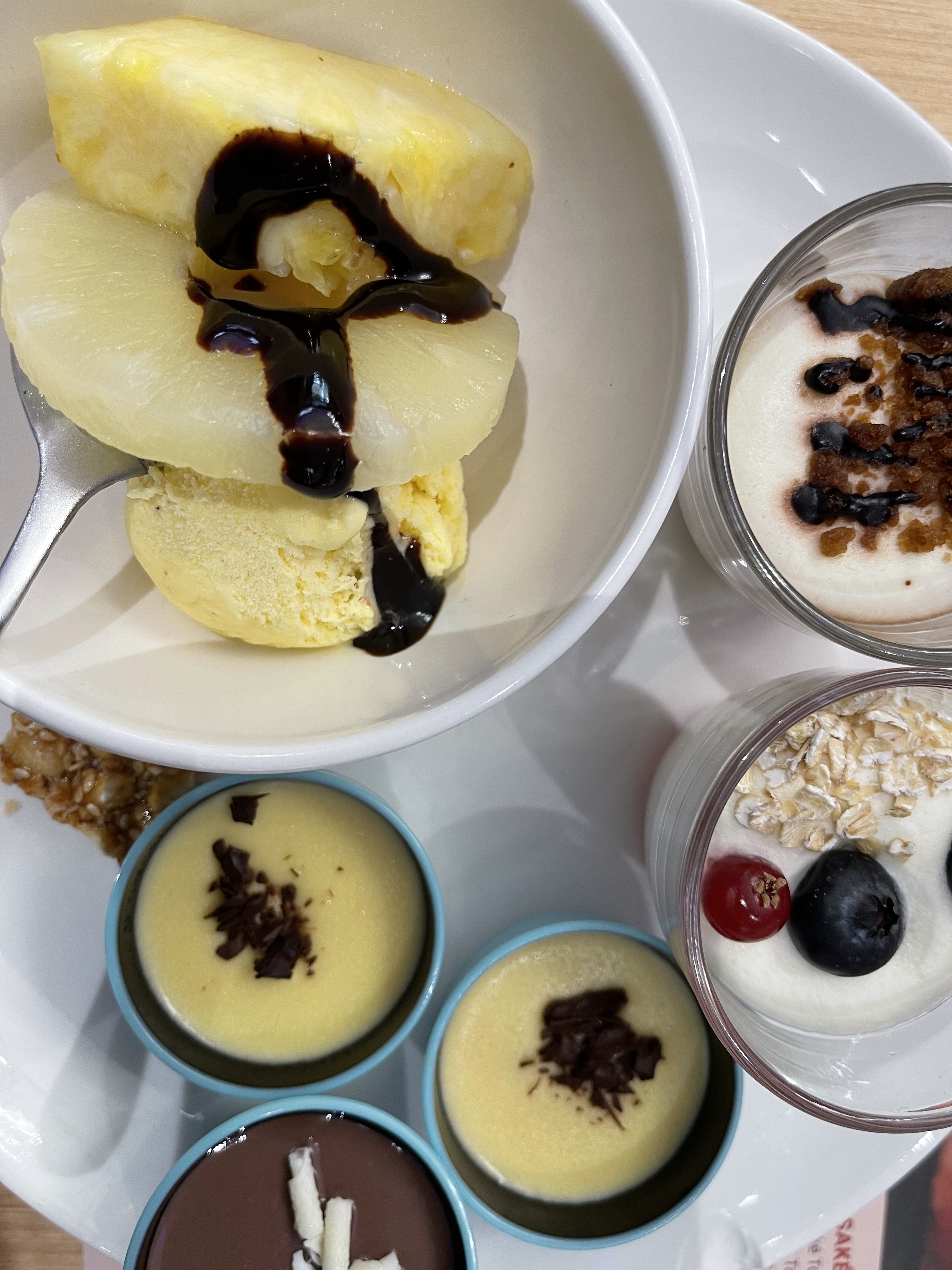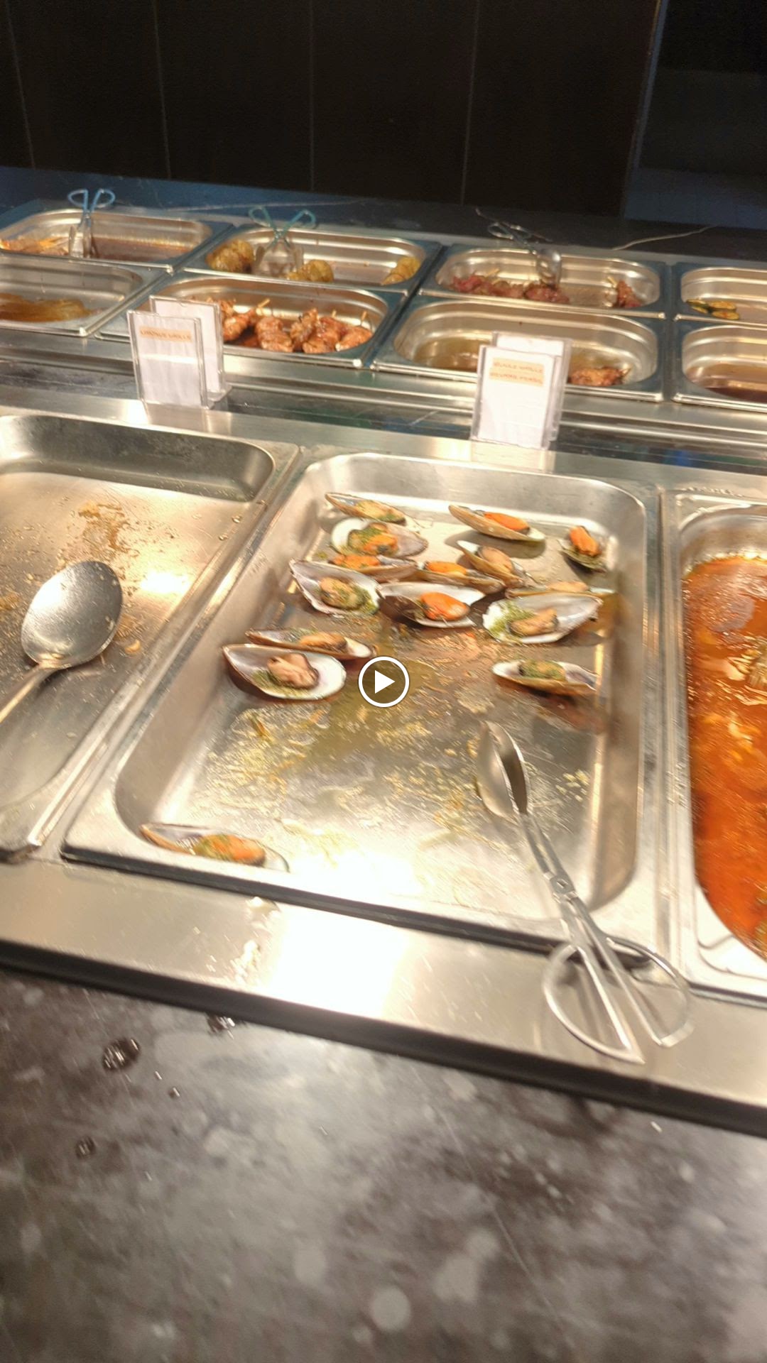 Point positif : large variété de fruits de mer/poissons. Points négatifs : nourriture très sèche, plats excessivement gras (ils sont reluisants !!!), pavé de saumon grillé quasi cru, fontaine à chocolat qui ressemble plutôt à une fontaine à huile aux couleurs du chocolat, et cerise sur le gâteau ; perles de coco moisies au goût de vomi. J'ai dû recracher immédiatement et me rincer la bouche plusieurs fois tant le goût était mauvais (voir photo). Un simple désolé ne suffira pas si je suis malade d'ici peu. Très décevant.