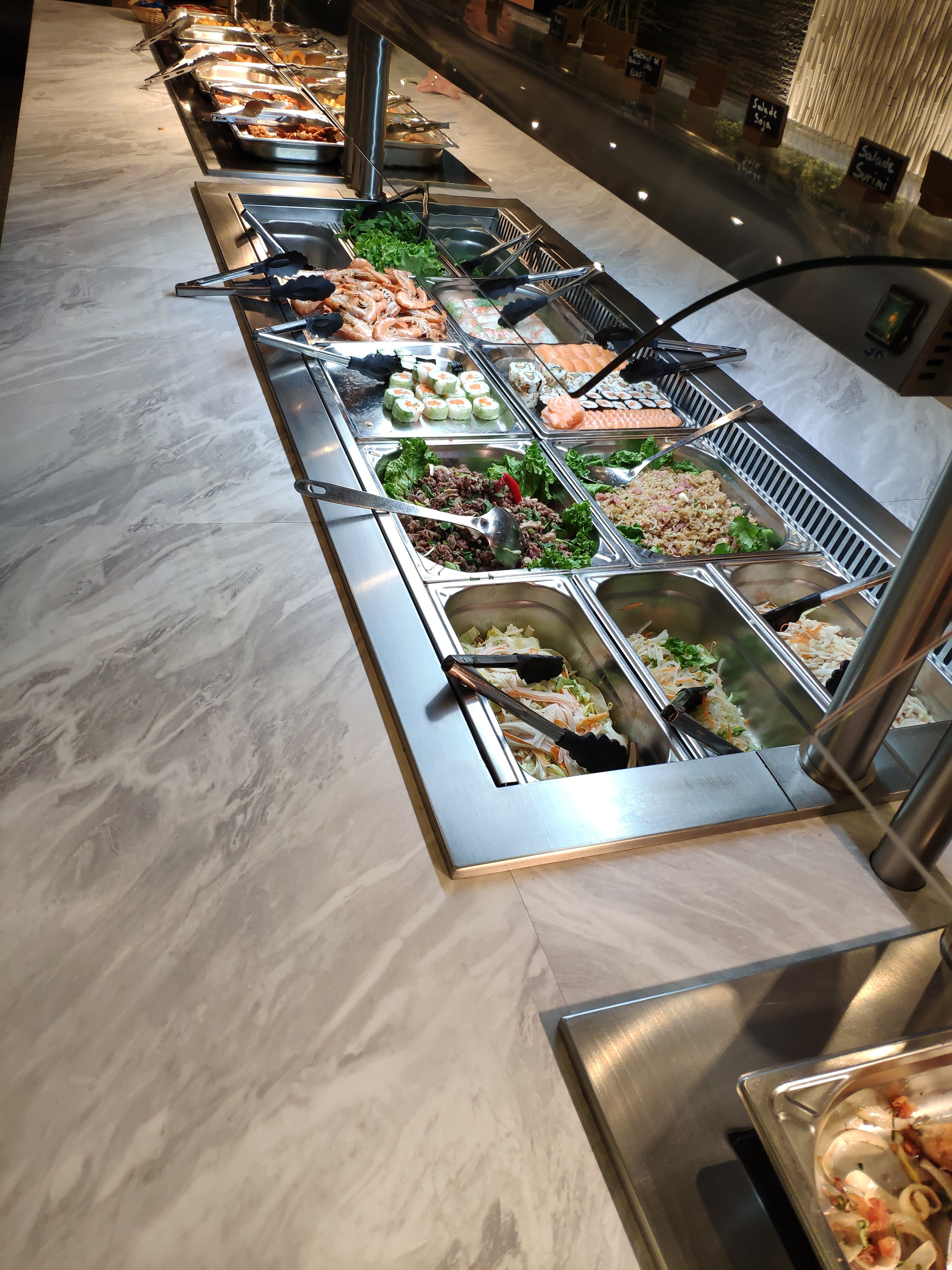 Un buffet de qualité, tant au niveau du service, que des produits. Le lieu est super joli. Les plats proposés sont semblables aux autres buffets mais le niveau qualitatif et gustatif n'est pas le même. C'est très bon et savoureux. Une mention spéciale pour le Chef du Wok qui vous prépare chaque plat comme une œuvre d'art, avec amour. Une super adresse!