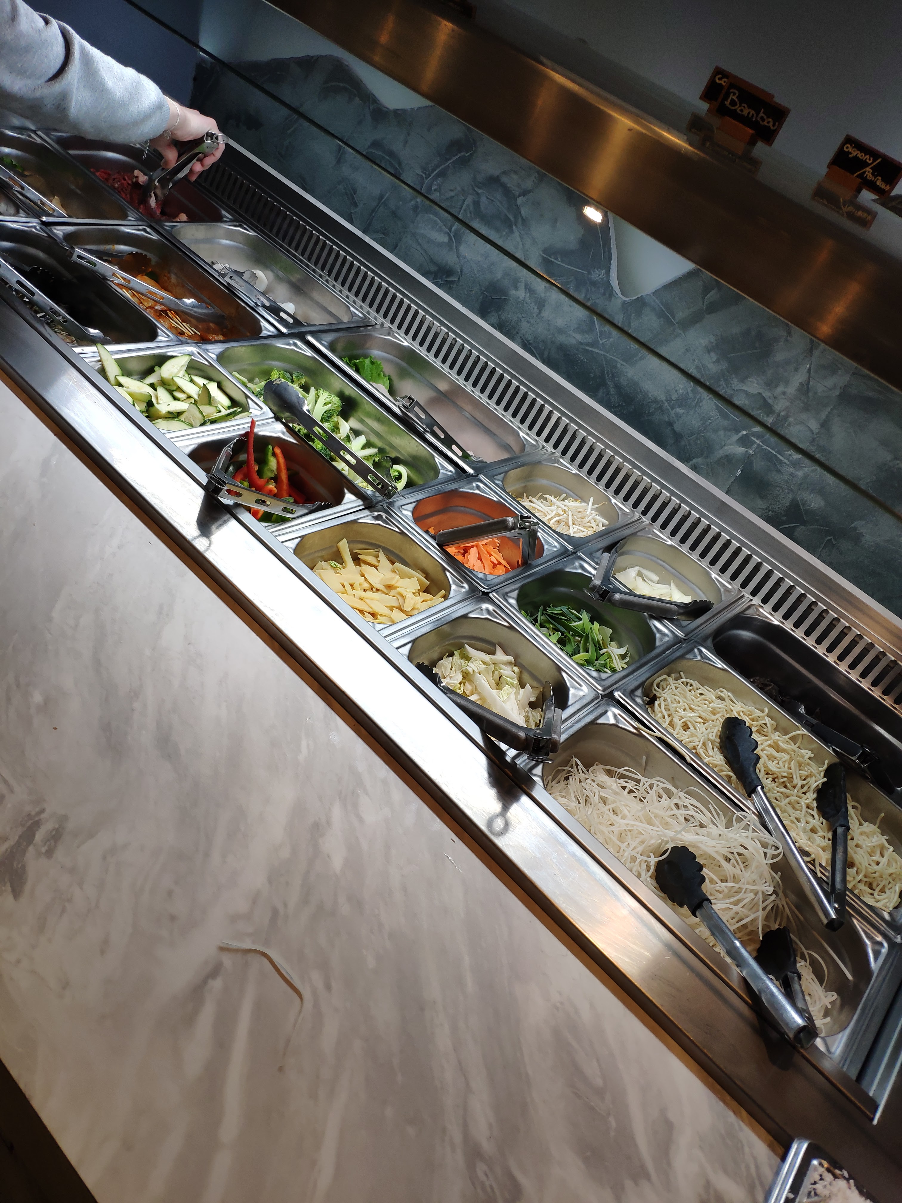 Belle découverte, et réconciliée avec les buffets car vraiment délicieux, non gras, grand choix sans oublier le point fort du choix varié pour la composition de votre wok et leur soupe sublime beau voyage gustatif.!!!! Le personnel est souriant, attentif et bienveillant...que dire de + sinon Bravo et Merci. N'hésitez pas!!!!