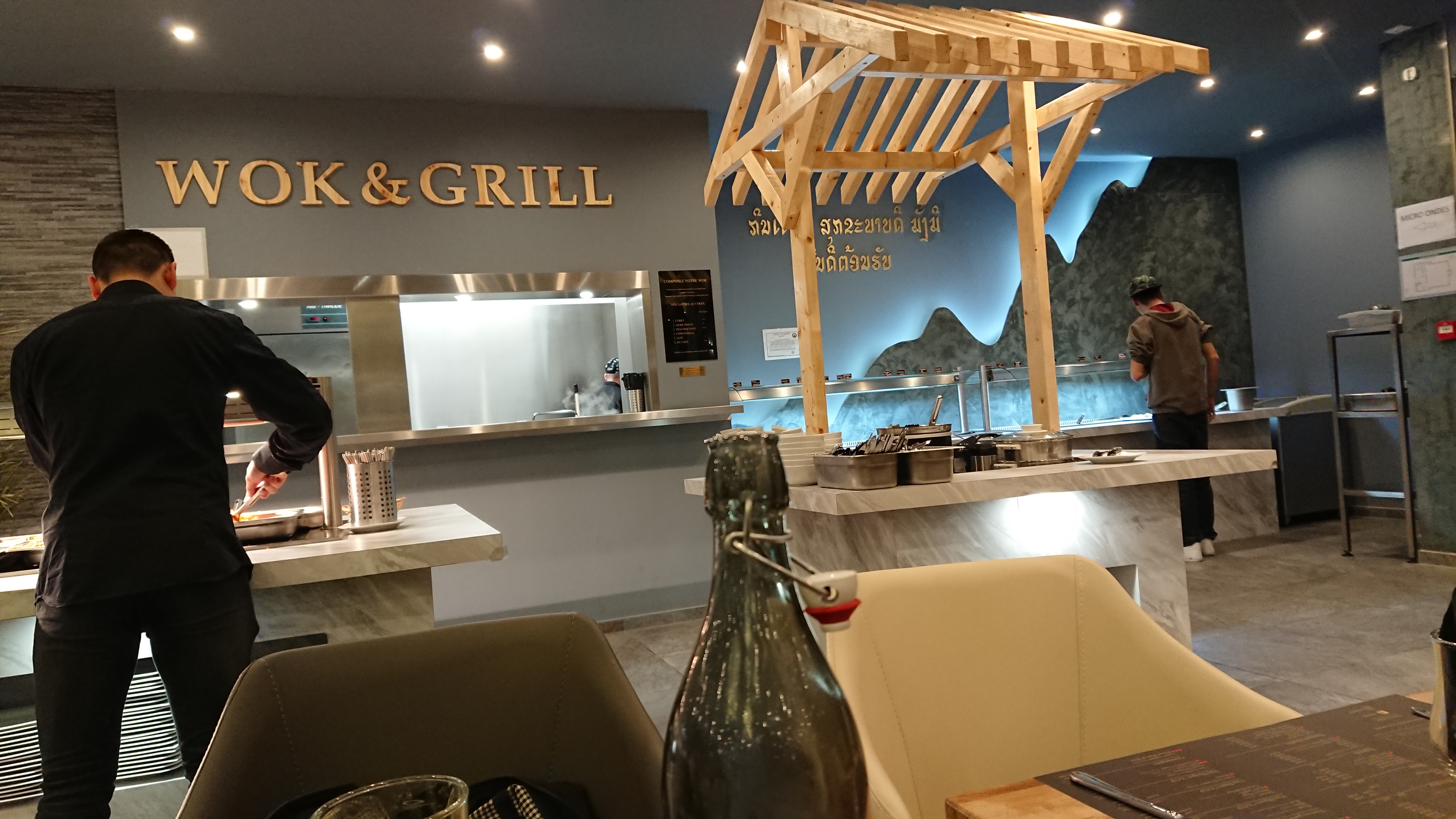 Restaurants sympathique par ca décoration nous avons passé un bon moment avec ma fille et mon mari Les cuisiniers qui sont au wok nous font de belles assiettes et c'est délicieux je vous conseille d essayer et même leur soupe