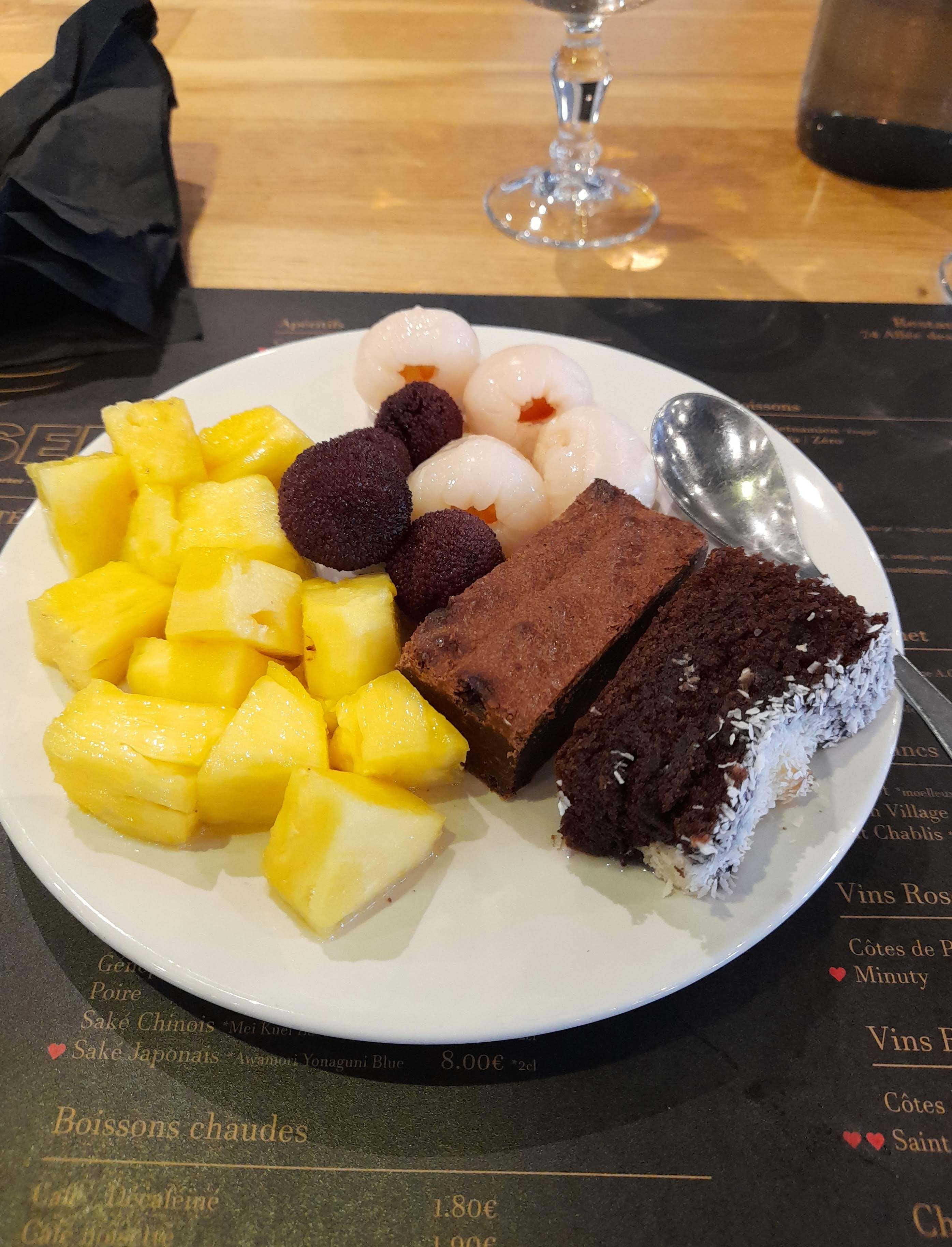 Jai très bien manger, le pho super bon et très léger pour le fin de repas (j’ai manger 3 grosse assiette💀) le dessert de bon fruit frais. Rien à redire 🤭