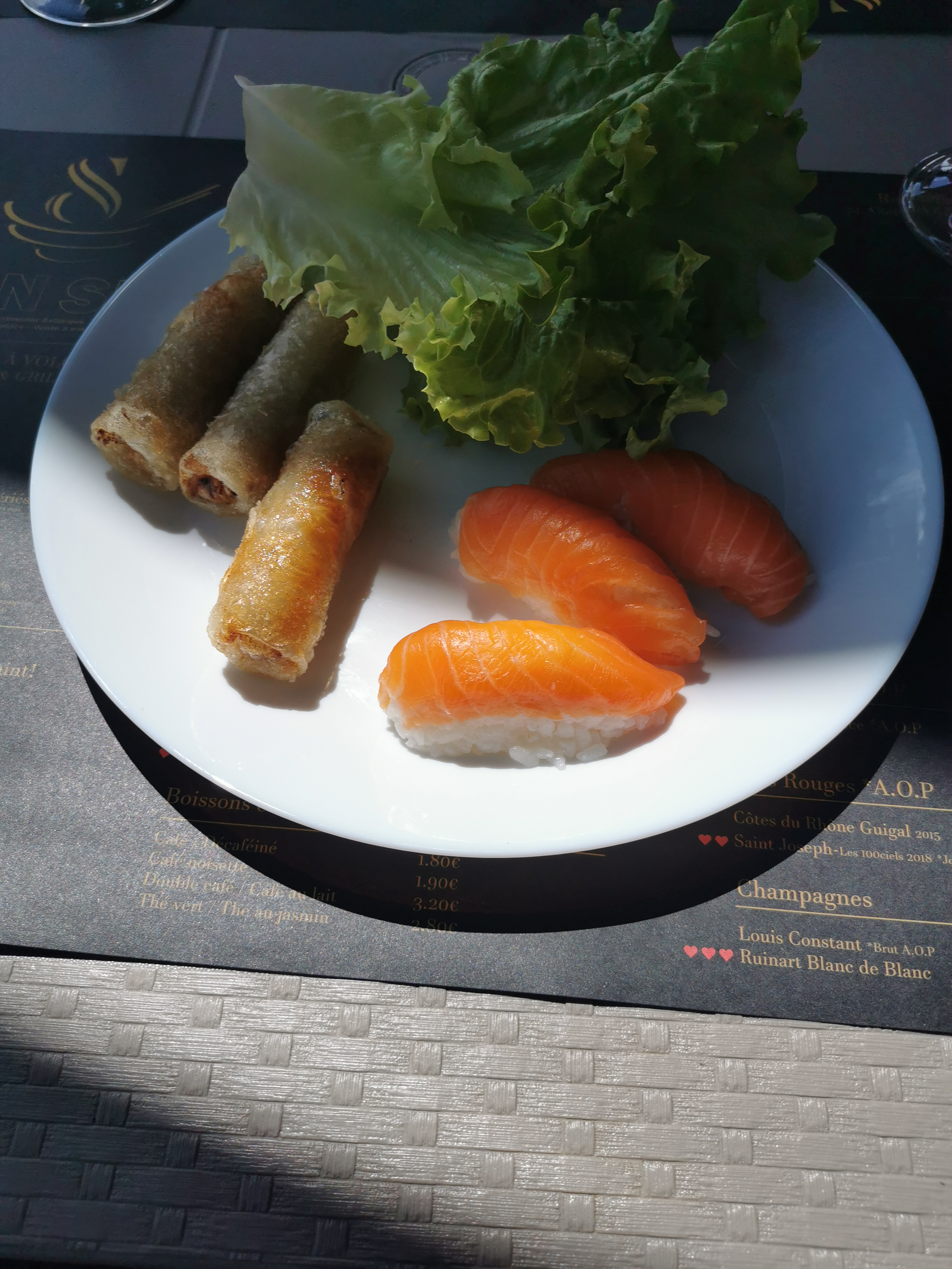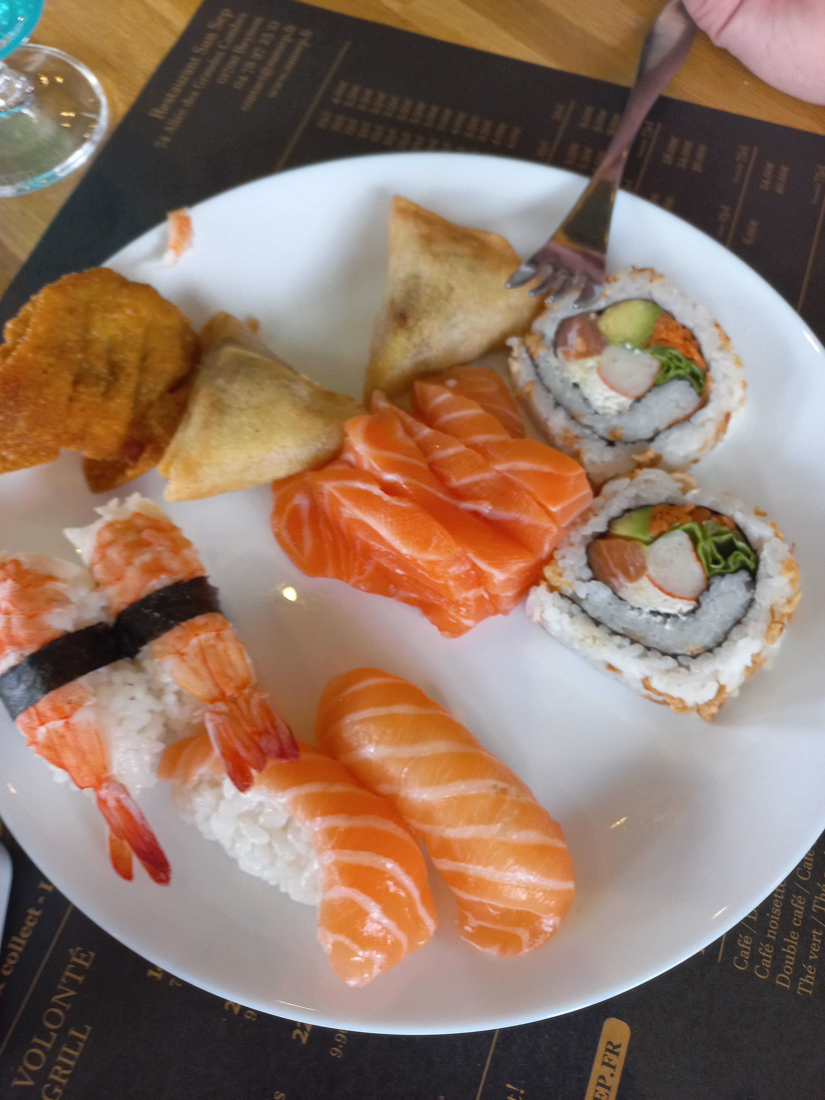 Un serveur trop rapide a peine fini l assiette elle déjà enlève pas le temps de la mettre a disposition au bord de la table ,les sushis un peu sec les nems et autre produit frit beaucoup trop gras .