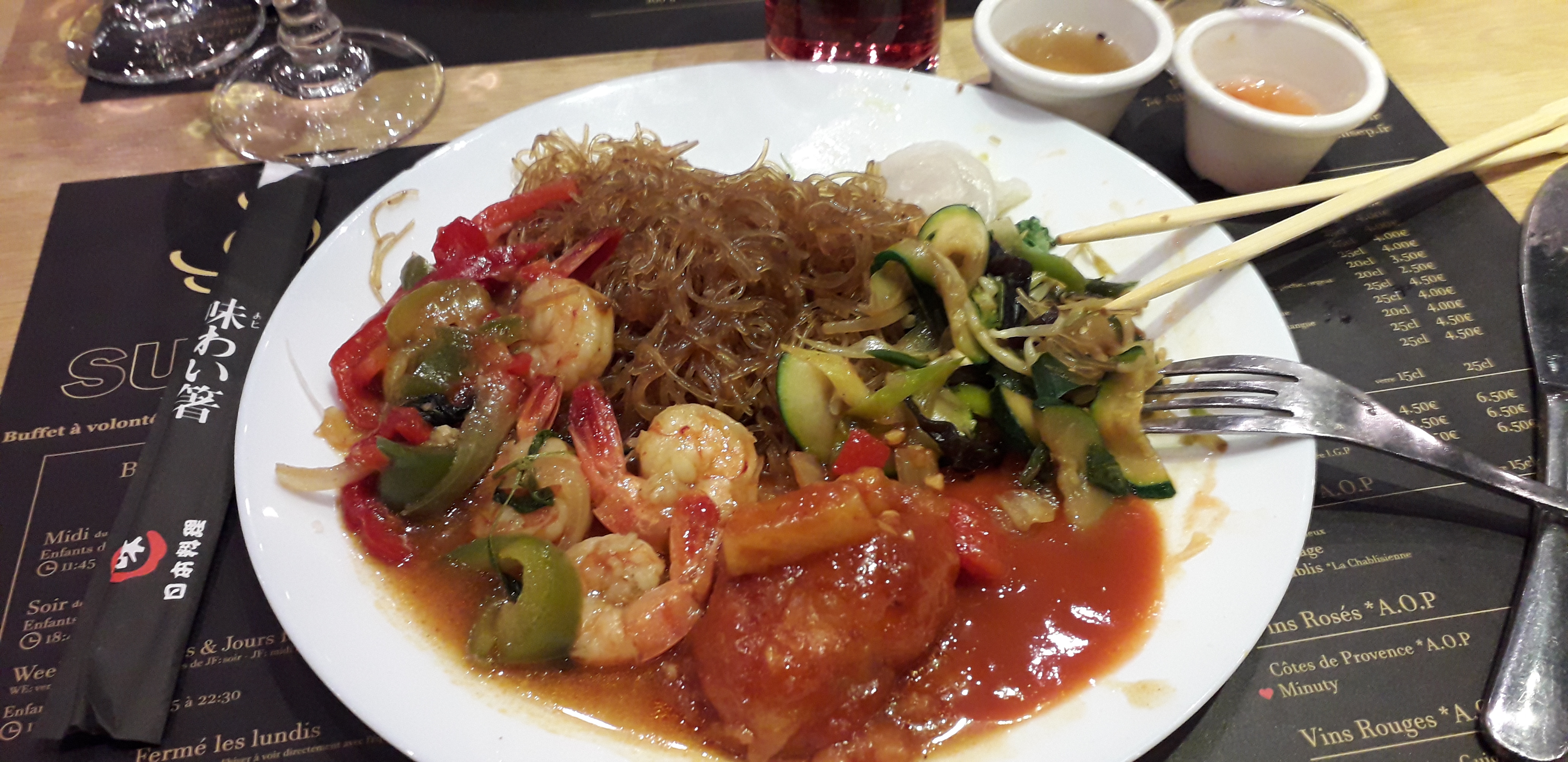 On y est enfin allé !a 2 pas de chez nous.serveurs et accueil très agréables. Du sourire, c'est plaisant. Côté repas, très bien et très bon..large choix d'entrées, plats et desserts..on est même pas allé jusqu'au wok. Grande salle ouverte et un peu bruyante mais familiale et chaleureuse, pas fait pour un repas romantique. Le seul bémol pour moi serait plus de gambas et poissons mais y'en a pour tout les goûts et vermicelles de riz, excellents !!!Rien à dire sur le prix, 19,90 à volonté. Très bonne adresse pour ma part. A très vite.