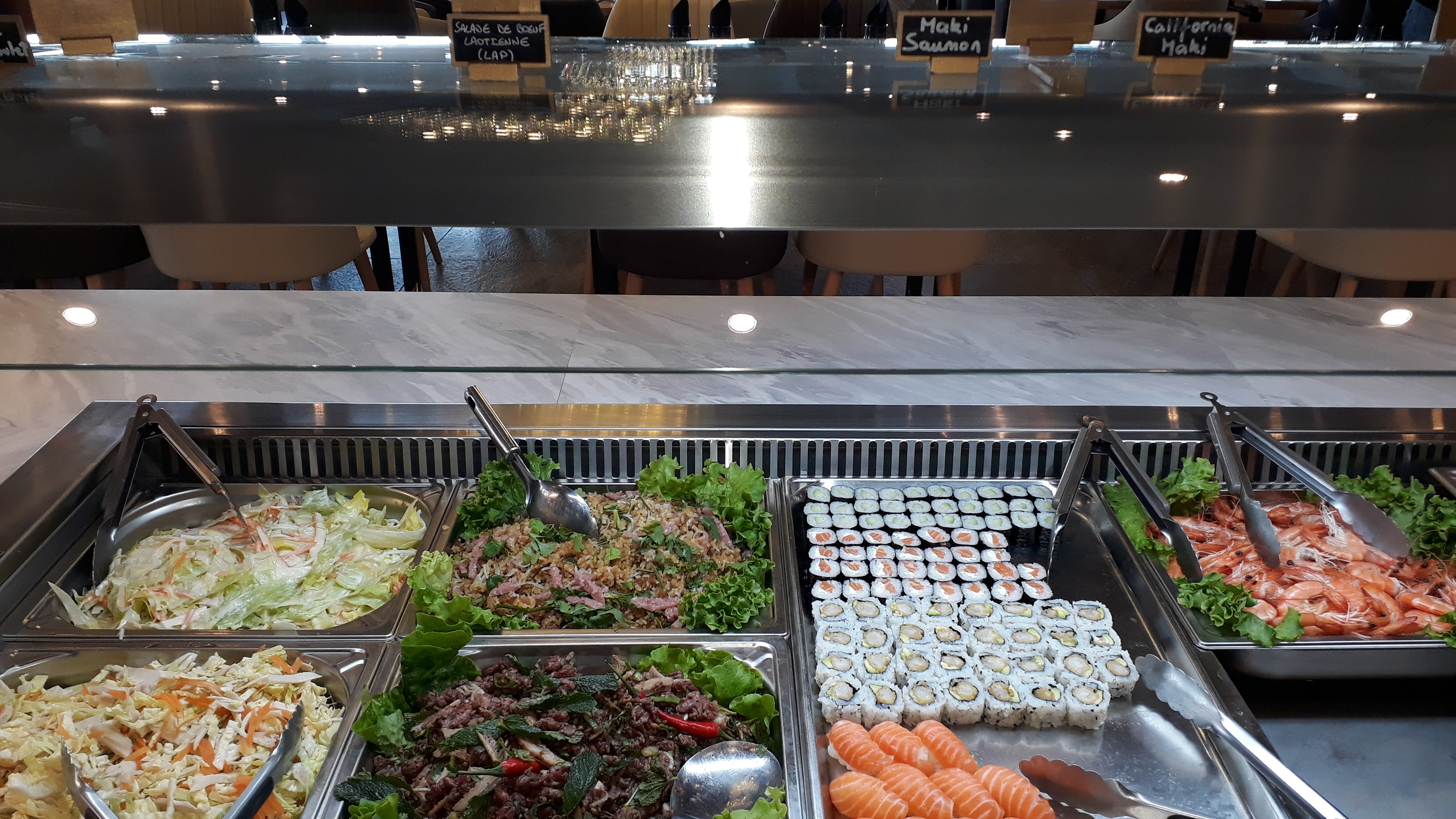 Une merveilleuse découverte avec ce restaurant qui propose un buffet à volonté. Il y en a pour tous les gouts, les sushis sont frais et les déserts délicieux, il y a toujours de la nouveauté je trouve. Le respect des règles sanitaires est appliqué et le personnel accueillant. J'aime beaucoup la décoration, possibilité de se mettre en terrasse. J'adore y aller. Je recommande.