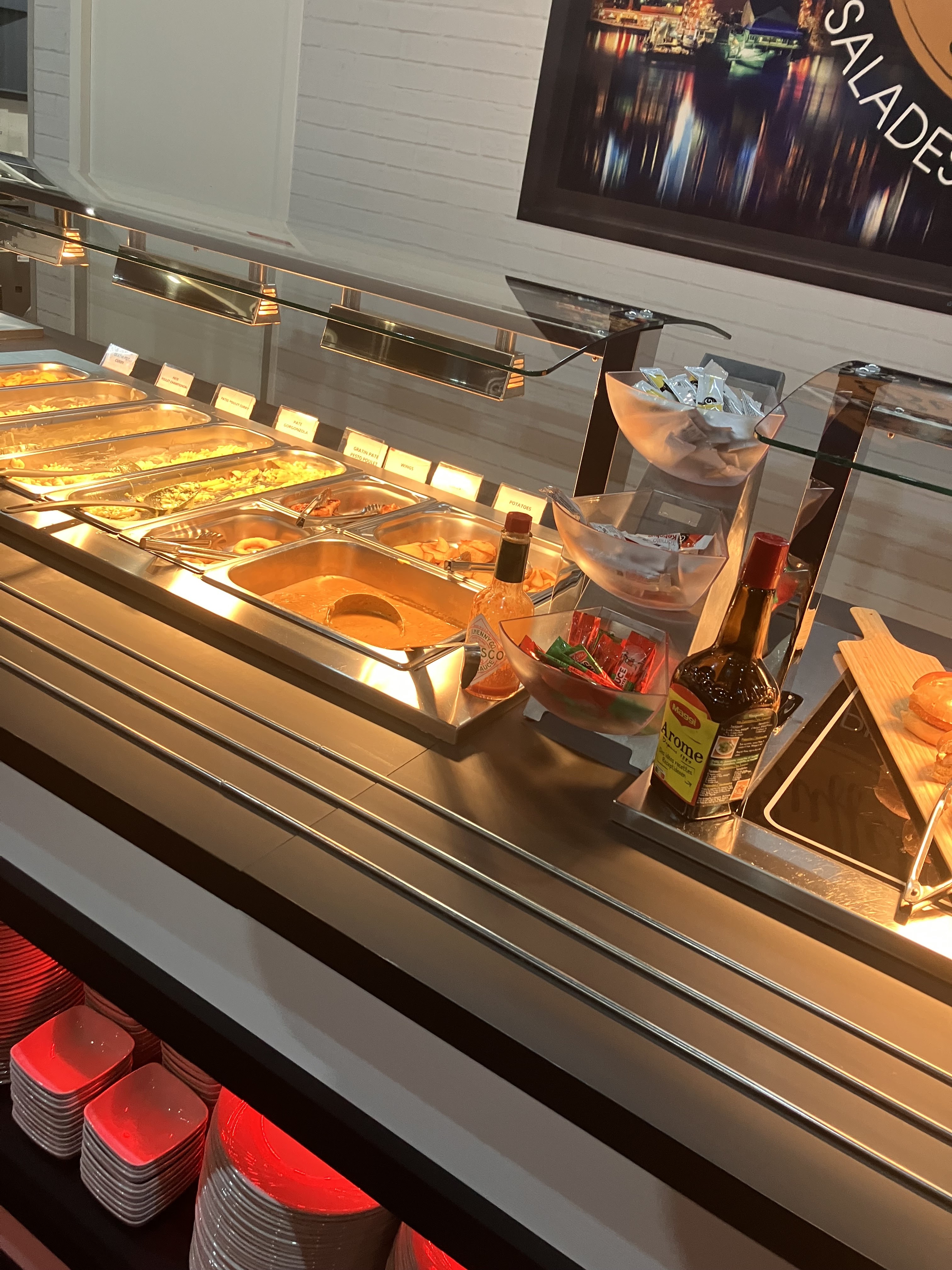 Enfin un bon buffet avec des produits fait maison. Personnel très aimable, on s’y s’en bien. Je recommande