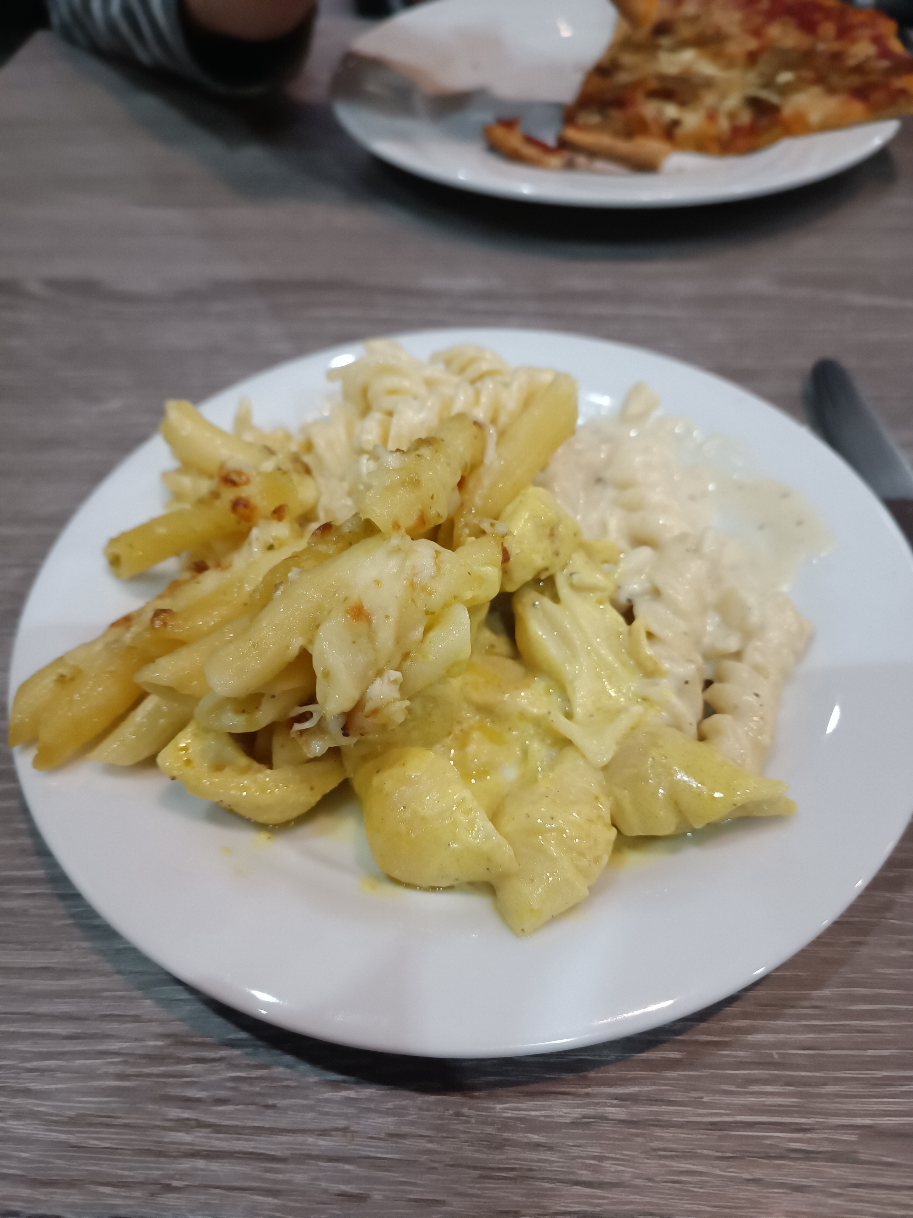 Ce restaurant est sympa en famille ou entre amis. Les pizzas sont bonnes, surtout celles à base de crème. Les pâtes restent des pâtes, la sauce devrait être plus onctueuse, trop d'eau à mon goût et les salades pas de vinaigrette maison ou autre que celle individuelle en sachet qui n'est pas top. Mais attention ça reste sympa.