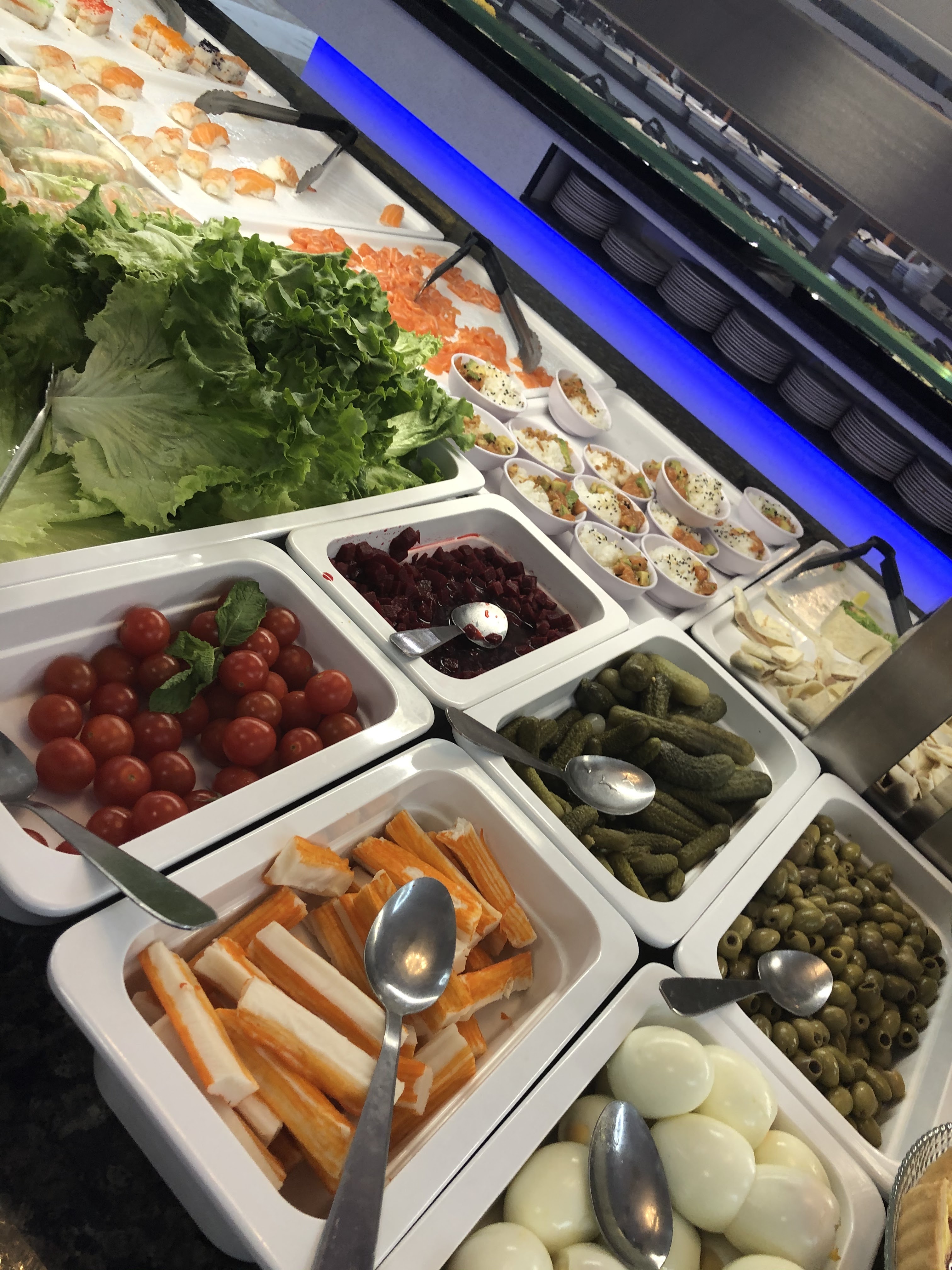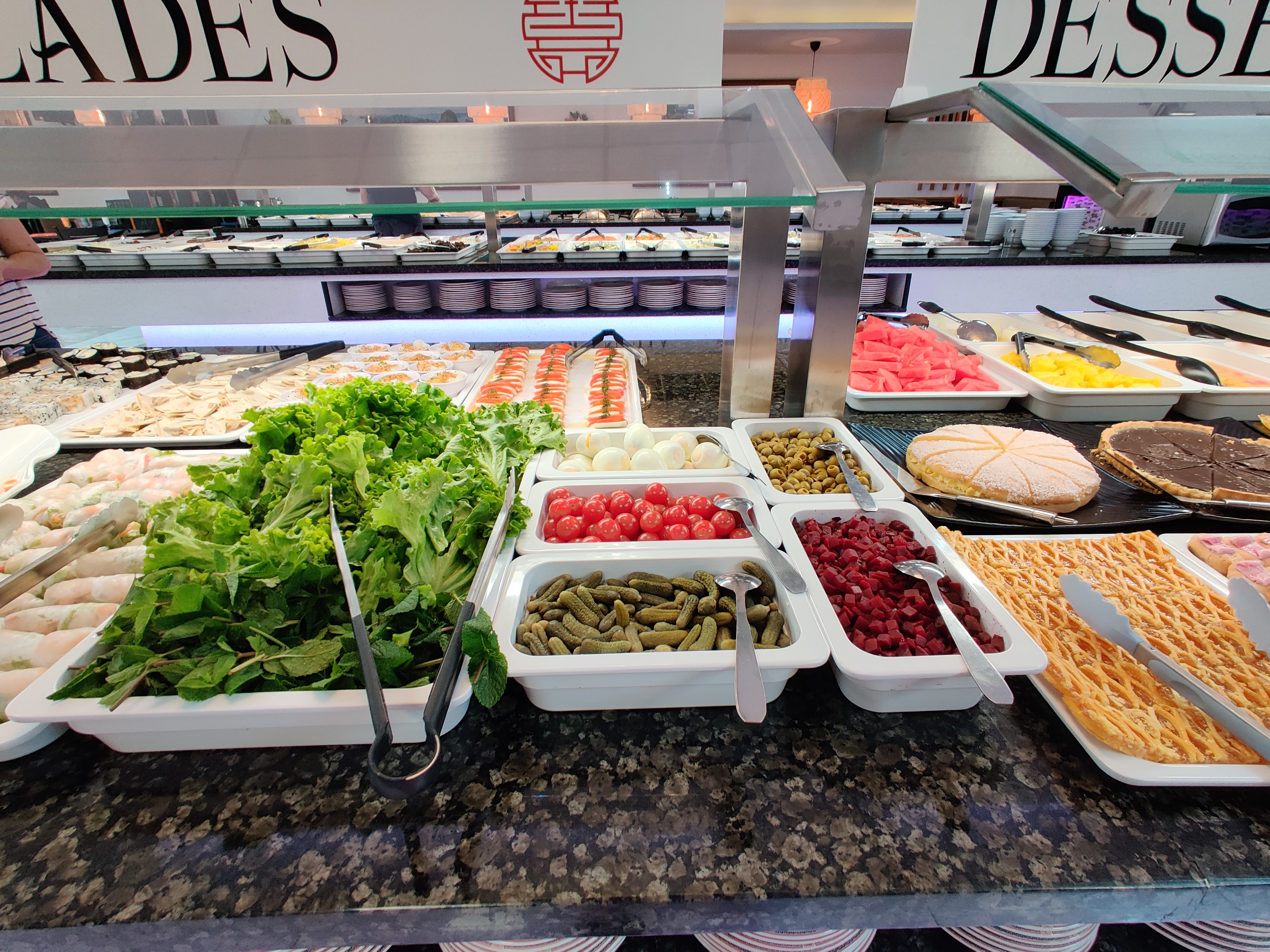Large choix de plats, bon pour ceux goûtés, par contre bazar dans le positionnement des buffets, plats d'un côté, sauces qui vont avec à l'opposé, entre autres et je n'ai jamais pu trouver les petites cuillères. Bon, y sommes retournés et cette fois les petites cuillères ont refaient surface et je confirme large choix et bonne qualité.