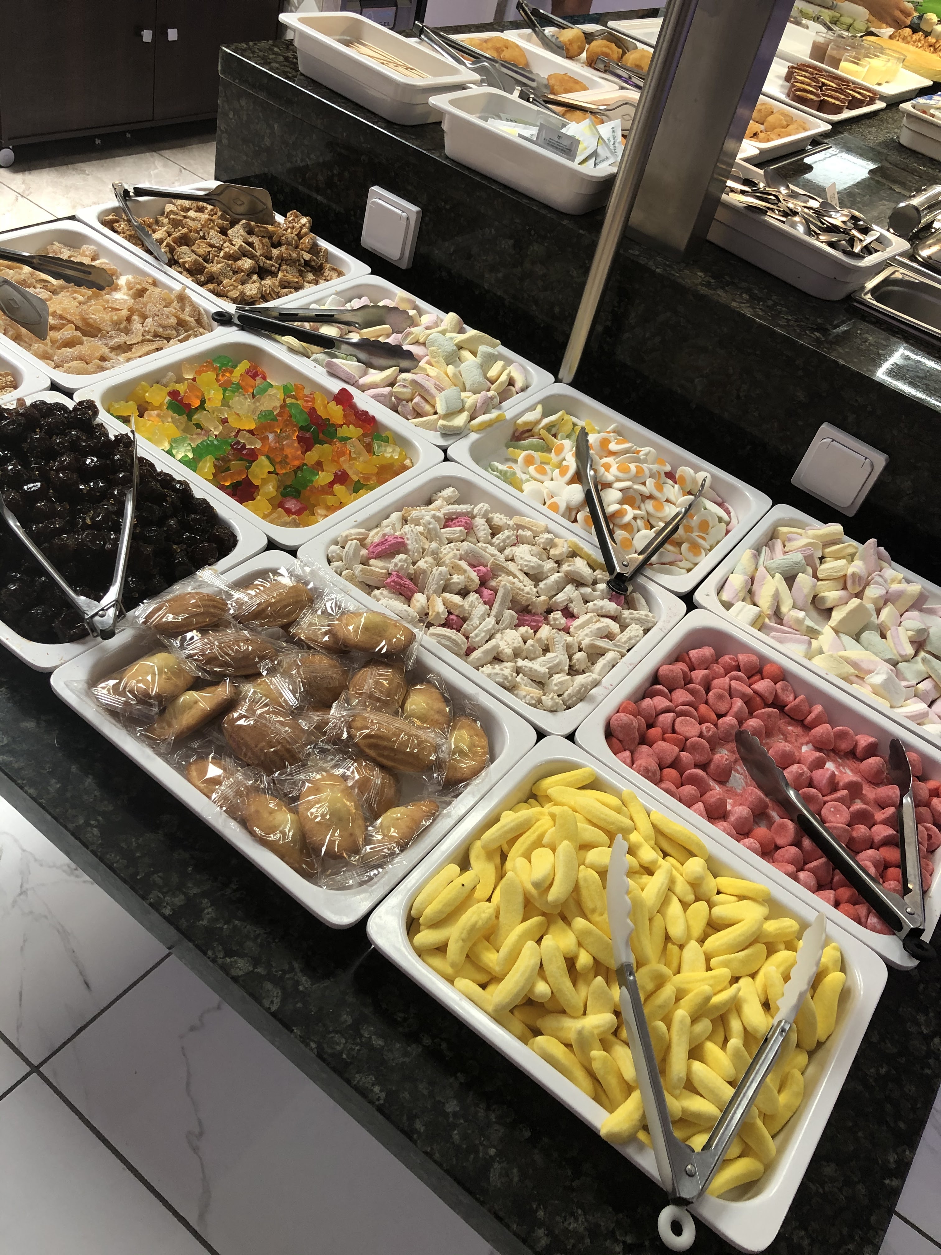 Les assiettes et couverts sont pas tous propres pour ne pas dire sale. Prendre une assiette et avoir de la mayonnaise plein les mains, c'est pas vraiment ce qu'on recherche. Le buffet est garni, bien que le remplissage ne soit pas toujours la. La qualité de la nourriture n'est pas super, certains plats chauds sont froids. Il manque énormément d'étiquetage sur les produits, on sait pas ce que c'est sur plus de la moitié des produits. Les desserts.. prenez les macarons, y'a que ça qui est comestible. Le service est correct, serveurs et serveuses sympathiques.
