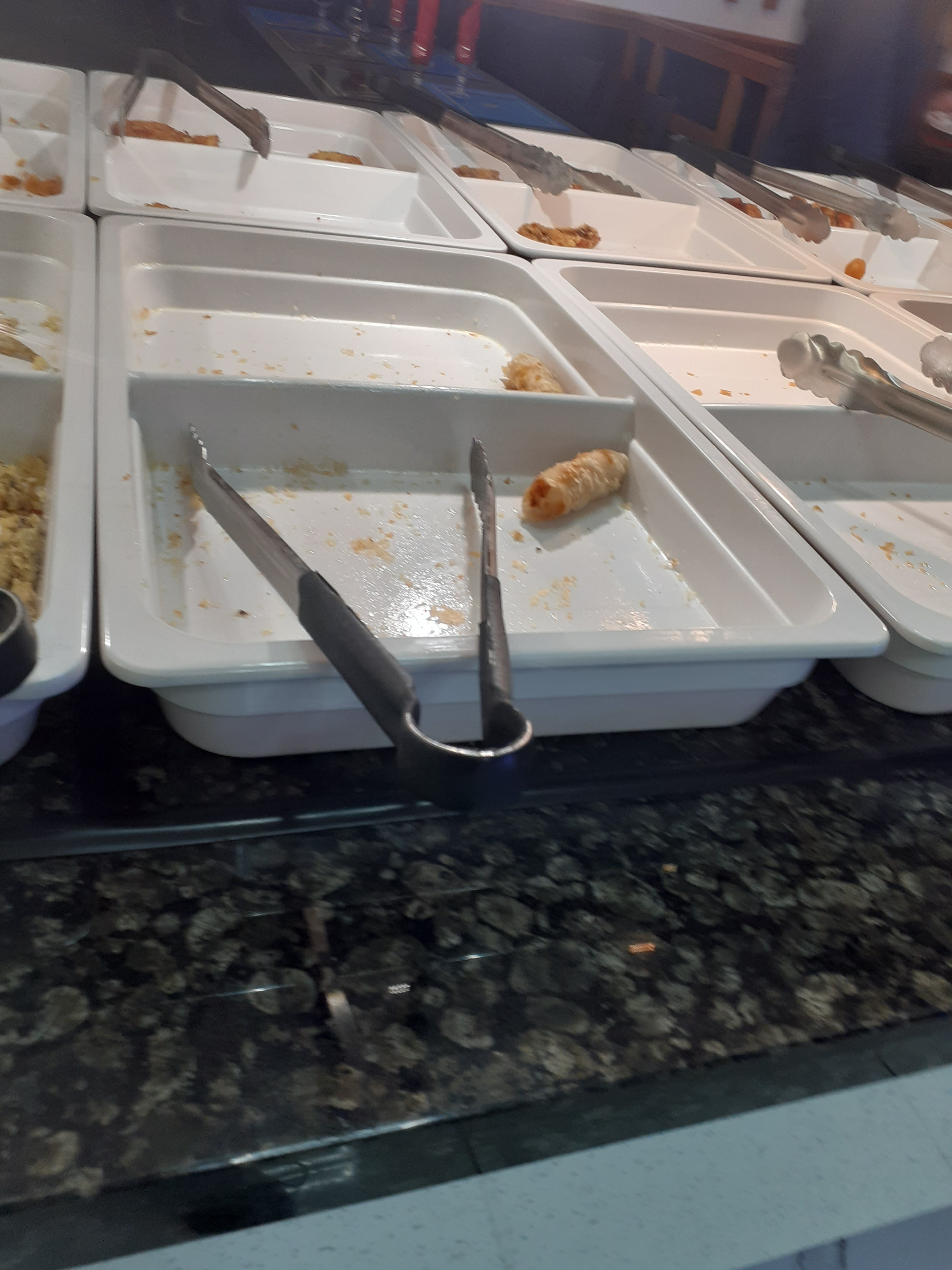 On va commencer par l’hygiène déplorable ! - personnel pas accueillants - nourriture VRAIMENT MAIS VRAIMENT PAS FRAICHE - pas de choix de nourriture a 21:30 (normalement heure de plein rush) - le si peut de choix disponible était FROID (ce qui devrais dans plateaux de maintien de chaleur) - NIVEAUX RESPECT ONT EST VRAIMENT LOIN, ILS PARLE ENTRE EUX DANS LEUR LANGUE - Bien évidemment je n’ai pas échappé à l’intoxication alimentaire - J’ai retrouvé des assiettes et des coupelles SALE C’EST BIEN PARCE QUE JE SUIS OBLIGÉ DE METTRE 1 PU** DETOILE QUE J’EN EST MIS UNE SINON SA AURAIS ÉTÉ UNE BULLE UN GROS ZERO JE NE RECOMMANDE PAS DUTOUT JAURAIS DU REGARDER LES COMMENTAIRE AVANT DY ALLEZ SOYEZ PRUDENT