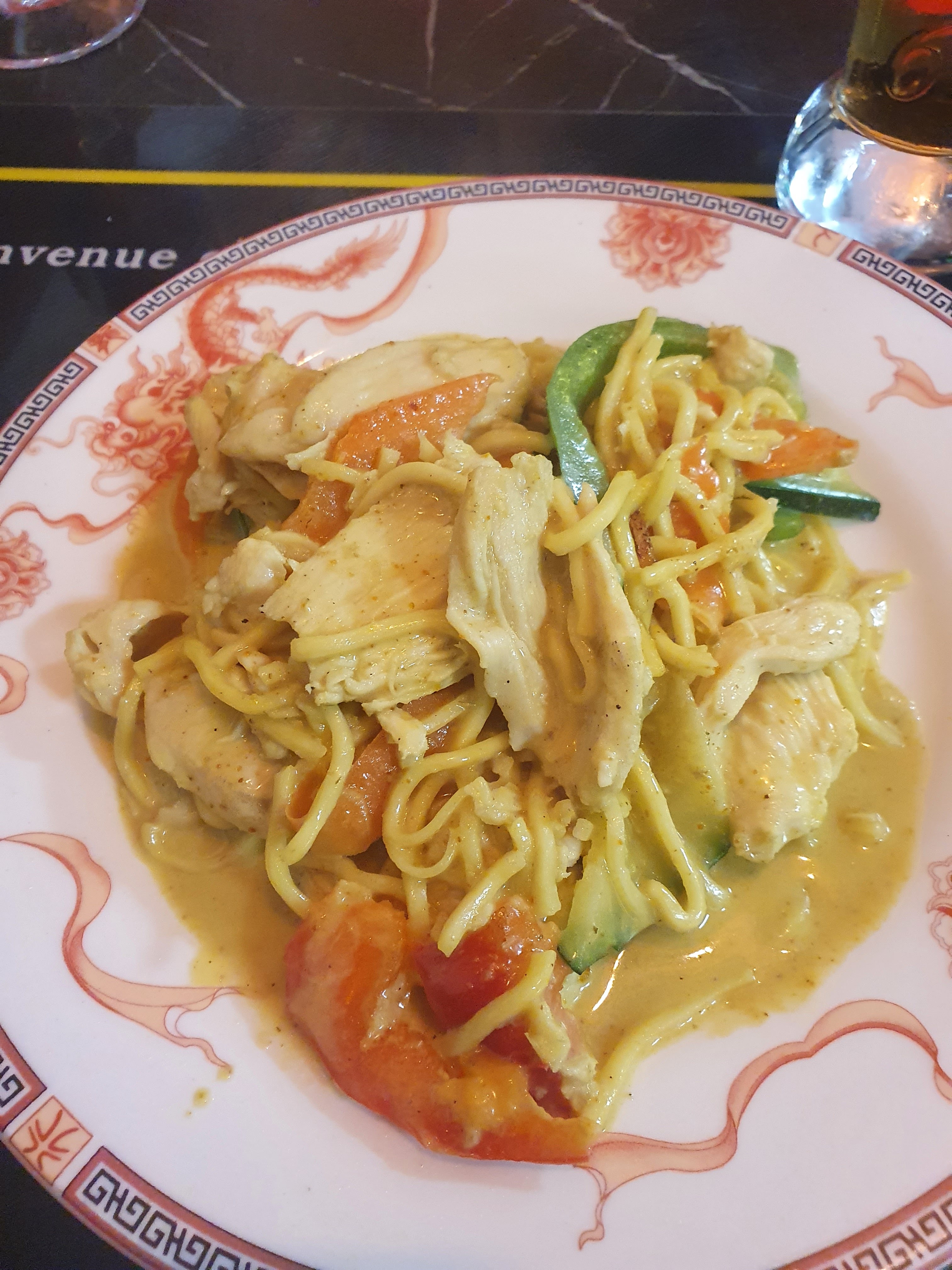J'ai pris à emporter. Un poulet au curry que du gras pas de viande ou très peut et sauce très très grâce ça baignait dans l'huile. On a aussi prix un wok à 9€ ce qui est très chère vu les quantité la viande était beaucoup trop cuite. Je met une étoile car le riz cantonnais était bon. C'était ma première visite et se sera la dernière pour 30€ je préfère encore aller au McDonald's en face.