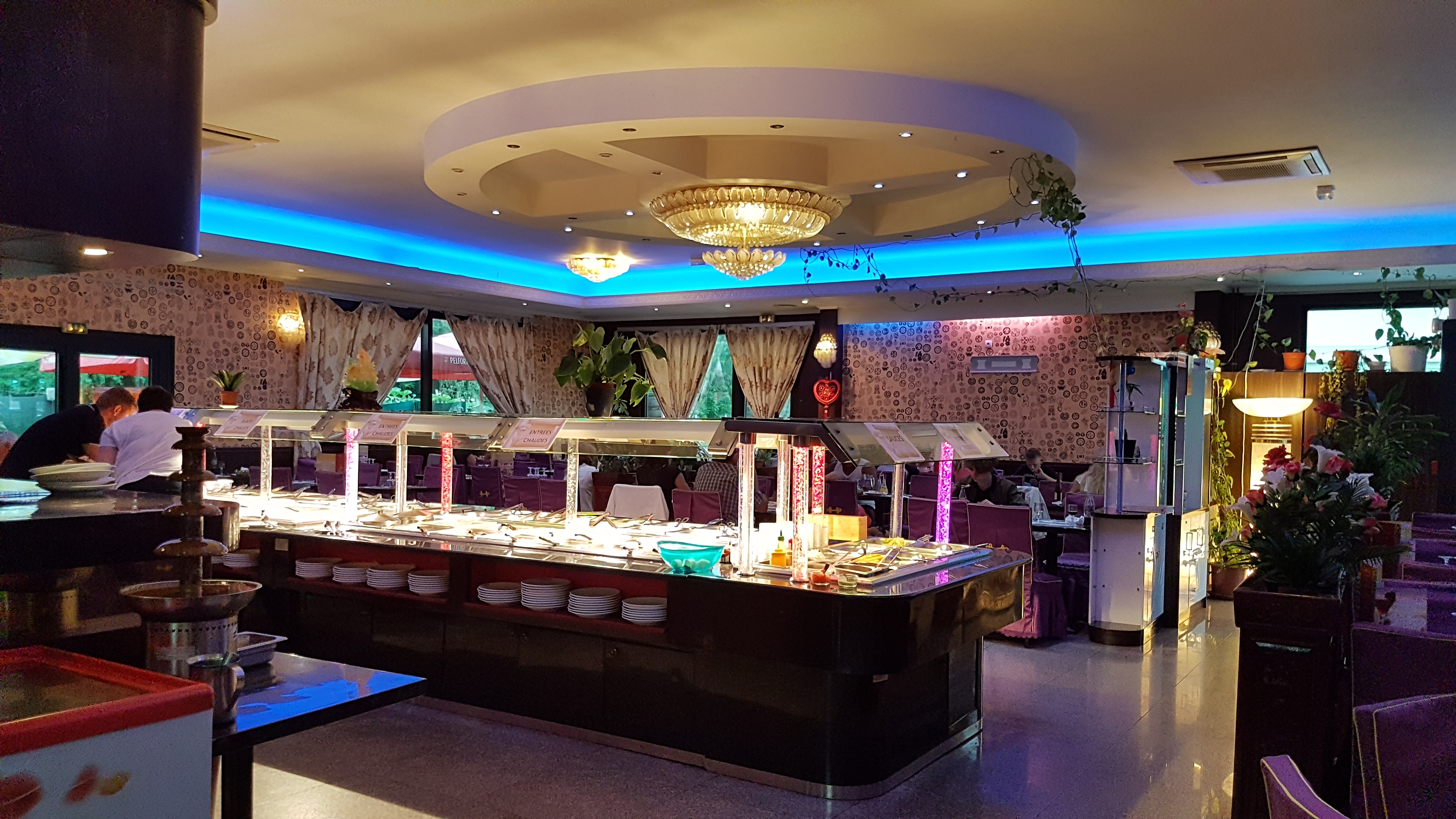 Restaurant asiatique type buffet à volonté classique. Nourriture typique du buffet à volonté, peu de saveurs mais buffet toujours garnis.