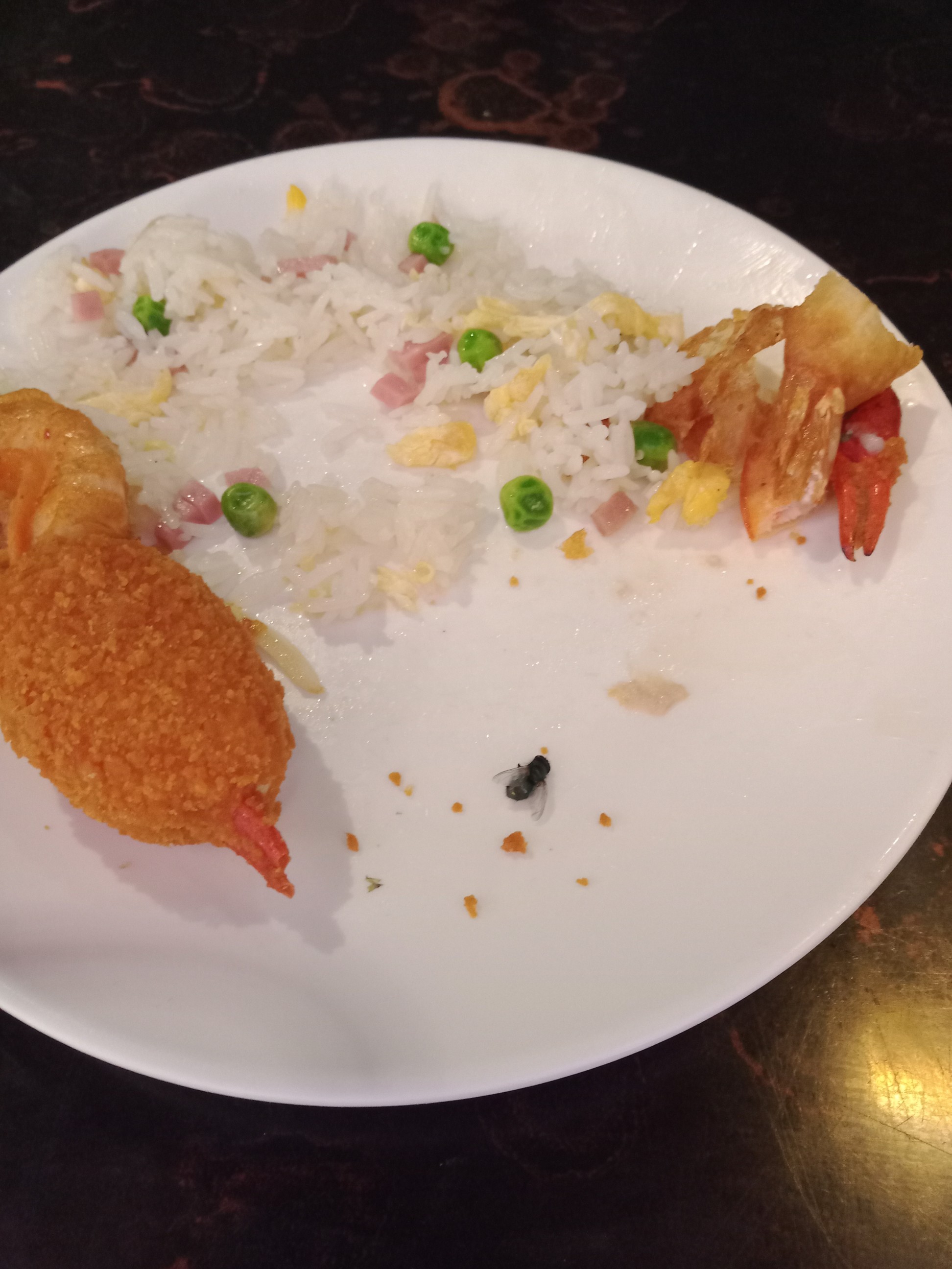Mouche morte dans l'assiette et en plus ils appellent les gendarmes quand on leur signale et disent qu'on a sorti la mouche de notre sac, écœuré