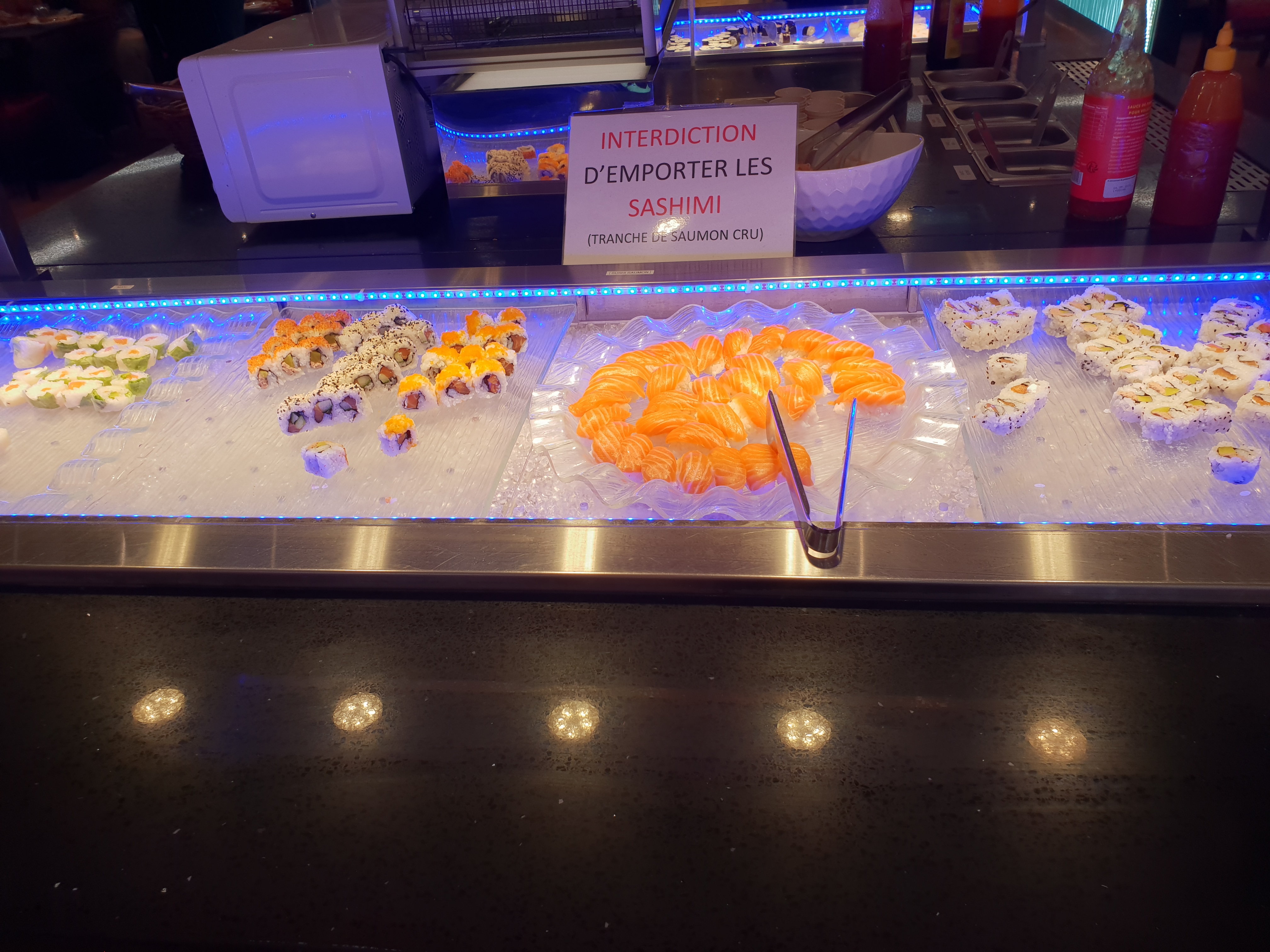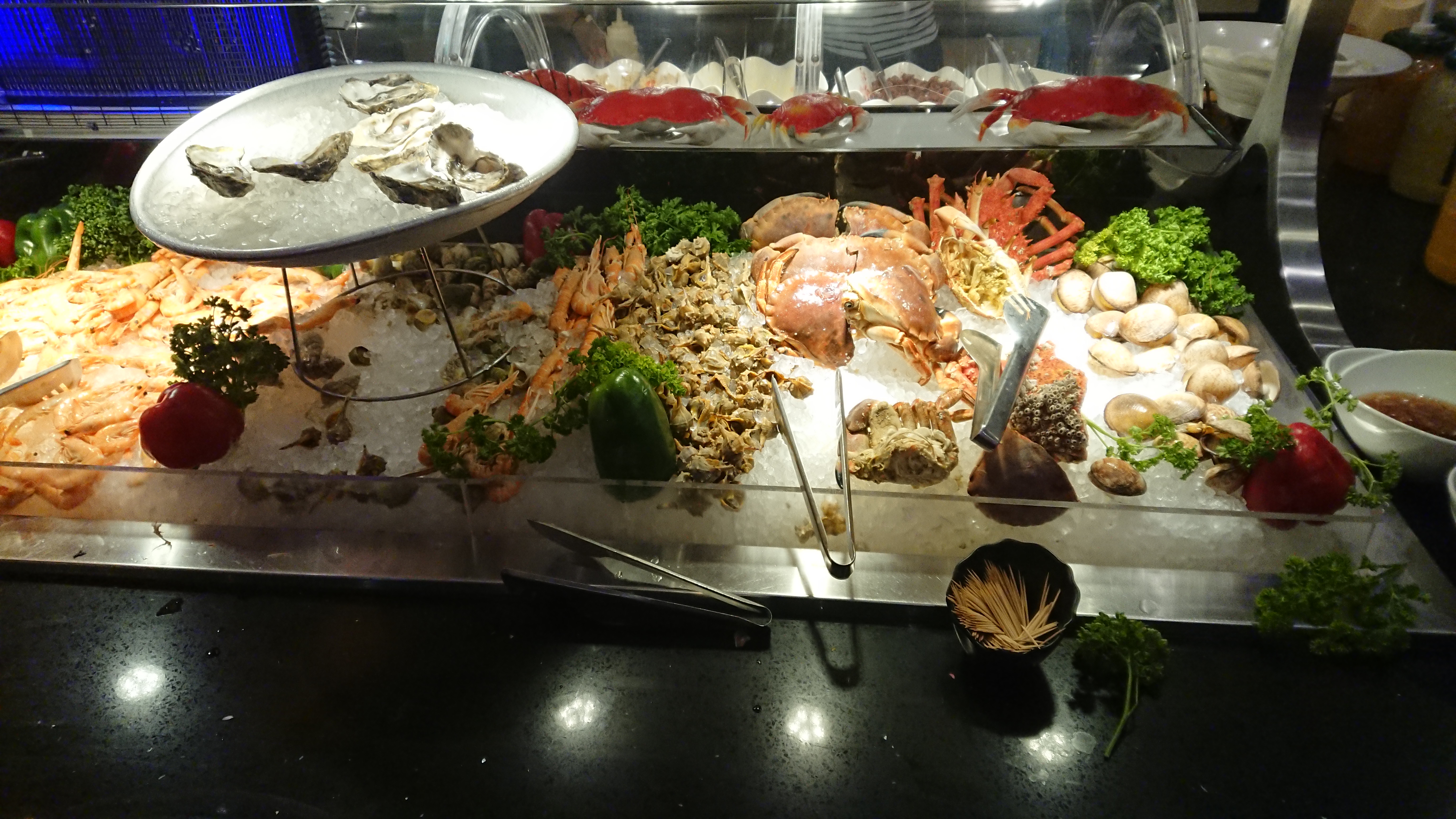 Buffet avec beaucoup de choix (surgelé) c’est la norme bon on se blinde bien le bide il manque que les huitres et les sashimi et je vous donne 5 etoiles