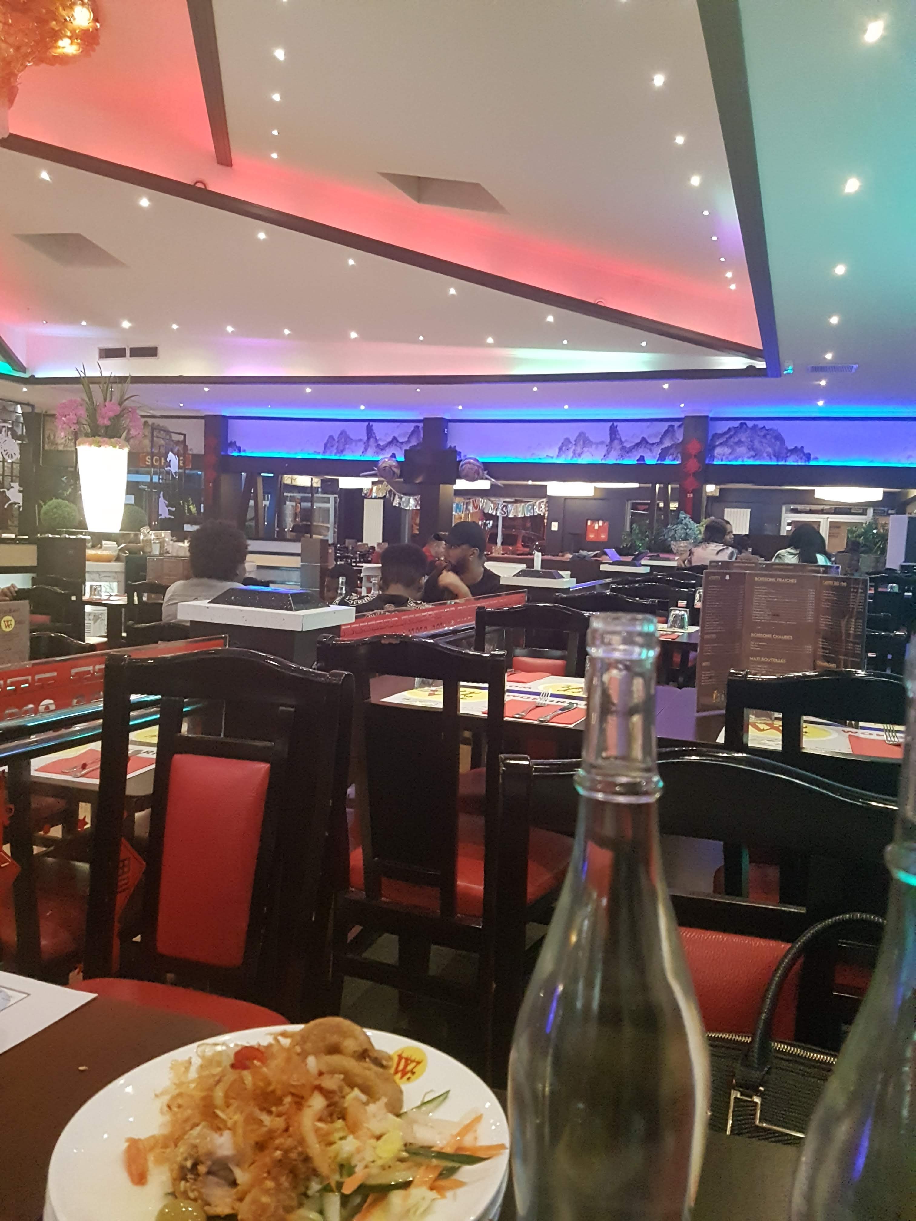 Ce buffet à volonté asiatique halal propose des plats d'Asie du Sud-Est mais aussi du sous-continent indien, ce qui est à noter. La quantité de plats différents est plutôt satisfaisante, mais mis à part la nourriture indienne, le reste est plutôt classique. On peut également souligner que malgré un choix de desserts assez large, la très grande majorité d'entre eux n'ont rien d'asiatique, c'est plutôt dommage. La nourriture n'a rien d'exceptionnel, mais le wok reste qualitatif, je n'y suis jamais déçue. Le prix des cocktails est convenable, mais à mon avis, les boissons softs sucrées classiques ne valent pas du tout le coup au vu de leur prix. Un problème majeur que rencontre le restaurant est que malgré sa très grande superficie et son parking assez spacieux (en prenant également en compte celui du Bricorama voisin), il est souvent victime de son succès le week-end, en partie dû au fait qu'il est le seul restaurant de ce type des environs proposant de la nourriture halal. Il est donc assez fréquent de devoir faire la queue pour y rentrer les soirées en week-end. De plus, le wok n'est géré que par un seul cuisinier, ce qui fait que lorsqu'il y'a foule, c'est très rapidement le bazar et des erreurs sont possibles (mon assiette a par exemple déjà été échangée avec celle d'un autre).