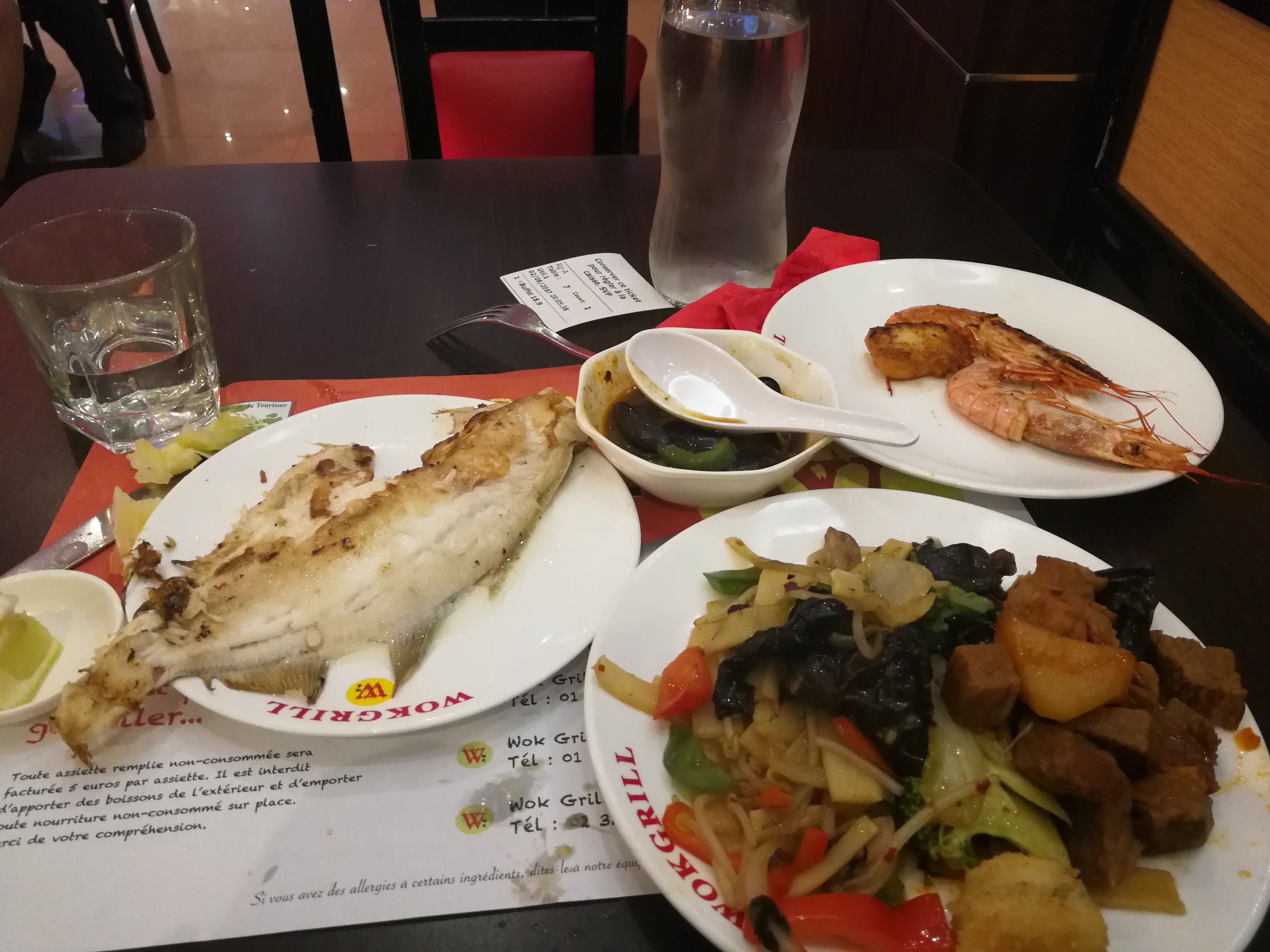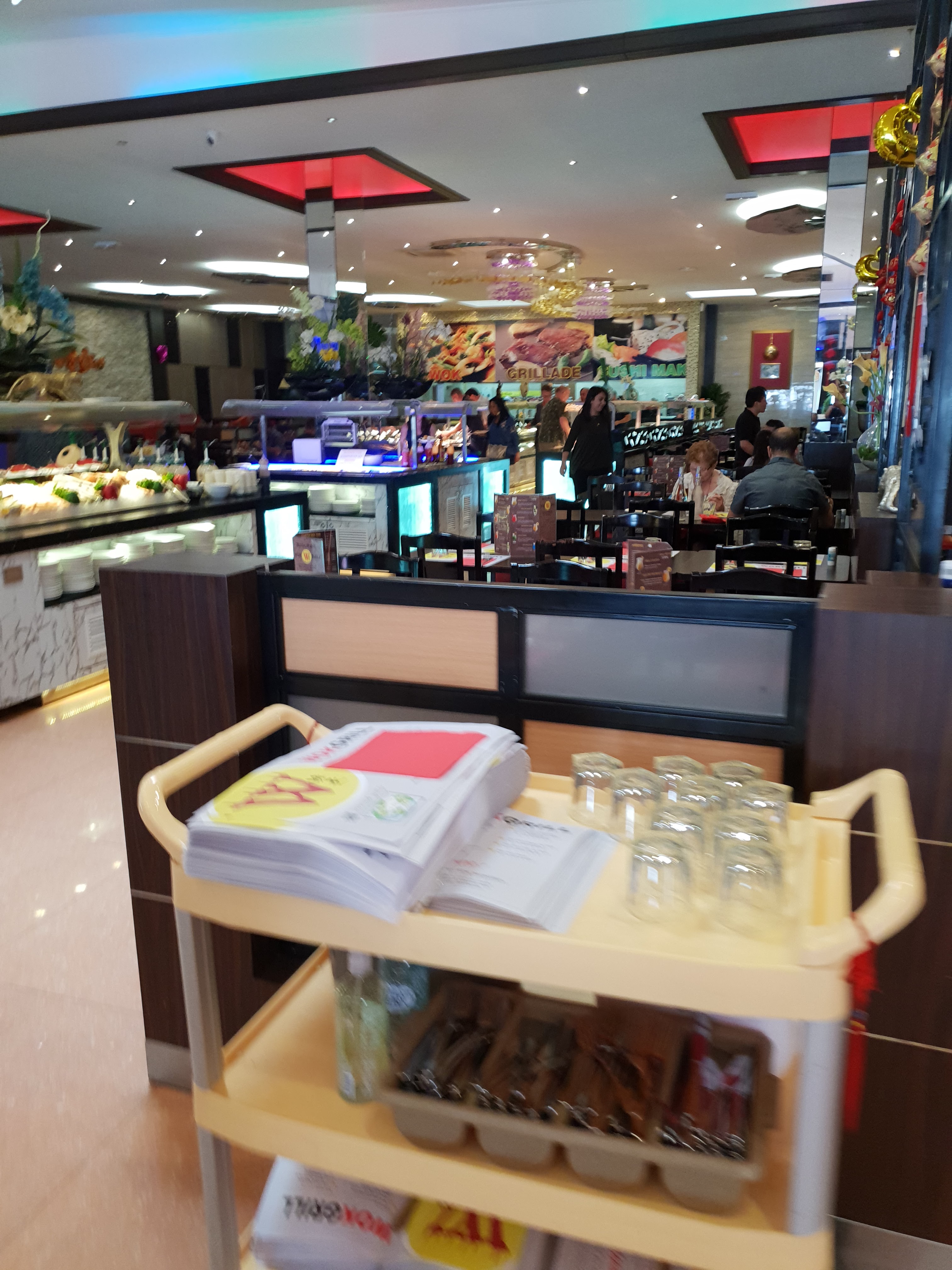 Wok grill pas top. En terme alimentaire, je doute que tout soit frais (notamment le poisson et la viande). Je m'attendais pas à voir des amburgers dans ce genre de lieu. C'est extrêmement bruyant, les gens se servent au buffet à volonté avec un Niveau d'hygiène personnel assez limite. Personnellement, je n'y retourne pas.