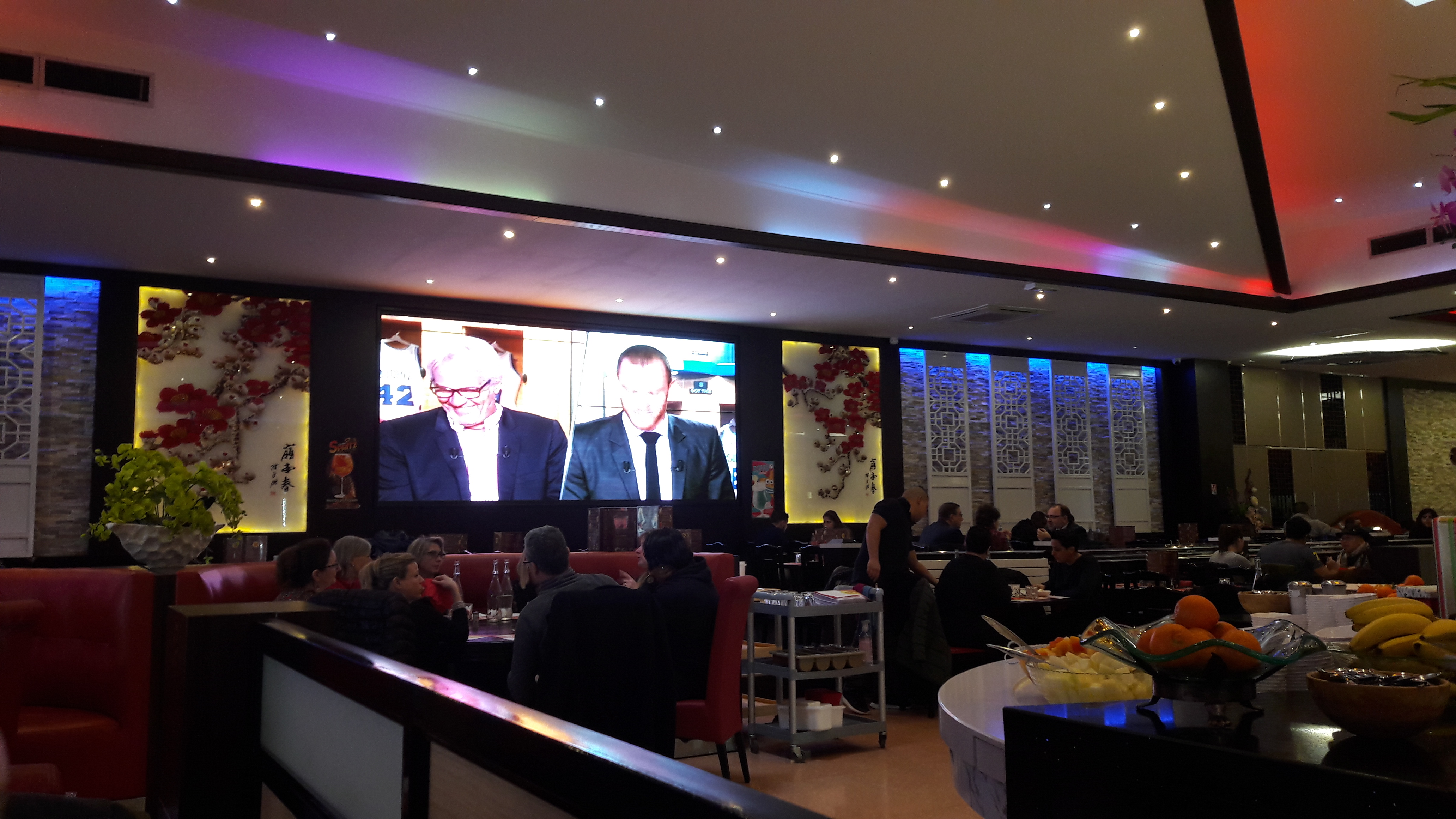 Autant dire que c'est plus une usine qu'un restaurant ! Il y a beaucoup de monde, beaucoup de choix pour la nourriture, dommage que le personnel soit pas du tout souriant. Très bonne ambiance avec le match de la coupe du monde !